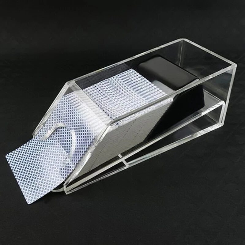 1. This card-dealing shoe is a game-changer! It slides cards out smoothly without bending them, keeping your deck in perfect condition for countless rounds. The sturdy acrylic build feels professional, whether you're hosting poker night or running a serious game. Dealing becomes effortless—no more fumbling or uneven hands. It adds a legit casino vibe while preventing cheating, making every deal fair and fast. Perfect for serious players and casual hosts alike!
