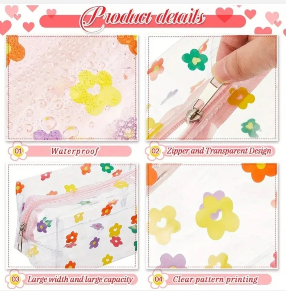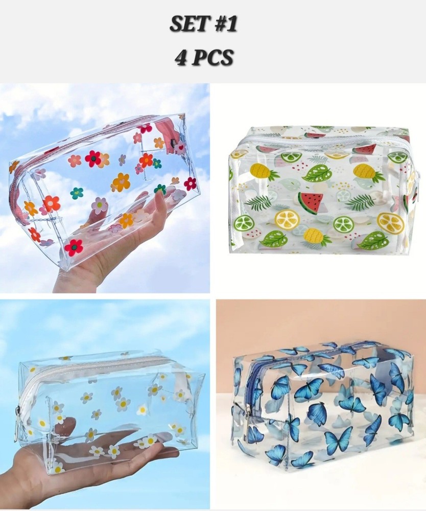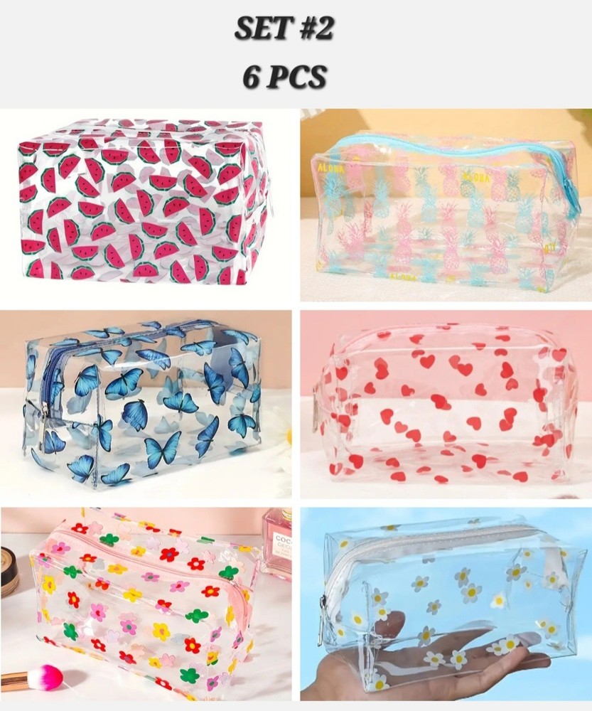 BRAND NEW 4/6 PCS MAKEUP, COSMETIC, STATIONARY ACCESSORIES BAG SUPER CUTE, EXCELLENT QUALITY, LARGE CAPACITY AND EXCELLENT PRICE. GREAT FOR TRAVEL, SCHOOL, STORAGE ETC...MAKES EXCELLENT GIFTS SIZE: REFER TO PRODUCT PICTURES SET #1 INCLUDES 4× PCS SET #2 INCLUDES 6× PCS I SHIP USPS GROUND ADVANTAGE IF YOU HAVE ANY QUESTIONS PLEASE FEEL FREE TO MESSAGE ME THANK YOU