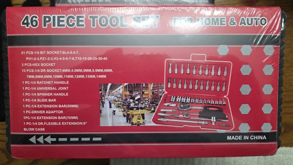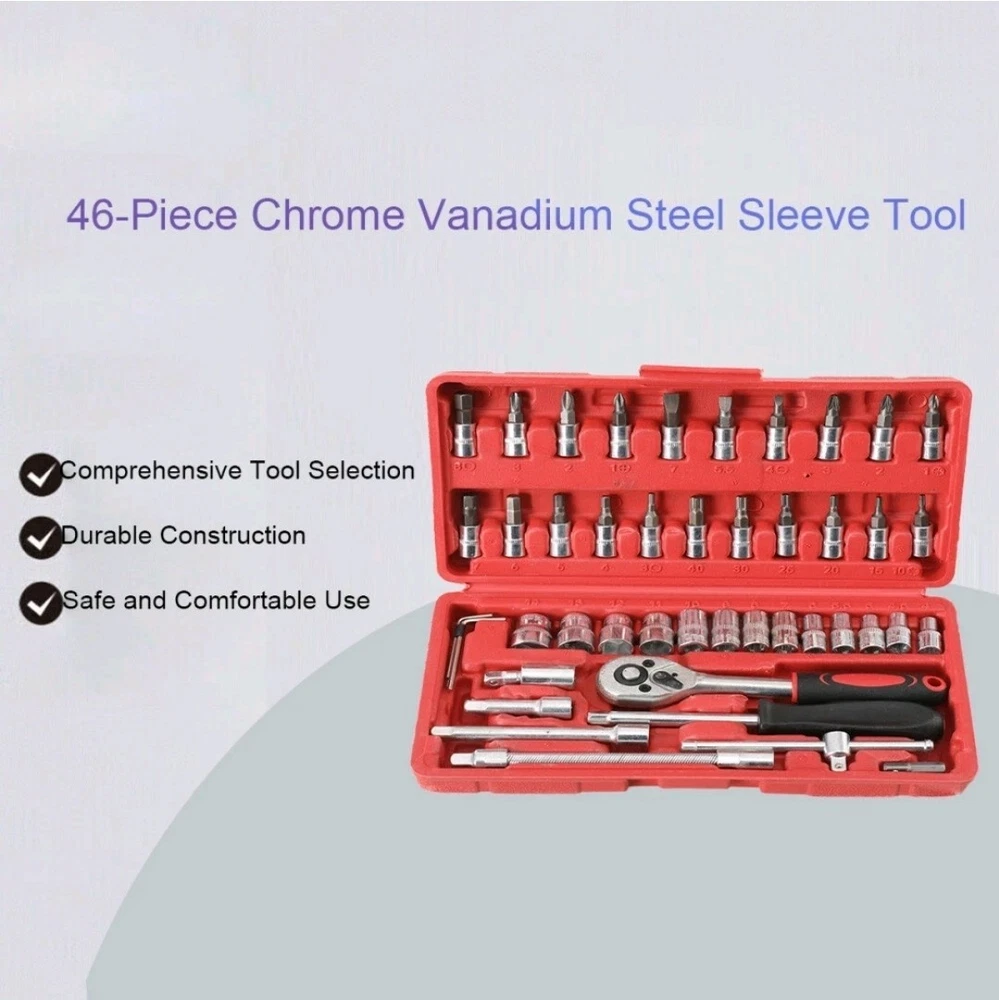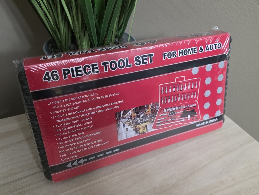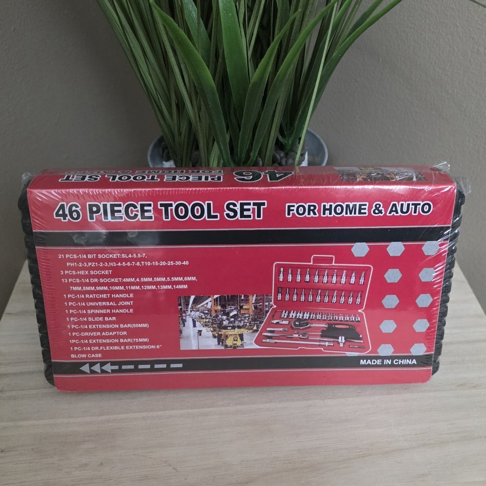 Ships from Kentucky USA! This 46 piece tool set is perfect for both home and auto repair projects, with a focus on metric measurements. The set includes a variety of tools like wrenches and sockets, all stored in a convenient storage case for easy organization and transport. The chrome finish adds durability and a sleek look to the tools, making them both practical and visually appealing for any workshop or toolbox. Ideal for DIY enthusiasts or professionals, this comprehensive tool set has everything you need to tackle any project with confidence.