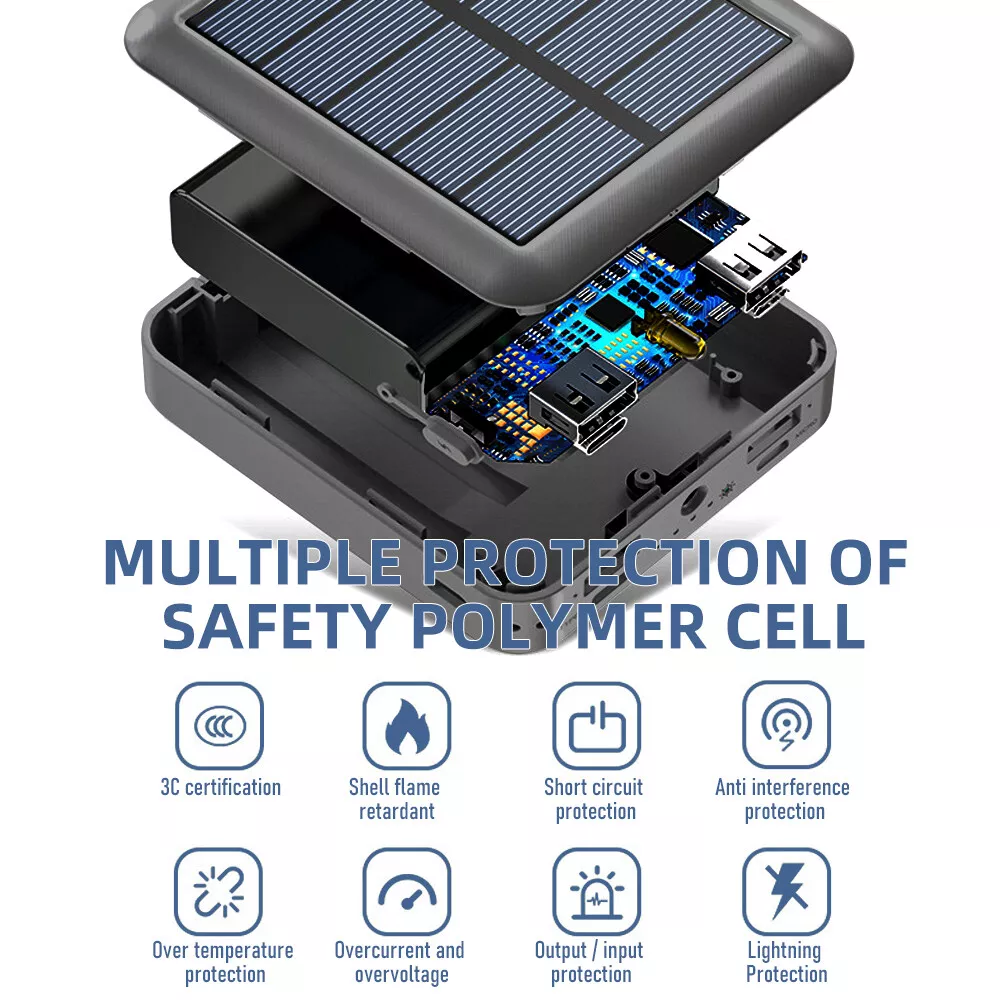 Portable Solar Pow er Bank Mobile Phone Charger Panel Waterproof Outdoor Camping Feat ure : 【46800mAh Solar Powerbank 】 4 68 00mAh high capacity external battery provides excellent battery backup for your device, charging Galaxy S8 5 times and other Android devices several times. Suitable for travel, hiking, camping, business trips, etc. 【1+5 in 1 Portable Solar Powerbank】 The solar powerbank with 5 unique foldable solar modules combined to ensure the fastest charging than other single solar powerbank. The one-button design makes it easy to carry these foldable solar panels in multiple situations. It is great for use as. emergency outdoor power supply. (Also supports charging via wall outlet). 【Two USB Outputs + One Micro USB Input】. With the built-in exclusive SmartIC technology chip, our solar charger with two USB outputs (2.1A and 1A) + One Micro USB input 2.1A ,it detects your device to ensure the fastest possible charging speed Through stable charging ( up to 3.1 A total ). It is not possible to charge batteries with ≤ 0.08A. 【Outdoor Powerbank】 There are three LED flashlight functions. Press the on / off button for 3 seconds, work as a flashlight, press the button again, flash as SOS signal light, press the button again, fast flashing strobe light follows SOS light. Designed for camping, hiking, fishing and other outdoor activities. 【What you get】 Delivery contents: 1 * solar power bank, 1 * USB charging cable, 1 * user manual. Specifica tion : Battery capacity: 468 00mAh/20000mAh Battery type: lithium polymer battery. Extended size: 360 * 23mm Folded size: 190 * 114 * 40mm Gross weight: 0.66kg Color: Black Interfaces: Micro USB input: 5V / 2.1A USB output 1: 5V / 2.0A USB output 2: 5V / 2,1A Inclu ded : 1 x 46800mAh/20000mAh solar charger. 1 x USB charging cable 1 x user manual 202 3 Super 20000mAh M ini USB Portable Charger Solar Power Bank For Cell Phone Feat ures : - Portable Power Bank: It comes with iPhone/micro/Type-C charging cables to fit all commonly used devices, a necessity for travel. - Fast Charging: The 2.1A fast charging provides 50% faster charging than before and the smart chips reduce energy consumption and increase power conversion rates. The Li-polymer battery provides a large power capacity and robust cycle life. - 4 in 1 Output Ports: It has one data cable, one mini-cable type C data cable, one iPhone date cable and one USB output port, suitable for all types of mobile phones. - Ultra-thin: This power bank is 10mm thin, portable to carry and store. - Safe and Reliable: Built-in Li-polymer battery, this solar power bank is twice as safe as Li-ion battery chargers. Specific ations : Capacity: 20000mah Input: 5V/2A (max) Output: 5V/2.1A Battery: Lithium Polymer Charging Time: 8-10h Weight: 260 g Pack age : 1x USB Power Bank 1x USB Charger Cable 1x Packing Box