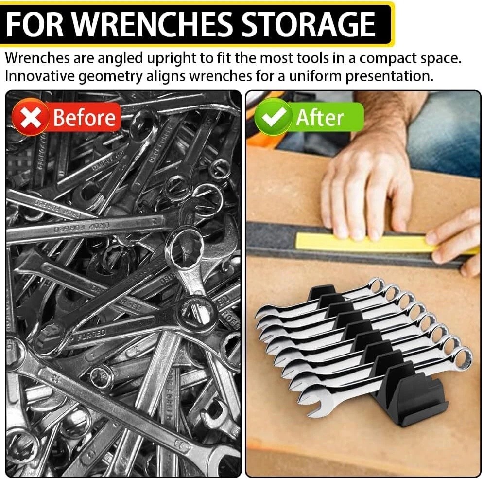 Product Description 46X Magnetic Modular Wrench Organizer Compact Tool Storage Slots hold Tools SAE Feature: For Wrenches Storage: Wrenches are angled upright to fit the most tools in a compact space. Innovative geometry aligns wrenches for a uniform presentation. Your wrenches will never look better than when they are neatly lined up in a compact row Easy To Use: The modular design is very easy to set up and break apart for custom wrench sets and holds any number of tools needed in one section. Fits a wide range of sizes and wrench types. The geometric shapes are combinable and uniform in shape to meet different demand Durable Wrench Organizer: Constructed from robust materials, ensuring that your pro tools are protected and the tool organizer box lasts for long time,modular wrench organizer is suitable for offset, combination, open end, stubby, adjustable and ratcheting With Magnets: A magnet is included on the bottom to ensure the stability of your wrench.Compact design works well with all wrench types.The tapered shape of the slots allows them to hold a wide range of wrench sizes at orderly angles and with consistent spacing Large Cpacity Wrench Holder: Large wrench organizers hold two tools each, while small wrench organizers must be connected with another wrench organizer to hold one or more tools. Organized tool organizers ensures that you can quickly find and retrieve the tool you need, saving time and effort With Magnets:A magnet is included on the bottom to ensure the stability of your wrench.Compact design works well with all wrench types.The tapered shape of the slots allows them to hold a wide range of wrench sizes at orderly angles and with consistent spacing. Easy to Use:The modular design is very easy to set up and break apart for custom wrench sets and holds any number of tools needed in one section. Fits a wide range of sizes and wrench types.The geometric shapes are combinable and uniform in shape to meet different demand Package Includes: 46x Wrench Organizers About Us Payment Shipping Returns Contact Us 1. Unless specified otherwise, all our products are IN STOCK and are shipped from USA Local warehouse - Not Overseas! 2. We provide a 30 day Satisfaction Guarantee or your money back (provided items are in the same new and resaleable condition.) 3. We have a PayPal Verified Business Account, please buy with Confidence! 4. Every item will be tesrted before send.We know our products well and if we don't have the answers we will do our best to find them for you! 5. Our friendly team look forward to serving you! Your satisfaction is our No.1 Priority We will do our best to satisfacy you. 1.Paypal, Credit Card, G Pay etc, many payment way is accepted. 2.Please be sure your shipping address is correct before make a payment. 1.We will ship out the item within 1-3 business days after comfirming the payment, appreciate your patience. 2.If the items are broken on the way(we will check the orders clearly before we sent them),please contact us in 3 days you received it. We will send you a new one or refund your payment. 1.We stand behind every buyer.Items can be returned for exchange or refund within 30 days. 2.Please contact us when you have any confusion of our item, we will solve the trouble for you as soon as possible. 1.This is professional Seller.We will reply your message within 24 hours. 2.Please contact us whenever you have any question about the item. We will deal with it as soon as possible. 3. If you are unhappy with the item or our service,please Contact Us before leave feedback,just give me a chance,thank you! About Us 1. Unless specified otherwise, all our products are IN STOCK and are shipped from USA Local warehouse - Not Overseas! 2. We provide a 30 day Satisfaction Guarantee or your money back (provided items are in the same new and resaleable condition.) 3. We have a PayPal Verified Business Account, please buy with Confidence! 4. Every item will be tesrted before send.We know our products well and if we don't have the answers we will do our best to find them for you! 5. Our friendly team look forward to serving you! Your satisfaction is our No.1 Priority We will do our best to satisfacy you. Payment 1.Paypal, Credit Card, G Pay etc, many payment way is accepted. 2.Please be sure your shipping address is correct before make a payment. Shipping 1.We will ship out the item within 1-3 business days after comfirming the payment, appreciate your patience. 2.If the items are broken on the way(we will check the orders clearly before we sent them),please contact us in 3 days you received it. We will send you a new one or refund your payment. Returns 1.We stand behind every buyer.Items can be returned for exchange or refund within 30 days. 2.Please contact us when you have any confusion of our item, we will solve the trouble for you as soon as possible. Contact Us 1.This is professional Seller.We will reply your message within 24 hours. 2.Please contact us whenever you have any question about the item. We will deal with it as soon as possible. 3. If you are unhappy with the item or our service,please Contact Us before leave feedback,just give me a chance,thank you! You may also like 65W USB C Type C for Acer Chromebook Lenovo/HP/Asus/Samsung Power Laptop Charger 8.99 USD Free shipping Titanium Cutting Board Double-Sided Titanium Cutting Boards for Kitchen Camping 17.99 USD 22.59 USD Free shipping 20% off 9PC ABS Socket Organizer 1/2 3/8 1/4 inch Drive Socket Rail Holders Wall Mount 17.57 USD 18.49 USD Free shipping 5% off 5Pcs HSS Cobalt Hole Large Metal Step Drill Bit Set Titanium Cutter Cone 50 Size 9.69 USD 11.49 USD Free shipping 16% off 3 Head 50000LM LED Solar Lights Outdoor Waterproof Motion Sensor Security Lamp 13.99 USD Free shipping 8"x12" Vacuum Sealer Bags Embossed Food Saver Magic Seal Storage 100-500pcs 14.89 USD Free shipping powered by