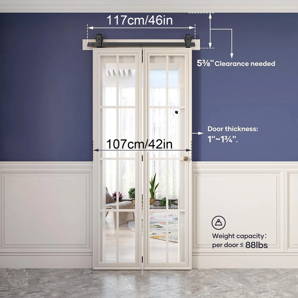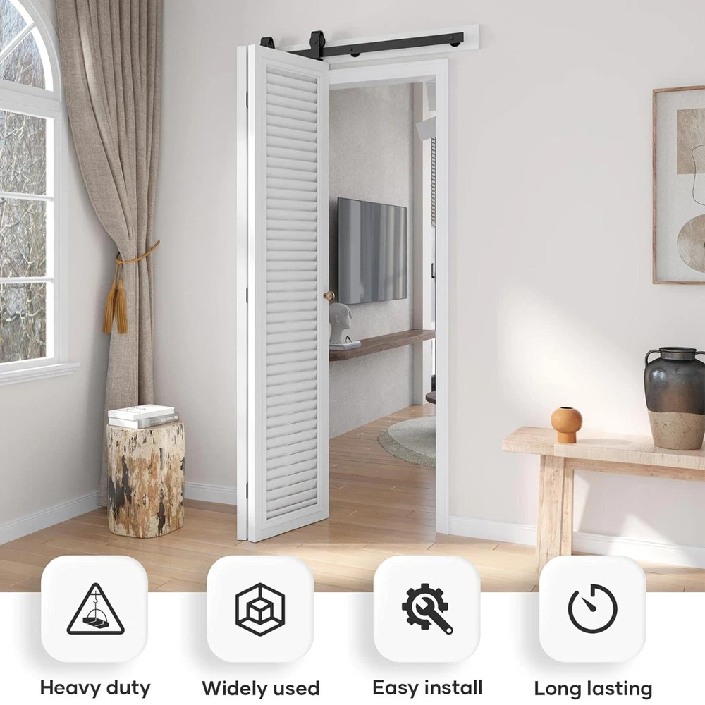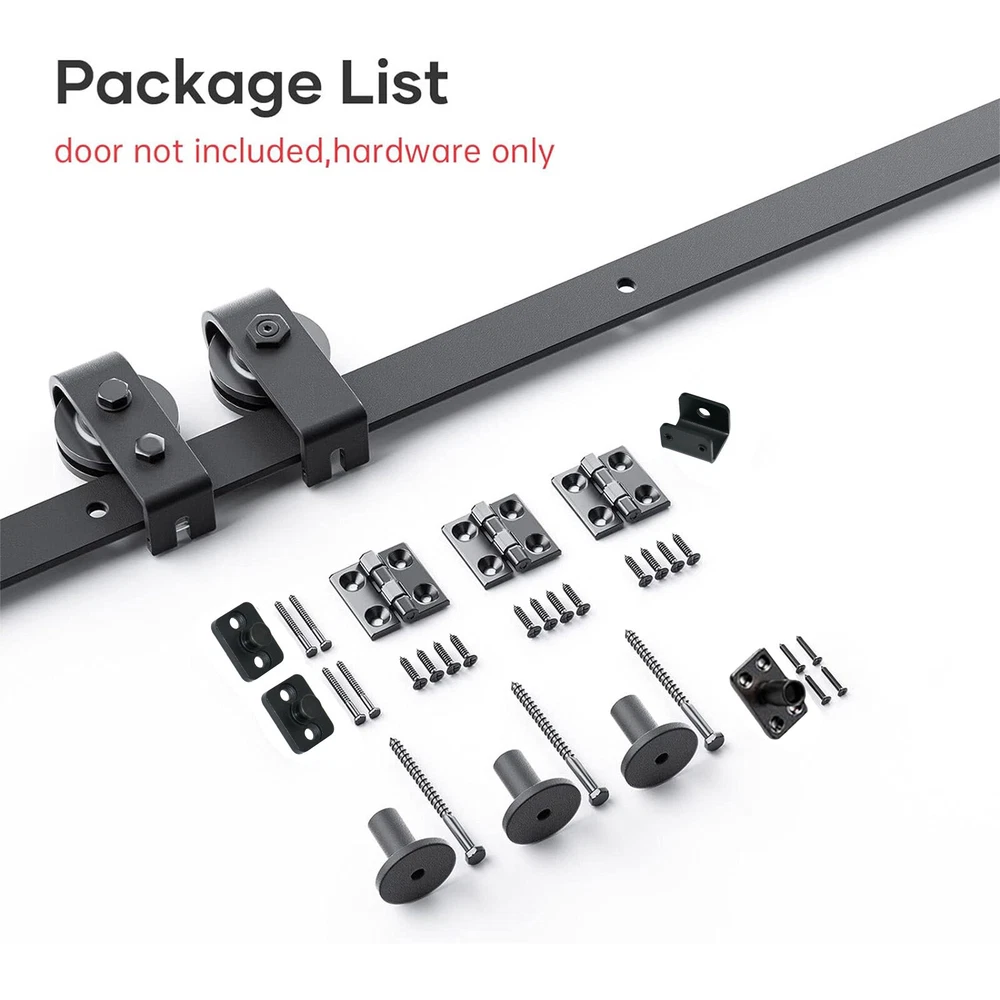 Store category Sign Up Now ! You may also like Product Description Bullet Points: Effortless Glide: Experience unrivaled smoothness and noiseless door movement with our Sliding Barn Door Hardware Track Kit, complete with 3x Gasket, 3x Hinge, 1x Floor Guide, and a durable seal. High-Quality Carbon Steel: Crafted from high-quality carbon steel, this Sliding Barn Door Hardware Track Kit features wear-resistant nylon wheel rollers and bearings, ensuring a high load capacity with a sturdy 6mm thick rail for durable, smooth operation. Effortless Installation: By providing step-by-step instructions with illustrations, our Sliding Barn Door Hardware Track Kit saves you time and stress during the installation process. Enjoy a hassle-free setup experience. Achieve Efficiency: By using our Sliding Barn Door Hardware Track Kit, you can easily Maximize the use of space in your room. With a smooth, quiet sliding system and a foldable design, this kit is perfect for any space-saving needs. Wide Range of Applications: Revamp your living, dining, and study spaces with our sliding barn door hardware track kit. Wide range of applications, our versatile installation promises effortless styles and functionality. Featuring 3x Track, 2x Roller, 2x Roller Swivel Bracket, and 1x Roller Holder made with high-quality bearings and nylon wheel rollers, allowing for a quiet and smooth sliding experience. Perfect for your living room, dining room, or study room. Specification: Name: Sliding Barn Door Hardware Track Kit Color: black Material: carbon steel Rail size: about 46 inches/116.84cm Track splicing mode: 3 pcs Applicable range: door thickness 0.5-50mm Packing List: 3x Track 2x Roller 2x Roller Swivel Bracket 1x Wheel Holder 3x Shims 3x Hinges 1x Floor guide 1x Sealing strip 1x Screw set 1x Instruction manual 4x pipe clamps 35mm 4x m8*90 wood screws Note: Due to different lighting and screen settings, the item color may be slightly different from the picture. Due to different manual measurements, please allow a 1-2cm difference in size. Payment Delivery details Terms of sales About us Feedback & DSRs Payment Before you palce an order, please kindly make sure that you have a paypal account. We accept PAYPAL payment only. Payment should be completed within 2 days after auction closed, or unpaid dispute will be filed for an closing auction. An unpaid case will be filled after 4 days. Delivery details We ship to your eBay address. Each package will be shipped to US by UPS Regular Parcel with tracking number. Please check your shipping address carefully before checkout, it can't be changed if order completed. All items will be shipped within 1-2 business day upon receipt of payment.Orders placed on weekend will be shipped within 3 days. If you do not receive your item in 7-10 business days.please contact us immediately for further assistance. We will be responsible for any damages or losses incurred in the shipping process. About us We maintain high standards of excellence FIVE STAR and strive for 100% customer satisfaction! Positive Feedback is very important to us. We hope that you contact us immediately Before you give us neutral or negative feedback, so that we can satisfactorily address your concerns. We promise to offer the lowest price and high quality produce. Our working time: From Monday to Friday(9:30 am to 18:00pm), we don't working on holidays ,hope you can understand and know that , thank you. Please always talk to us via ebay Message. We appreciate your business and look forward to growing our e-Bay sales with satisfied customers. Feedback Contact us If you have any questions, please feel free to contact with us by ebay Message during our business hours ( 9:30a.m. to 5:30 p.m.), or email us through eBay, we will try our best to help you to resolve it. For any presale or after-sale questions,please do feel free to email us! Due to the time difference, each email will be replied within 1 working day,and weekend will be delayed a bit. Feedback