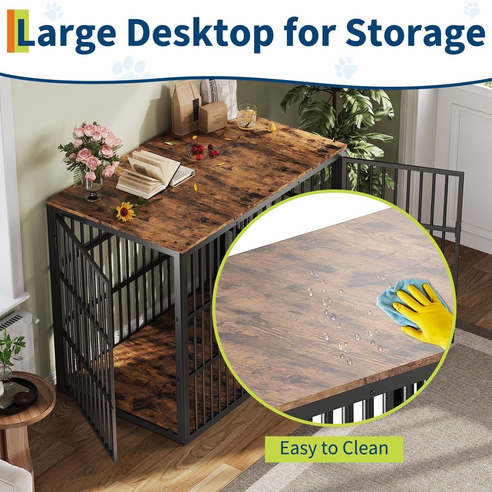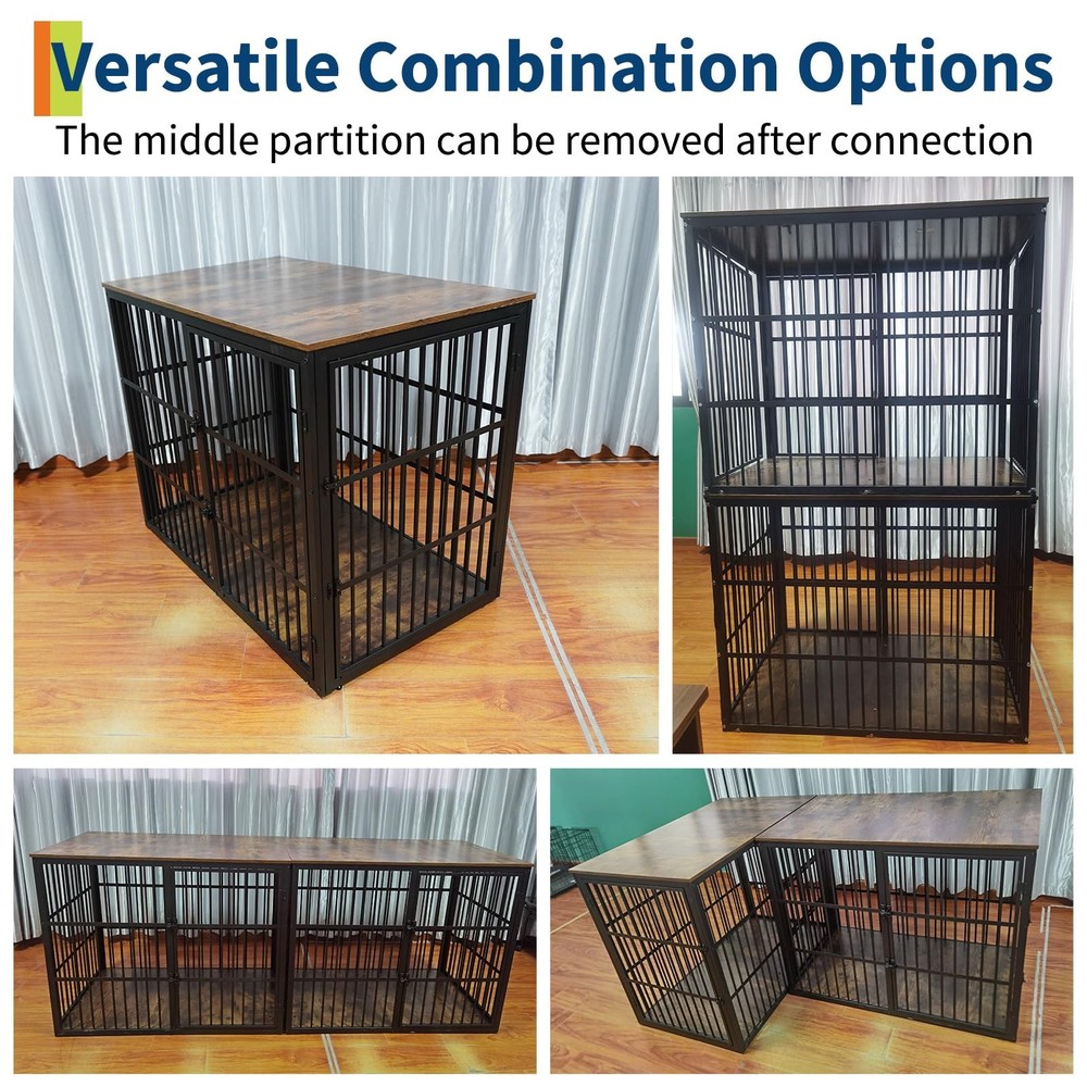 47 Inch Dog Crate Furniture with 3 Lockable Doors, XXL Heavy Duty Dog Kennel, Furniture-Style Indoor Pet House Side End Table for Medium to Large Breeds Key features: 2-in-1 Dog Crate & Side Table Serves as both a secure indoor pet house and a stylish piece of furniture. Blends seamlessly with your home decor while providing a cozy retreat for your dog. Triple Lockable Doors for Flexible Access Three lockable doors offer multi-directional entry and enhanced security. Perfect for flexible placement in any room layout. Durable & Easy to Clean Made with high-grade wood and sturdy metal for long-lasting use. Smooth wood surface wipes clean easily, ideal for daily maintenance. Spacious for Medium to Large Dogs Generous 47.2"L x 29.1"W x 37.6"H interior provides ample room for small, medium, or large breeds to relax comfortably. Quick & Easy Assembly Includes clear instructions and all necessary hardware. Simple to set up without professional help. Specifications: Color: brown Product Dimensions: 47.2"L x 29.1"W x 37.6"H Specific Uses For Product : Indoor Special Feature: Easy Assembly