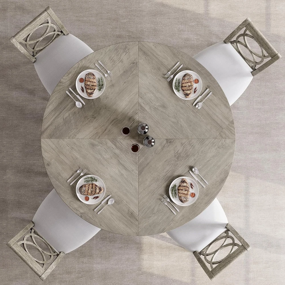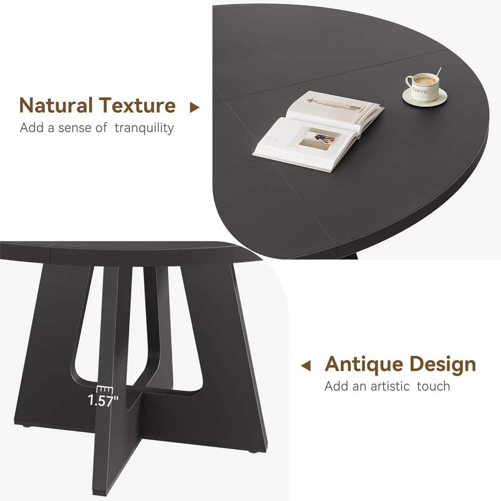 Product Description About this item Solid Structure: Unlike other products, we have effectively addressed common issues such as uneven, unstable tabletops and large gaps between wooden boards. Our four boards are securely joined using custom flat metal brackets, preventing the tabletop from loosening and allowing you to enjoy your meals in comfort. Spacious Design: This round dining table features a generous 47.24-inch tabletop and stands at a height of 29.53 inches, comfortably seating 4 to 6 people without crowding. Its ample size ensures an enjoyable dining experience, providing plenty of space for everyone. Strong Load-Bearing Capacity: Made from a 1.18-inch thick MDF board and supported by solid wooden legs measuring 1.57 inches in thickness, this 47-inch round kitchen table can support a maximum load of up to 300 pounds. You can confidently place tableware, drinks, and decorations—even near the edges—without worrying about tipping due to uneven weight distribution. Adjustable Leg Pads: This kitchen and dining table includes adjustable leg pads, enabling height adjustments of up to 0.39 inches with a simple rotation. The pads incorporate an advanced anti-slip design, allowing them to adapt to various heights and ensuring the table remains stable, eliminating any wobbling on uneven surfaces. Easy and Quick Assembly: This farmhouse dining table employs the latest design technology to streamline the installation process. To make identifying components easier, each accessory comes with corresponding labels, ensuring a hassle-free assembly experience. powered by