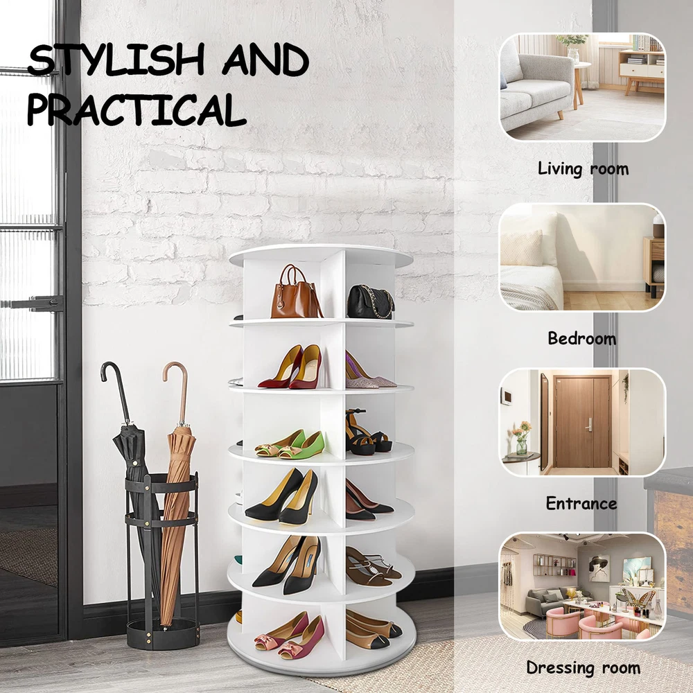 4-7 Tier 360° Rotating Shoe Rack Tower with Book Storage