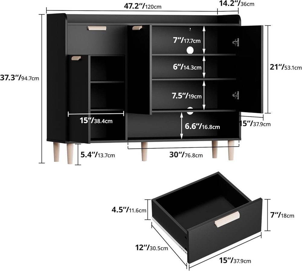 47.2'' Shoe Cabinet with Doors & Drawer, 4-Tier Shoe Organizer Cabinet with