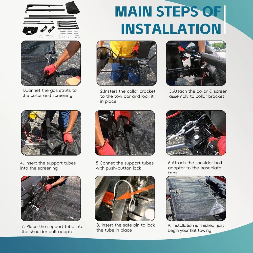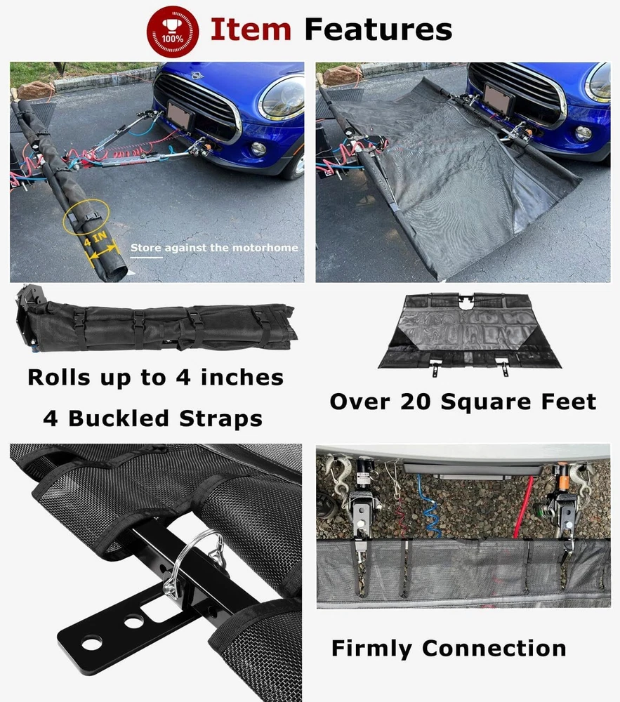 4750 Tow Defender Fits Roadmaster All Motorhome-mounted Tow Bars Blue O demco WIDE APPLICATION: 4750 Tow defender is specially designed for Blue Ox tow bars with brackets, fits for Demco tow bars with brackets, fits for all motorhome-mounted Roadmaster tow bars, compatible with Jeep, Honda, Ford, GMC, and other vehicles with tow bar brackets. Fits RVs with a 2" x 2" hitch receiver. Replace #RM-4750 Tow defender for Roadmaster tow bars. PROTECT TOWED VEHICLE: This Tow defender has a protective layering that provides protection from bumper-to-bumper. Heavy duty all-weather protection screen blocks rocks, gravel and road debris down and away. Protect your towed vehicle, RV, Motorhome and tow bar against rock chips ,flying road debris and dings as you’re flat towing. COMPLETE PROTECTION: Tow defender rock shield offers 20 square feet of protection when fully extended. The tow defender protective screen is held in place with shock-absorbing steel hydraulic struts, which will automatically and flexibly compress for cornering, with no worry about possibly hitting our vehicle. It is a great rv rock guards for towing. QUICK RELEASE & CONVENIENT: To disconnect the tow defender protective screen, just pull out the safety pin, then roll up the tow defender screen, snap the elastic straps around both ends and store it on your RV’s hitch easily. Only 4 inches in diameter when it is rolled up ensures easy storage. ROBUST CONSTRUCTION: Our tow defender protective screening is made of vinyl-coated mesh, which is durable and flexible, lets air through, keeping it low and over the road. Powder-coated steel brackets and heavy-duty hydraulic struts are resistant to corrosion and impact and can work on rough roads and in weather conditions. PACKAGE INCLUDED: 4750 Tow defender Payment Shipping Return & Warranty Leave feedback Contact us Payment 1.We accept PayPal payment and many other payments. Items will be shipped within 1 business day of receiving full payment. Shipping 1.All items will be shipped out in 1 business day,no expedited service available. 2.Our items will be delivered within 4-6 business days. 3.We have multiple warehouses in US, and will choose the nearest one for shipping, according to your address and our inventory Return & Warranty 1. 60 Days Free Returns, please notify us within 60 days after you've received your purchased item. 2. All return requests must be submitted through your eBay account. 3. Return shipping shall be the responsibility of the buyer. We pay the shipping when it is our fault. 4. Items to be returned must be in resalable condition. 5. All returns are for refund ONLY. No exchange accepted. Leave feedback 1.If you are not satisfied for any reasons, please do not be so quick to leave negative/neutral feedback. We work hard to make sure EVERY CUSTOMER 100% SATISFIED and resolve any problems for you and always leave positive feedback to all our customers. 2.If you are satisfied with the product you received, please kindly leave us a positive feedback and 5 scores DSR. Thanks! Contact us 1.Any Questions,Just feel free to contact us on eBay.We will reply you in 1-2 business day.