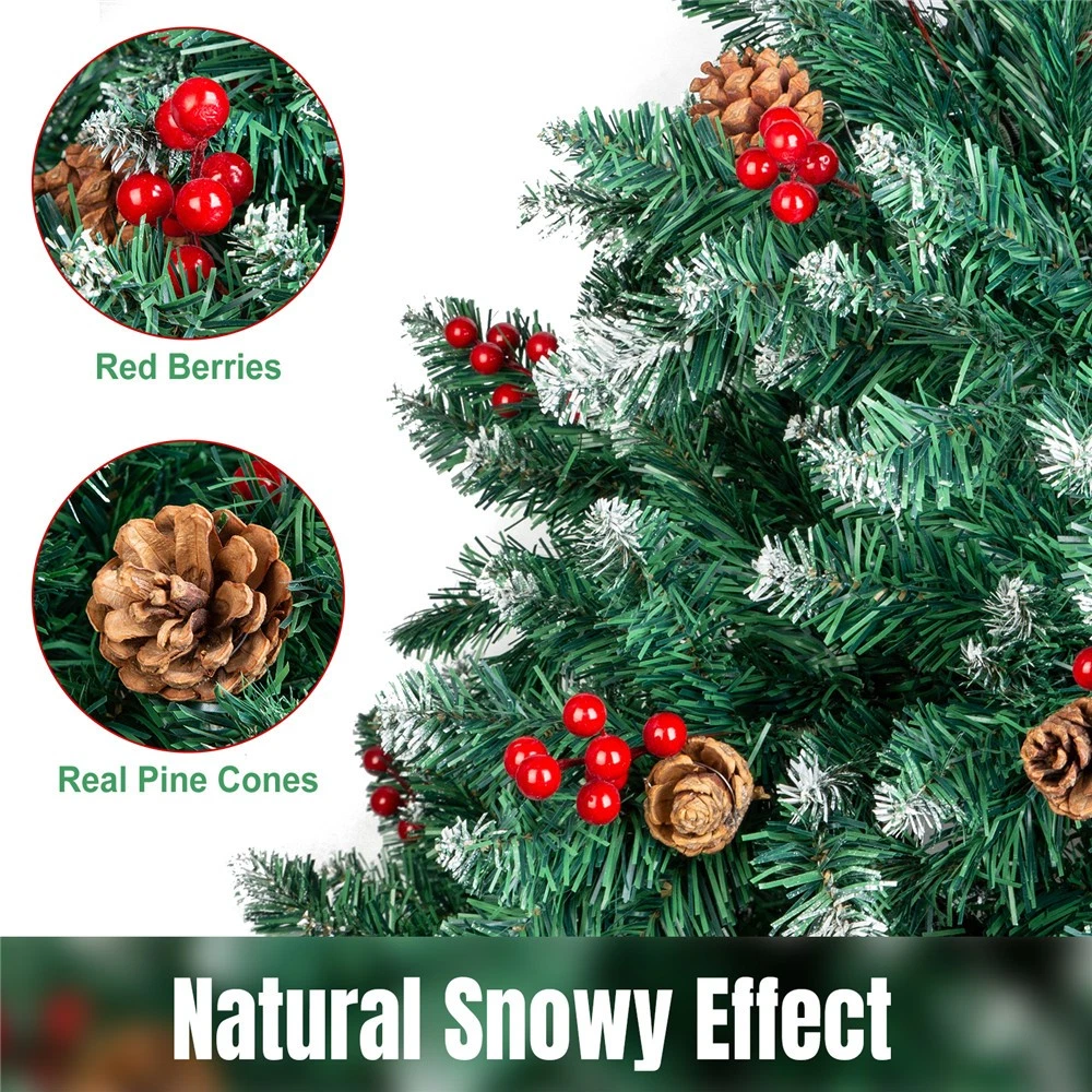 $ 13.24.5/6/7.5ft Flocked Pre-lit Christmas Tree Xmas Decorations with Foldable Stand