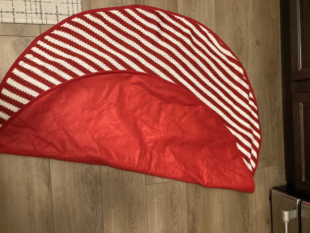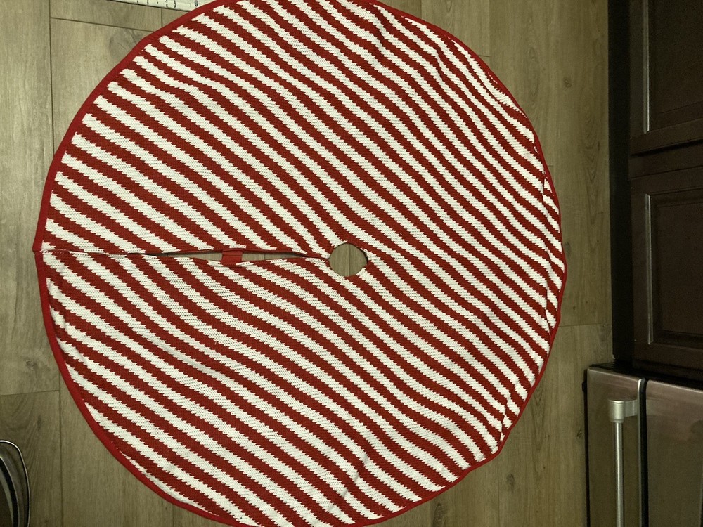 47-Inch Round Red and White Christmas Tree Skirt for Holiday Decor