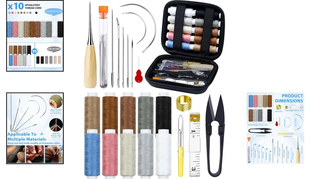 47-Piece Heavy Duty Sewing Kit: Perfect for Upholstery and Crafting Needs ‹ › ‹ › ‹ › ‹ › ‹ › ‹ › ‹ › ‹ › 47-Piece Heavy Duty Sewing Kit Perfect for Upholstery and Crafting Needs Features: Comprehensive sewing kit that includes: - 32 leather sewing needles of various sizes and shapes - 10 leather sewing threads (30 m/color) - Needle bottle, awl, tape measure, scissors, and sewing thimble Benefits: Our leather sewing kit features: - Needles that are strong and sharp, ideal for tough leather materials - Versatile enough to meet the needs of both professionals and beginners - High-quality sewing threads for durability and strength - A comfortable wooden-handled awl for precision work - Perfect for various applications such as upholstery, crafts, and repairs Why choose our Heavy Duty Sewing Kit? Embrace the artistry of leather crafting with our 47-Piece Heavy Duty Sewing Kit, designed not just for durability but for elegance and functionality. Whether you are repairing car interiors, crafting stunning leather goods or adding a personal touch to upholstery projects, this complete kit will exceed your expectations. With 32 robust leather needles, assorted threads, and essential accessories, your creativity knows no bounds. Thoughtfully packaged, it also makes an exquisite gift for parents, friends, and craft enthusiasts alike. Elevate your crafting experience and ensure every stitch radiates professionalism and charm. Don't miss the opportunity to own this essential toolkit—order your Heavy Duty Sewing Kit today! Shipping Free & Fast Shipping - We offer free shipping to most of the USA with a normal delivery time of 3-7 days. However, due to the current situation, additional delivery time (up to 3 weeks) may be required for some items. Alternative Carriers - We may use alternative carriers (e.g. USPS, FedEx, UPS, etc.) to ensure your package arrives safely and on time. Due to the use of multiple carriers, we are unable to provide a tracking number automatically. Handling Time - Orders are processed and shipped within 1-2 business days of receiving cleared payment. Shipping Restrictions - Shipping to Alaska, Hawaii, Puerto Rico, Guam, and other US territories may incur shipping charges or delivery restrictions. Please contact us before ordering, or your order can be refunded/cancelled. State Restrictions - There may be restrictions based on your state of purchase. For example, certain items may not be shipped to California due to state regulations. Contact for Tracking Updates - If you require tracking updates or have any concerns about the delivery of your order, please feel free to contact us, and we will be happy to assist you. Return 30-Day Hassle-Free Returns - We want you to be completely satisfied with your purchase. If you are not, you can return the item within 30 days of receiving it for a full refund or exchange. Easy Return Process - To start a return, simply contact us and we will provide you with a prepaid return shipping label and detailed instructions. Restocking Fee - There are no restocking fees for returns. However, the buyer is responsible for return shipping costs if the return is not due to a seller's error. Refund Processing Time - Refunds will be processed within 5 business days of receiving the returned item in its condition. Payment We accept all major credit cards, PayPal, and Apple Pay for your convenience. Your payment information is secure and encrypted to ensure a safe and seamless transaction. Please complete your payment within 3 days of purchase to avoid any delays in shipping. Feedback Your feedback is extremely important to us. We strive to provide the best products and customer service possible. If you are satisfied with your purchase, please take a moment to leave us a positive review. If you have any concerns or issues with your order, please contact us before leaving negative feedback. We are committed to resolving any problems and ensuring your satisfaction. Contact Us If you have any questions or concerns, please feel free to out to our customer support team. You can contact us through the eBay messaging system. We are available Monday to Friday, 9:00 am to 5:00 pm EST, and we will do our best to respond to your inquiry within 24 hours. Buy it now and enjoy a pleasant shopping experience!
