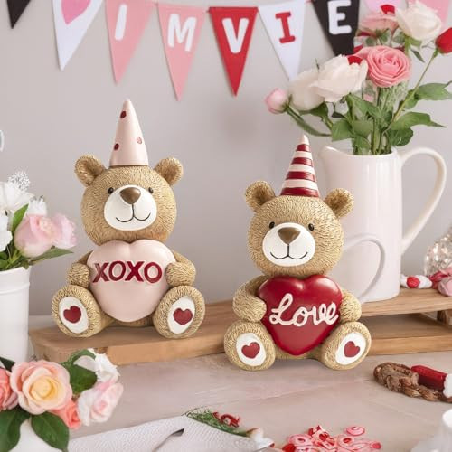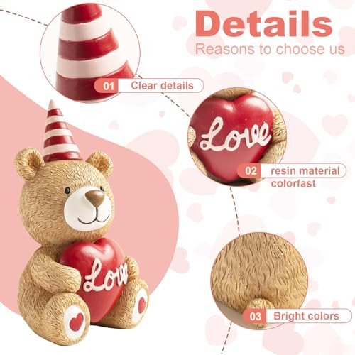 30 Days Return Policy Fast Delivery Trusted seller Valentines Day Figurines, 4.7inch Small Resin Teddy Bear Valentine's Day Love Heart XOXO Decorations for Home, Indoor Wedding Table Centerpieces Tiered Tray Shelf Mantel Decor Product Description High quality material: The product is made of high-quality resin, durable, easy to clean, and not easily faded Perfect size: 4.7x3.1x2.5 inches, small size, suitable for Valentine's Day or wedding anniversary, place it on the desktop, shelf, fireplace as the decoration for love Valentines Gift:Two teddy bears holding red hearts, one with xxoo engraved on its heart and the other with 'love'. It is perfect for gifting to boyfriends, girlfriends, husbands, and wives on Valentine's Day Valentine's Day Decoration: These 2 teddy bears are perfect as desktop decorations for kitchens, bedrooms, rooms, offices, and more on Valentine's Day Exquisite craftsmanship: The color of this pair of teddy bears is hand drawn, uniform in color, and the appearance of the bears is also very detailed, with visible hair Shipping Returns Payment Shipping Shipping is FREE to all addresses other than APO/PO boxes in the lower 48 states. All our stock ships from US-based warehouses. Shipped via USPS or UPS (depending on location and package weight) Unless stated otherwise, all orders will ship within 24-72 hours of your payment being processed. Check our feedback to see the great reviews of FAST shipping we offer. Returns As our valued customer, we will do our best to make sure the product you receive arrives to you on time and as expected. If you are not satisfied with your purchase, please contact us within 30 days of receiving your order to process a return. Payment We currently accept payment via eBay managed payments only. Once payment is cleared, we will dispatch your shipment within 1-3 business days. Please refer to the "Shipping" tab for more information regarding shipping speed to your destination.