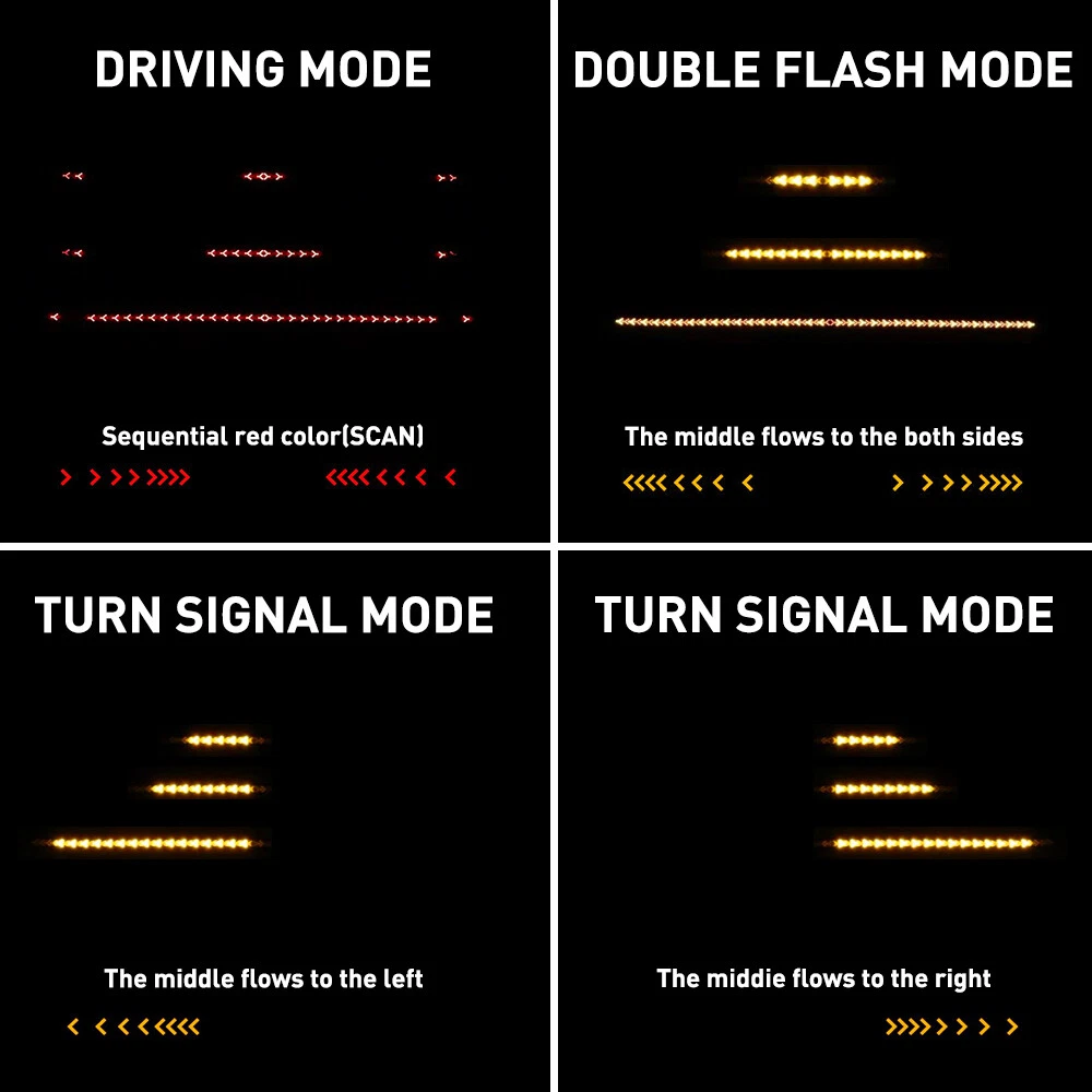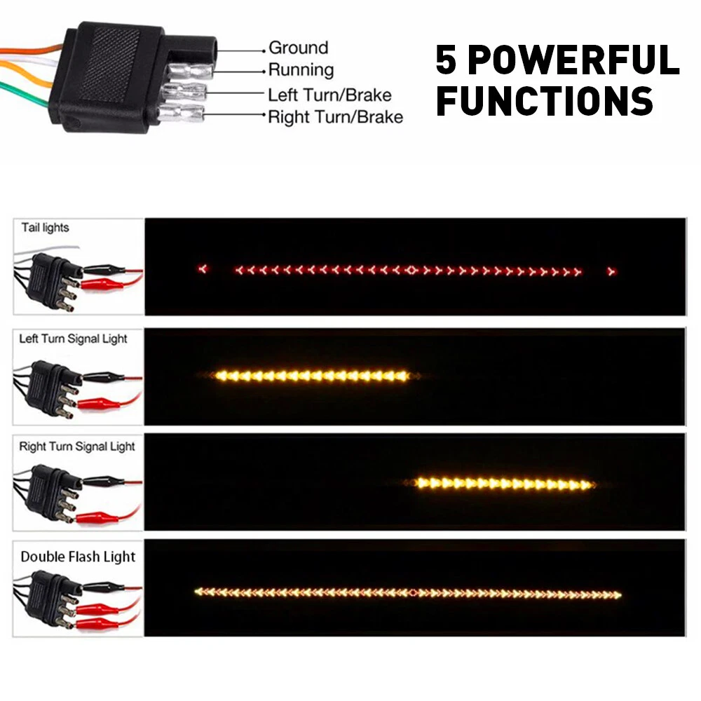 Specifications: LED number: 432pcs(red 216pcs+ amber216pcs) LED type: 2835SMD Beads color: Red+Amber Product length: 48inch(1.2m) Waterproof grade: IP68 Voltage:12v Service life: more than 5000h+ Fit for: This flexible light strip features 48 inches long, widely suited for almost all 12V operated at DC 12V wide voltage, Pickup Trucks, Trailers, Cars, SUV, RV, VAN, boat anchor, etc Features: *More advanced with multiple functions: More advanced than other tailgate lights, our lights have multiple models for you to improve driving safety. (functions include:braking light, sequential turn signal light, double flashlight,brake light etc) 48" 432LED Truck Tailgate Strip Light Bar Flash Brake Lamp Flowing Turn Signal Specifications: LED number: 432pcs(red 216pcs+ amber216pcs) LED type: 2835SMD Beads color: Red+Amber Product length: 48inch(1.2m) Waterproof grade: IP68 Voltage:12v Service life: more than 5000h+ Fit for: This flexible light strip features 48 inches long, widely suited for almost all 12V operated at DC 12V wide voltage, Pickup Trucks, Trailers, Cars, SUV, RV, VAN, boat anchor, etc Features: *More advanced with multiple functions: More advanced than other tailgate lights, our lights have multiple models for you to improve driving safety. (functions include:braking light, sequential turn signal light, double flashlight,brake light etc) *High Brightness: It is equipped with 432PCS LED beads (2835SMD) to enhance clear visibility for the rear drivers and better-ensuring safe traffic on roads. *Simple Installation: Our product with high-quality automotive adhesive makes it not fall off easily. *High Waterproof: IP68 waterproof rate makes it durable and works perfectly in rainy or snowy environments. *Durable This tail light with a fuse inside for short circuit prevention and service life-extending. *Wire connection and corresponding mode: 1. Blue connects to negative 2. White connects to driving light (Sequential red color(SCAN)) 3. Yellow and Green connect to turn signal light(Sequential amber color) 4. Braking light(red light) Packaging inclued: tailgate light*1 Item Specifics Brand AUXITO Placement on Vehicle rear Application fit for Chevy/GMC/Ford/Dodge/Ram Pickup, Truck, Car, SUV, RV,VAN Lighting Technology LED Features Waterproof, Rust-proof, Super Bright, 5 functions, Universal Fit Fitment Type Direct Replacement Housing Color black LED Quantity Total 432 LEDs ( 216 Red LEDs & 216 Amber LEDs ) LED Type Super Bright 2835 LEDs Length 120CM / 48inch Lifetime 50,000++ hours Light Color Red/Amber Material Full Sealed Silicone Model LED Truck Tailgate Strip Bar MPN Does Not Apply Suitable for Accessory Light, Brake Light, Turn Signal Light To Fit Driving Lights, Reversing Lights, Brake Lights, Turn Signal Light Type Tail Light Voltage DC 12V Manufacturer Warranty One Year Warranty Waterproof Rate IP67 Wire Black-Negative,Red-Brake,White-DRL,Green-Left Turn,Yellow-Right T FAQ ♥ If you have a decoding problem or any other problems, please contact us first, we will help you with it. We will reply you within 24 hours in working days. I'm a new seller, thanks a lot for your trust and convince! I will serve you with all my heart. ♥ Q1: Will this bulb fit my vehicle? A: We can match almost any vehicle to one of our bulb sizes. eBay only lets us include some vehicle fitments per listing, but if your vehicle does not show up on the compatibility table at the top of our listings, welcome you to contact us for free consulation before purchasing a product. Q2: My item has not arrived, what's taking so long? A: Sometimes items take longer than expected, especially if it’s going far or to rural area. Check with your post office to see if your item has been held up. Sometimes Royal Mail will not update a tracking number until it has arrived at its destination. If your item still don't arrive after a few days, let us know so we can double check for you and help solve it asap. Q3: My bulbs won't fit, help! A: Special bulb holder may be required. See if you can take the holder from the stock bulb. If not, let us know. The bulb size may be wrong, double check the item you received with the item you ordered. Do you have an aftermarket lighting housing? These may not be perfectly fitted for aftermarket bulbs and will require some manual modifications. Q4: Neither side lighting up? Both sides flicker, hyper flash, or work inconsistantly. A:Check the light fuses, and then check the ballast plugs to insure correct installation. If this doesn't work, there may be a voltage problem with the vehicle. You probably just need a relay or capacitor. Even though some bulbs are builtin resistors, they may still need a decoder. Payment (1). We gladly accepts payment via PayPal, We will ship your item(s) within 24 hours. (2). Before payment, please keep the consistency of Paypal address and ebay address. (3). Quantity orders are welcome! Returns (1). We offer 60 days free return policy. Please contact us within 60 days from the date you receive your order if you have any issues with the product or want return. Refund will be send after we got your resend package. (2). All returned items should be in the original packaging , return tracking information should be provided . Contact us (1).Negative feedback will not help resolve any problems you have, please contact us via eBay messages before leaving negative feedback , our customer service will make best effort to help you with the issues. (2).We maintain high standards of excellenceand strive for 100% customer satisfaction! Feedback is very important to us. We request that you contact us immediately before you give us neutral or negative feedback, so that we can satisfactorily address your concerns. About us We're professional in car and motorcycle accessories, especially in LED bulbs. We have our own factory and R&D team. Our belief is to sell top quality items that fit your car and serve you with our heart. Anything please feel free to contact us! Our customer se