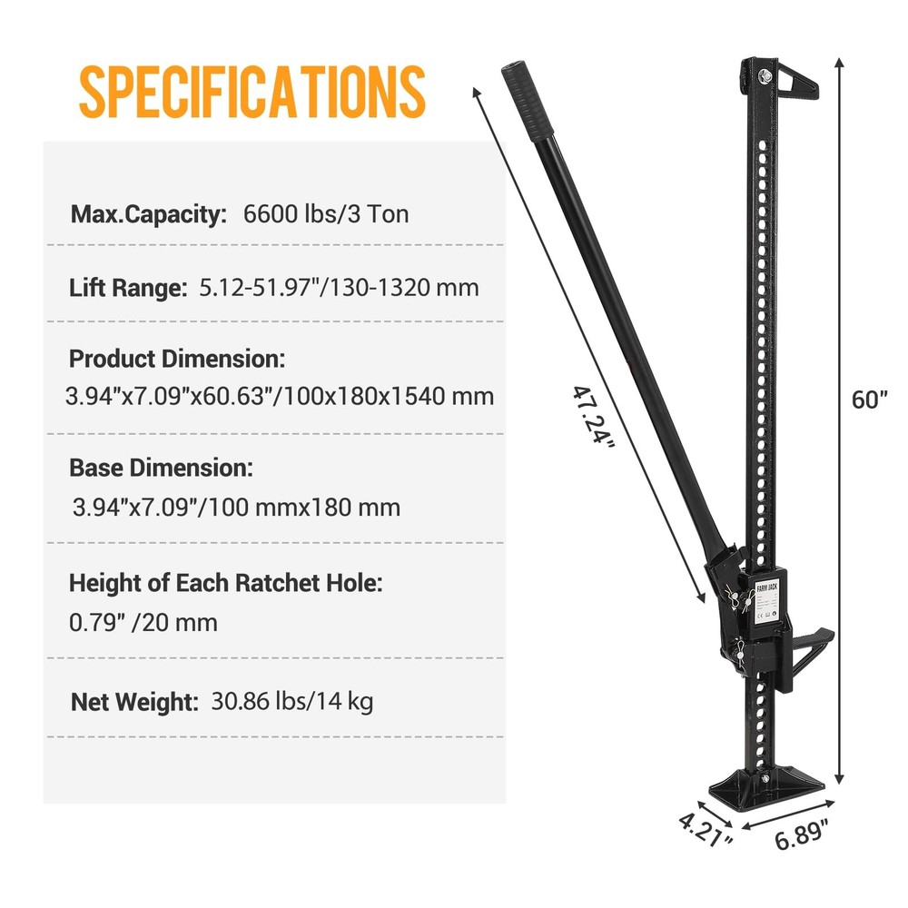 $ 21.4460" High Lift Farm Utility Farm Jack 6600lbs Ratcheting Off Road Utility Jack