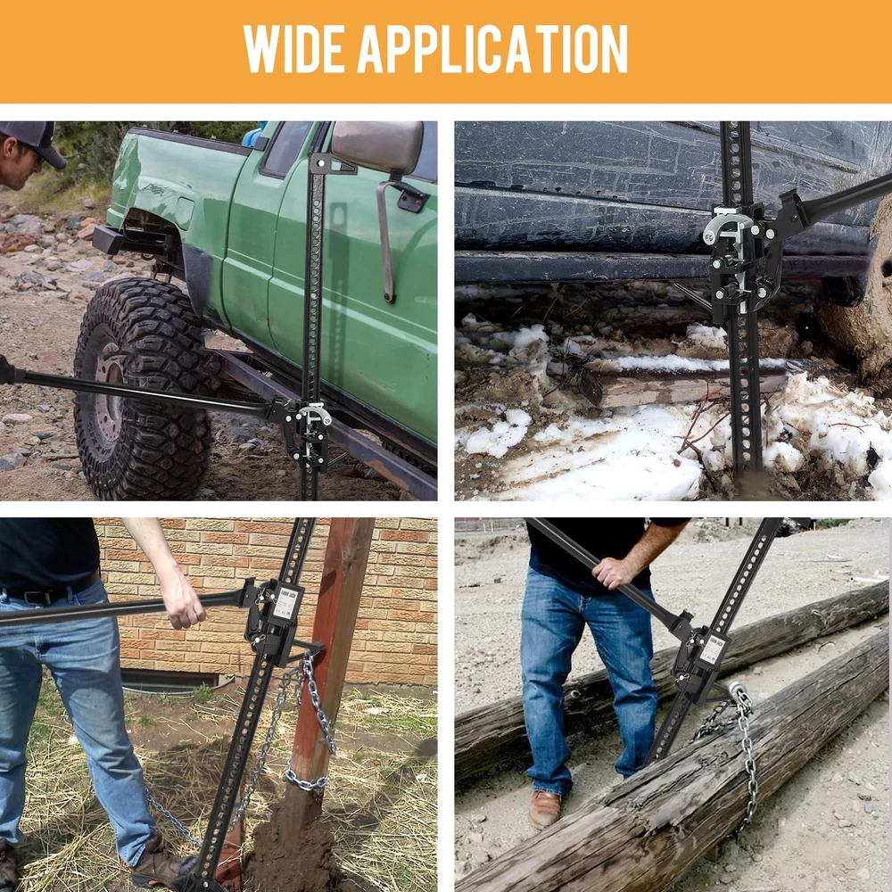 【Large Weight Capacity】This utility farm jack boasts an impressive load capacity of up to 7,000 pounds and offers a lifting range of 5.12 to 41.14 inches(48") /6.10-53.94 inches(60"). It is ideally suited for a variety of farming tasks, such as efficiently lifting agricultural machinery and managing heavy items like stumps and fence posts. With a substantial 48/60 inches of lift height, this jack is compatible with a broad spectrum of vehicles, including off-road vehicles, cars, and trucks, and can also serve as 【Sturdy Construction】Constructed from high-grade steel, this off-road jack is engineered for exceptional durability and reliability. Its robust design resists bending, while the hot-dip galvanized powder coating provides protection against paint flaking and rust. To prolong its lif 48 60 Inch High Lift Jack Ratcheting Off Road Utility High Lift Jack Farm Jack Heavy-Duty High Lift Jack – Your Ultimate Off-Road and Farm Companion With a 3-ton capacity, this farm jack is built to handle the most demanding lifting and recovery jobs with ease. Whether you’re lifting a tractor, truck or Jeep, this high lift jack delivers unmatched reliability and strength. The farm jack's long handle reduces effort, its wide base prevents sinking on soft ground, and its non-slip handle provides a firm grip for safe and easy operation. Crafted from high-strength steel, this jack is designed to withstand the toughest conditions. The black protective coating not only enhances durability but also resists corrosion, ensuring long-lasting performance even in harsh environments. Our farm jack's ratcheting mechanism ensures precise height adjustments, allowing you to lift and secure heavy loads safely. Its versatile functionality extends beyond lifting; it can also serve as a winch for lateral pulls, making it an essential tool for roadside emergencies, farm tasks, and off-road adventures. About the item: 【Large Weight Capacity】This utility farm jack boasts an impressive load capacity of up to 7,000 pounds and offers a lifting range of 5.12 to 41.14 inches(48") / 6.10-53.94 inches(60"). It is ideally suited for a variety of farming tasks, such as efficiently lifting agricultural machinery and managing heavy items like stumps and fence posts. With a substantial 48/60 inches of lift height, this jack is compatible with a broad spectrum of vehicles, including off-road vehicles, cars, and trucks, and can also serve as 【Sturdy Construction】Constructed from high-grade steel, this off-road jack is engineered for exceptional durability and reliability. Its robust design resists bending, while the hot-dip galvanized powder coating provides protection against paint flaking and rust. To prolong its lifespan, it is recommended to clean the jack and apply rust-resistant oil after each use; 【Labor-Saving Lifting】Equipped with a 1200 mm long handle, this farm jack enhances leverage for smoother lifting. The wide base prevents sinking during use, while the non-slip handle provides a secure grip even during challenging tasks. Its user-friendly design makes it accessible for anyone to operate with ease; 【Safety & Precision】Featuring a 20 mm ratchet hole, this jack allows for accurate height adjustments, ensuring stability throughout the lifting process. The wrench mechanism facilitates smooth transitions between lifting and lowering, and a rubber sleeve prevents hand slippage, enhancing both convenience and safety during operation; 【Wide Application】This utility farm jack is an essential multi-purpose tool, perfect for a range of applications. It's great for changing vehicle tires, pulling farm trees, lifting boats, recovering off-road vehicles, and providing roadside assistance. Additionally, it can be used as a winch for lateral pulls, showcasing its versatility in a variety of situations. Payment Delivery details Terms of sales About us Contact us Payment We accept payment either via PayPal or any of the following credit cards; Visa, MasterCard, Discover, and American Express. Delivery details 1. We will delivery out at the handing time when we receive the payment. 2. The delivery time is 3-5 business days to US by usually time.The parcel maybe delay 1-2day of the weekend.Due to the bad weather,Holidays,Hot Season ect.the parcel maybe delay,If you have any problems,mssage us,we will try our best to solve it. 3. We ship to your eBay address. Please make sure your eBay address is correct before you pay. 4. If you want to change the shipping address,message us before our send out. Terms of sales If you are not satisfied with the item for any reason, please do not quick to leave negative/neutral feedback even open request and case without any communication with us. We devote ourselves making EVERY CUSTOMER in 100% Satisfactory and resolve any problem. Thank you for your understanding and recognition,we are always leave positive feedback to all our customers. About Reply: All replies will be sent to your email box, if you do not get response within 24 hours (Sat. & Sun. excluded) please check your eBay My Messages in case that our emails will be filtered automatically by your settings. About us skybridge99 is a brand new store but we are one of North America’s top online suppliers of specialized, high-quality aftermarket online retailers and suppliers, committed to developing new markets. We primarily offers tool sets, auto parts, home goods, etc..With over 20 years of product selection and manufacturing experience, we delivers unparalleled quality, value, service and satisfaction. Our highly-trained, professional staff offer in-depth knowledge and personalized assistance for customers worldwide. Providing our customers with a simple, hassle-free experience with best-in-class customer service is more than a goal. Contact us Any problem please rest assure to contact us by eBay message first. We will reply you as soon as we can. We will deal with it within 24hs on working days.