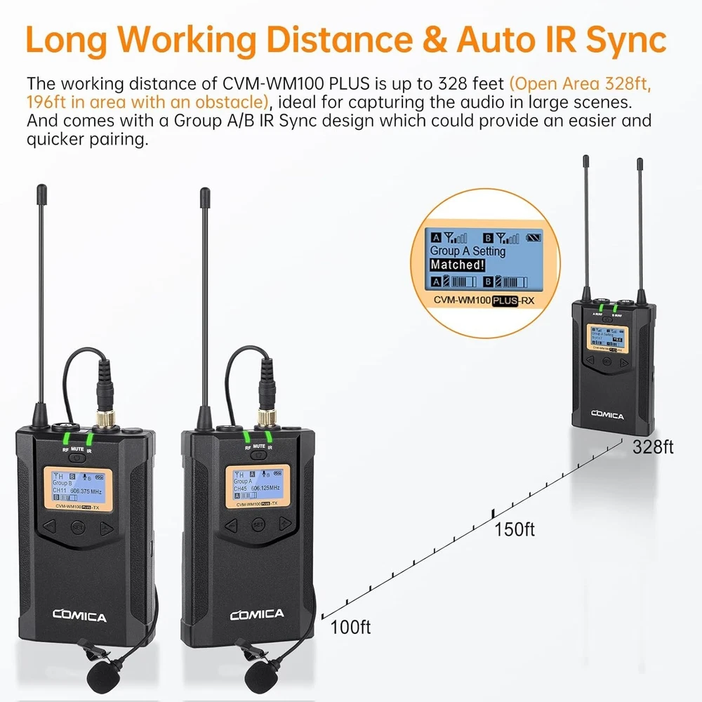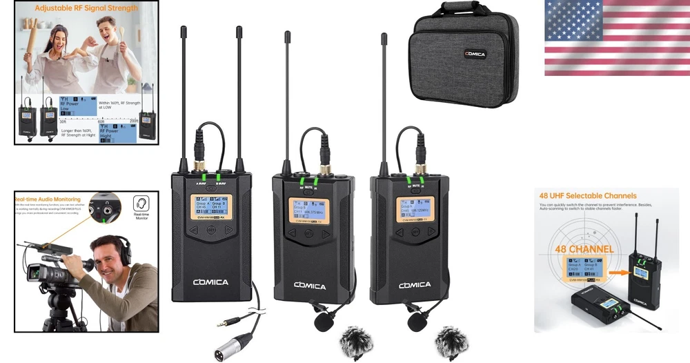 48 Channels Wireless Lavalier Microphone System with Real-Time Monitoring & Mute ‹ › ‹ › ‹ › ‹ › ‹ › ‹ › ‹ › ‹ › ‹ › ‹ › ‹ › 48 Channels Wireless Lavalier Microphone System Experience unrivaled sound quality and clarity during your recordings with this state-of-the-art wireless lavalier microphone system, designed for professionals and enthusiasts alike. Model: CVM-WM100PLUS Features: 48 UHF Selectable Channels: Seamlessly switch between 48 channels to avoid interference and ensure crystal-clear audio. Auto-Scanning: Quickly find and switch to stable channels in real-time, even in crowded environments. Dual-Channel System: Comes with dual transmitters and one receiver, supporting both mono and stereo output for versatile audio applications. Real-Time Monitoring: Test the microphone functionality effortlessly during recording to ensure smooth operation. One-Button Muting: Easily mute the microphone to maintain audio privacy when needed. Noise Reduction & Low Latency: Advanced noise reduction technology offers exceptional sound fidelity, with latency reduced to less than 20ms for smooth audio playback. Lattice LCD Display: Features a high-resolution screen that offers clear monitoring of battery level and volume with a broad viewing angle. Adjustable RF Signal Strength: Choose between low and high settings to optimize power consumption and audio quality based on distance (up to 160ft). Benefits: Perfect for interviews, recording sessions, vlogging, and live streaming, delivering professional-quality audio. Flexible usage with low power consumption ensures longer standby time without sacrificing sound quality. Simple setup process with comprehensive guides available, allowing users of all experience levels to operate with ease. Why choose the CVM-WM100PLUS Wireless Lavalier Microphone? Elevate your audio recordings with the CVM-WM100PLUS, a wireless lavalier microphone engineered for the modern creator. The combination of durable design, dual-channel capability, and advanced noise reduction technology makes this microphone system a must-have for anyone serious about high-quality sound. Whether you're shooting video content, hosting events, or capturing interviews, this system offers the reliability and functionality you need for flawless audio performance. Transform your recording experience—order your 48 Channels Wireless Lavalier Microphone System today! Shipping Free & Fast Shipping - We offer free shipping to most of the USA with a normal delivery time of 3-7 days. However, due to the current situation, additional delivery time (up to 3 weeks) may be required for some items. Alternative Carriers - We may use alternative carriers (e.g. USPS, FedEx, UPS, etc.) to ensure your package arrives safely and on time. Due to the use of multiple carriers, we are unable to provide a tracking number automatically. Handling Time - Orders are processed and shipped within 1-2 business days of receiving cleared payment. Shipping Restrictions - Shipping to Alaska, Hawaii, Puerto Rico, Guam, and other US territories may incur shipping charges or delivery restrictions. Please contact us before ordering, or your order can be refunded/cancelled. State Restrictions - There may be restrictions based on your state of purchase. For example, certain items may not be shipped to California due to state regulations. Contact for Tracking Updates - If you require tracking updates or have any concerns about the delivery of your order, please feel free to contact us, and we will be happy to assist you. Return Please see our eBay Return Policy. Thank you. Payment We accept all major credit cards, PayPal, and Apple Pay for your convenience. Your payment information is secure and encrypted to ensure a safe and seamless transaction. Please complete your payment within 3 days of purchase to avoid any delays in shipping. Feedback Your feedback is extremely important to us. We strive to provide the best products and customer service possible. If you are satisfied with your purchase, please take a moment to leave us a positive review. If you have any concerns or issues with your order, please contact us before leaving negative feedback. We are committed to resolving any problems and ensuring your satisfaction. Contact Us If you have any questions or concerns, please feel free to reach out to our customer support team. You can contact us through the eBay messaging system. We are available Monday to Friday, 9:00 am to 5:00 pm EST, and we will do our best to respond to your inquiry within 24 hours. Thank you for supporting our small family business! UPC: Not Set Maximum SPL: 65 dB Unit Quantity: 6 Item Weight: 2.14 lb Connectivity: UHF,3.5 mm jack,XLR Features: Wireless Handheld,Dual-Channel System,Mono/Stereo Mode,One-Button Muting,Real-Time Monitoring,Noise Reduction,Low Latency,Adjustable RF Signal Strength Compatible Model: Cameras Brand: Unbranded Form Factor: Lavalier/Lapel Transducer Type: Dynamic Model: Not Set Diaphragm Size: Medium Suitable For: Live Performance MPN: Not Set Unit Type: lb Color: Black Polar Pattern: Omnidirectional Country/Region of Manufacture: Not Set Manufacturer Warranty: Not Set Mount Type: Mounting Plate Compatible Brand: Not Set