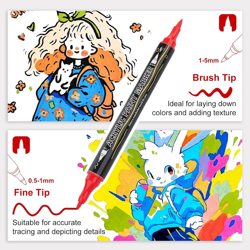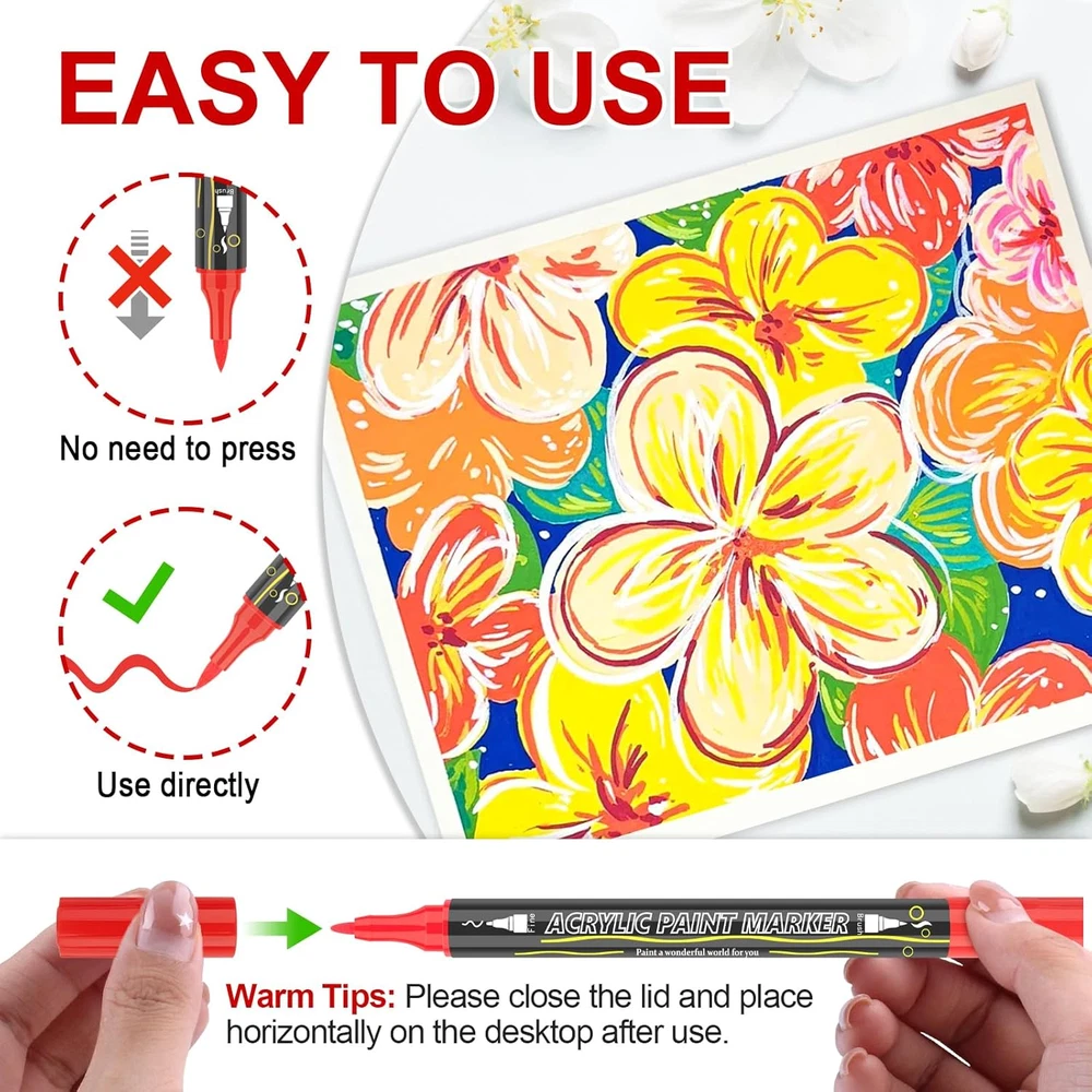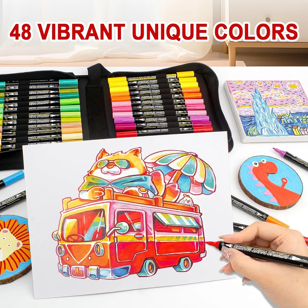 Store New Arrivals Add to Favorite View Feedback Contact Fast deliveries to the customer's home Quality customer service John Make the customers happy! 48 Colors Paint Markers Acrylic Paint Pens, Dual Tip with Brush Tip and Fine Tip, Art Supplies for Rock Painting, Wood, Canvas, Stone, Glass, Ceramic, DIY Crafts Making Drawing Kit with Bag Description Dual Tip Design: Our acrylic markers feature a dual tip design, including a 1-5mm brush tip and a 0.5-1mm fine tip, the brush tip is perfect for drawing and coloring large areas. The fine nib is perfect for outlining and fine line work, and you can create different strokes by changing the pressure of the brush, bringing more convenience to your creation. 48 Vibrant Colors: With 48 unique and vibrant colors to choose from, this complete set of double-ended acrylic markers is colorful enough to meet all your creative needs. The ink provides excellent coverage and durability, allowing your creations to stand the test of time. WARM TIP: Please close the cap after use to keep the marker smoother. Portable Pen Pouch Design: We use high quality expandable pen pouch design, each pen can be easily seen, the layers greatly improve the sense of use, easy to access at any time. And it won't cause any pen to be lost, and comes with a zipper as well as an extra handle for easy gripping and carrying. Working on Any Surface: Our acrylic dual tip markers are suitable for use on almost all surfaces, including ceramic, wood, fabric, stone, metal, plastic, canvas, shoes, eggs, paper, clothes, models, leather, create DIY arts and crafts graffiti projects on a wide variety of surfaces to your heart's content. Best Choice: Acrylic paint pens are also available for birthdays, Easter, Halloween, Christmas, Valentine's Day, Easter, New Year's Day, and Thanksgiving, making them ideal for students, adults, and even artists! Please Note: In order to further enhance the use of the product and the appearance of recognition, we decided to upgrade the packaging of the product, the old and new packaging coexist, the quality and specifications of the old and new packaging products are consistent, please rest assured that the use of the product, thank you for your continued support. Product Description Water Resistance Level Water Resistant Number of Items 1 Color 48 Colors Pattern Solid Line Size 0_5mm Ink Color Multicolor Marker Type Paint Marker Theme Arts & Crafts, DIY Projects, Celebrations Point Type Brush Surface Recommendation Wood, Glass, Stone, Ceramic, Paper, Leather Drill Point Brush Additional Features Flexible Tip, Brush Tip Target Audience Kid, Adult Hand Orientation Ambidextrous Style Name Modern Number of Pieces 48 ABOUT US We offer the best prices around on high quality products. Our E-store includes media such as books, movies, music and games while offering electronics, toys, sporting apparel, clothing, tools, general home, garden items and more. SHIPPING We are always working hard to ensure your package arrives as soon as possible. Please understand that some factors like weather, high postal traffic, and the performance of shipping companies are outside of our control. We offer free shipping to the lower 48 states and ship within 2 business days of payment, usually sooner. We do not accept P.O. Boxes. Please provide a physical address. For shipping outside of the continental USA, we only use eBay's Global Shipping Program. The item is shipped to KY and then sent to the rest of the world. International customers are responsible for all duties and taxes. Continue to 'check out' to calculate costs for shipping the item to your country. Messages regarding eBay's Global Shipping Program MUST be directed at eBay EXCLUSIVELY. RETURNS We offer a 30-Day Return Policy on items in which you are not completely satisfied with. You have the option of a full-refund or an exchange of the item. No returns are available on items shipped outside of the USA PAYMENT We accept PayPal. CONTACT US This page content is yet to come Please ad us to your favorite seller and visit again later Thank You CUSTOMER SATISFACTION We try our very best to make sure every customer is completely satisfied. If there's a problem, message us! We're happy to help. WE ACCEPT
