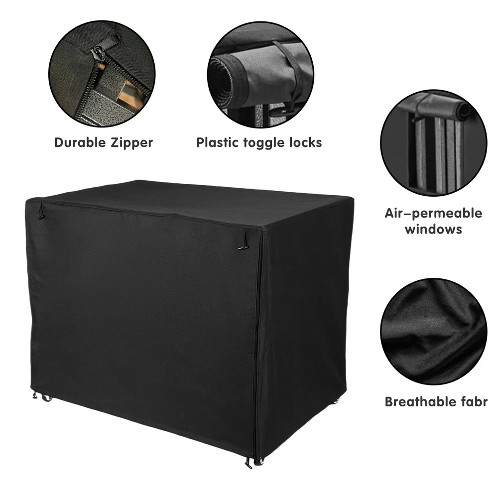 Fits Perfectly:The dog crate cover snugly fits over your dog's 36-inch crate.Crate cover dimension: 48.82L x 31.89W x 34.25H inch.This dog kennel cover is designed specifically for heavy duty dog crates. The dog crate cover is also versatile enough to fit most brands of standard 36-inch wire crates.(Only Cover, Without Crate) 100% Blackout & Privacy:The dog crate covers block 100% of light.The crate cover provides a quiet, private, relaxing and cozy environment for your dog. The dog crate covers makes your dog more relaxed and calm. Prevents your pet from feeling anxious during times of stress or when there is a lot of noise around.The dog kennel cover is also resistant to spills and splashes. Premium Material-600D oxford:The dog crate cover is made of heavy-duty sun-proof 600D Oxford fabric. The surface of the kennel cover is covered with PU coating, which is very wear-resistant and can prevent pets from scratching and causing damage. And this crate cover is windproof and waterproof. Compared with PVC type dog cover, our dog crate cover is more breathable, softer, not easy to tear and durable. The crate cover can block most of the direct sunlight. Ventilation & Breathability: This dog crate cover has an entrance door on the front facade and a window on the side . Adjustable sight lines and ventilation with breathable side windows to ensure air circulation. Easy to Install:All you need to do is place it on the dog crate. Then secure the four side loops to the dog crate to complete the installation. The dog crate cover is equipped with a roller blind for adjustable visibility and ventilation