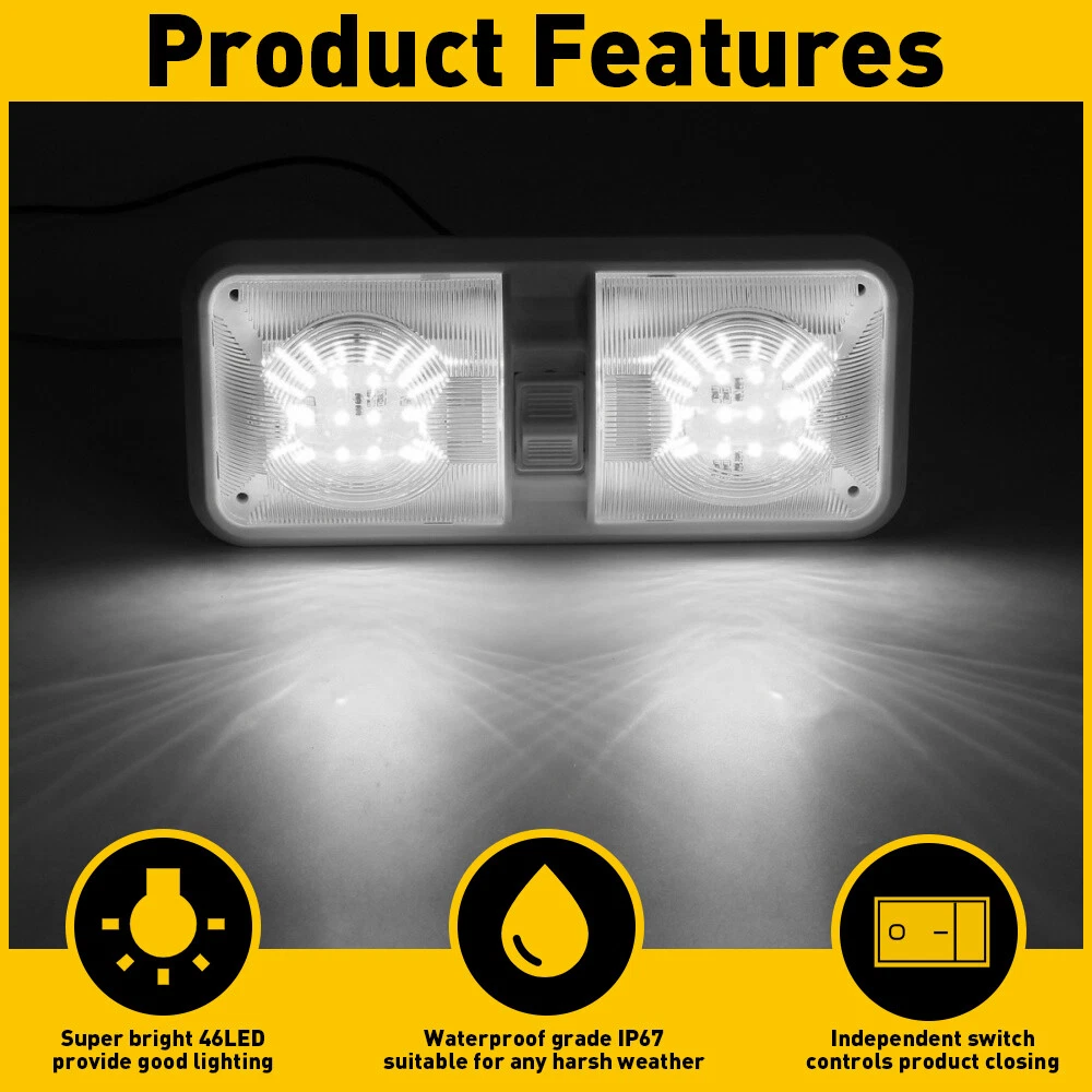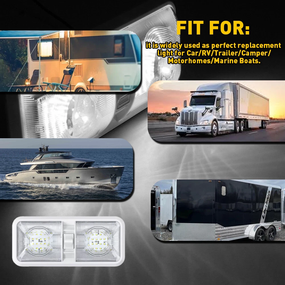 Specification: Material:PC LED: 48 LEDs(left+right) LED type:2835 SMD LED Voltage:11-18V Color temperature:4000-4500K Lumen:600LM Waterproof IP: IP67 Service life:50000h+ Features: *High-brightness and Comfortable Light Source The LED lighting lamp with three gears switch to control has built-in 48 high-quality LED chips, you can easily perform indoor work at night. *Simple installation Easy installation, Low power consumption. *IP67 waterproof Prevent from water, snow, moisture, rusting and dust, don't worry about leak inside problem. *Gears Control 48 LED RV Camper Ceiling WHITE Rounded Light Door Catch Compartment latch Holder Specification: Material:PC LED: 48 LEDs(left+right) LED type:2835 SMD LED Voltage:11-18V Color temperature:4000-4500K Lumen:600LM Waterproof IP: IP67 Service life:50000h+ Features: *High-brightness and Comfortable Light Source The LED lighting lamp with three gears switch to control has built-in 48 high-quality LED chips, you can easily perform indoor work at night. *Simple installation Easy installation, Low power consumption. *IP67 waterproof Prevent from water, snow, moisture, rusting and dust, don't worry about leak inside problem. *Gears Control Independent switch control can make it easy to open and close at any time. Gears description: Built in 3-way switch (to use one or both sides of light fixture) Gear 1:One side on Gear 2:light off Gear 3:Two sides on *Application It is widely used as perfect replacement light for Car/RV/Trailer/Camper/Motorhomes/Marine Boats.. Packaging include: Dome light *1 Item Specifics Quantity 1 California Prop 65 Warning High Quality Custom Bundle Yes Country/Region of Manufacture United States Material PC LEDS 48 Life 50000 h Led Type 2835 SMD LED Waterproof IP67 Manufacturer Part Number LLK-DRCTH-W5 Volt 11-18V Brand Unbranded Warranty 2 Year Part Type Accessories FAQ ♥ If you have a decoding problem or any other problems, please contact us first, we will help you with it. We will reply you within 24 hours in working days. I'm a new seller, thanks a lot for your trust and convince! I will serve you with all my heart. ♥ Q1: Will this bulb fit my vehicle? A: We can match almost any vehicle to one of our bulb sizes. eBay only lets us include some vehicle fitments per listing, but if your vehicle does not show up on the compatibility table at the top of our listings, welcome you to contact us for free consulation before purchasing a product. Q2: My item has not arrived, what's taking so long? A: Sometimes items take longer than expected, especially if it’s going far or to rural area. Check with your post office to see if your item has been held up. Sometimes Royal Mail will not update a tracking number until it has arrived at its destination. If your item still don't arrive after a few days, let us know so we can double check for you and help solve it asap. Q3: My bulbs won't fit, help! A: Special bulb holder may be required. See if you can take the holder from the stock bulb. If not, let us know. The bulb size may be wrong, double check the item you received with the item you ordered. Do you have an aftermarket lighting housing? These may not be perfectly fitted for aftermarket bulbs and will require some manual modifications. Q4: Neither side lighting up? Both sides flicker, hyper flash, or work inconsistantly. A:Check the light fuses, and then check the ballast plugs to insure correct installation. If this doesn't work, there may be a voltage problem with the vehicle. You probably just need a relay or capacitor. Even though some bulbs are builtin resistors, they may still need a decoder. Pay & Ship (1). We gladly accepts payment via PayPal, We will ship your item(s) within 24 hours. (2). Before payment, please keep the consistency of Paypal address and ebay address. (3). Quantity orders are welcome! Returns (1). We offer 60 days free return policy. Please contact us within 60 days from the date you receive your order if you have any issues with the product or want return. Refund will be send after we got your resend package. (2). All returned items should be in the original packaging , return tracking information should be provided . Contact Us (1).Negative feedback will not help resolve any problems you have, please contact us via eBay messages before leaving negative feedback , our customer service will make best effort to help you with the issues. (2).We maintain high standards of excellenceand strive for 100% customer satisfaction! Feedback is very important to us. We request that you contact us immediately before you give us neutral or negative feedback, so that we can satisfactorily address your concerns. About us We're professional in car and motorcycle accessories, especially in LED bulbs. We have our own factory and R&D team. Our belief is to sell top quality items that fit your car and serve you with our heart. Anything please feel free to contact us! Our customer service is very responsibility. Come and follow us! DESCRIPTION NEW ARRIVED HOT SALE CONTACT US SAVE US Store Category Store Home Other Hot Item 10'' 15 LED Red Trailer Sealed Truck RV Stop Tail Rear Brake Turn Light Bar CN USD 12.99 2x 12 Terminal Block Bus Bar & Cover 12V Distribution Bus Bar Auto Boat Power USD 37.19 2x 6" LED Sealed Tail Reverse Signal Running Lights for Trailer Truck Tractors USD 21.99 1X Black 9-Pins Switch Mirror For Chevrolet GMC Car Auto Accessories Perfect Fit USD 12.99 Master Switch Window Power Driver Side 12pin/21pin For Jeep Liberty Nitro Journe USD 26.99 New List Item 12V Terminal Block Bus Bar & 2x 12 Cover Distribution Bus Bar Auto Boat Power USD 17.99 RV LED 12v CEILING FIXTURE DOUBLE DOME LIGHT For CAMPER TRAILER RV MARINE Frost USD 15.99 42 LED Green 316 Stainless Steel Underwater Boat Marine Transom Lights Pontoon USD 21.99 RV 12v Interior light w/switch Frosted DOUBLE DOME Trailer Camper Marine IP67 USD 15.99 Upgraded Thetford Aqua Magic V Toilet Water Valve For Replacement RV Part# 31705 USD 16.99 Picture 48 LE