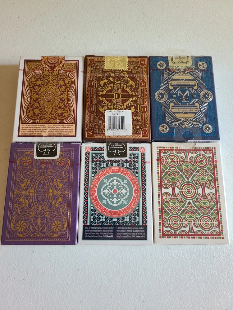 This product is a lot of 48 new and sealed playing cards from Bicycle and Theory11, as well as an extra pack. The cards are perfect for collectors or anyone looking to add some extra decks to their collection. The set includes high-quality playing cards that are ideal for card games and are sure to be a great addition to any card lover's collection. The seal is torn of a little on the Extra Pack, as shown in the pictures above.