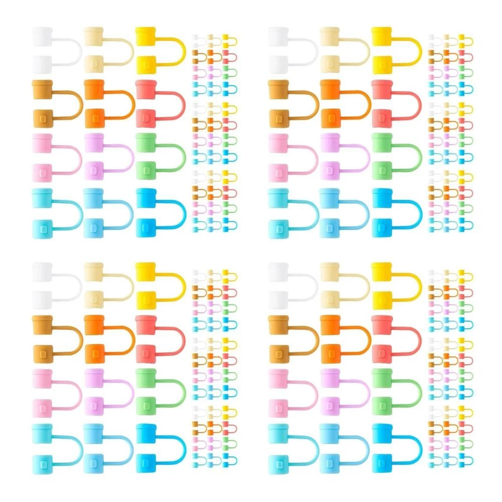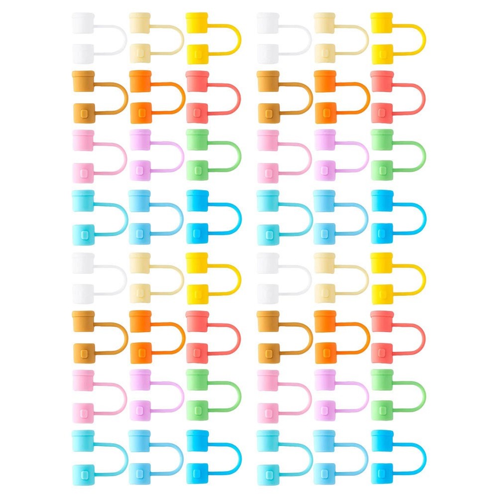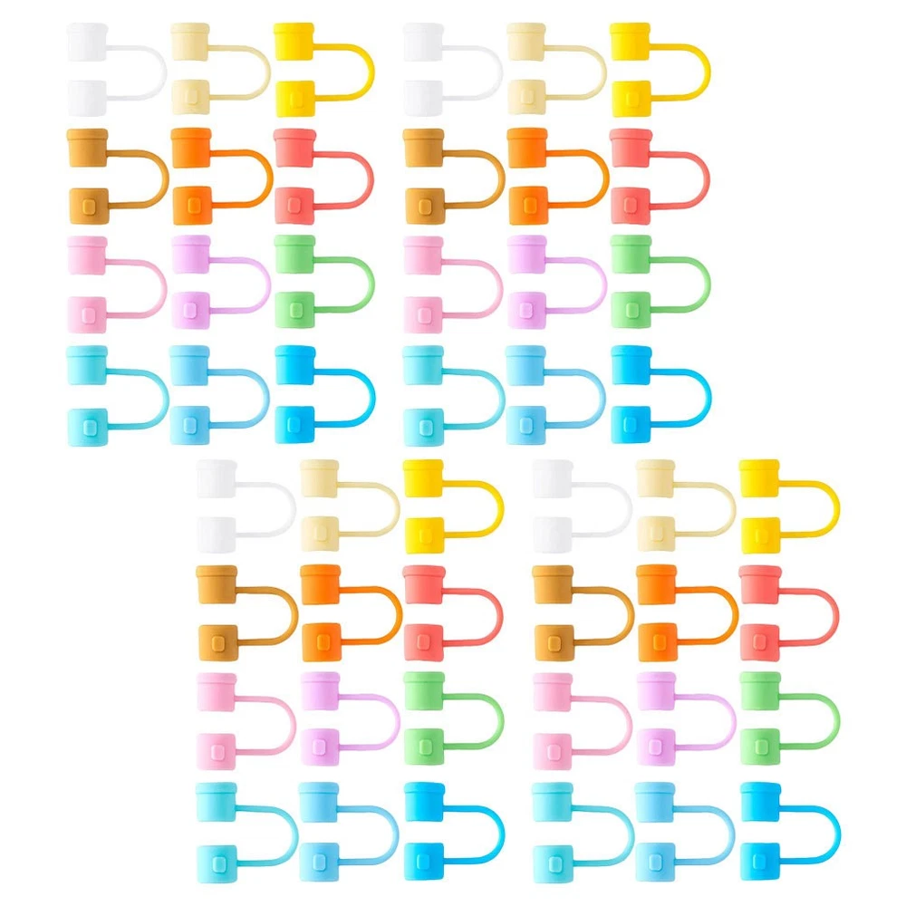 48 Pcs Silicone Straw Cap Tips Cover Reusable Straws Covers Drinking Topper