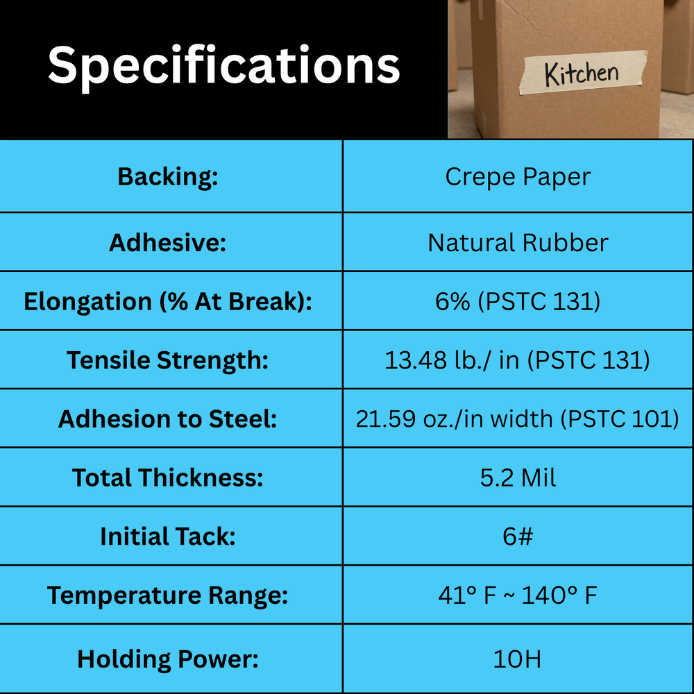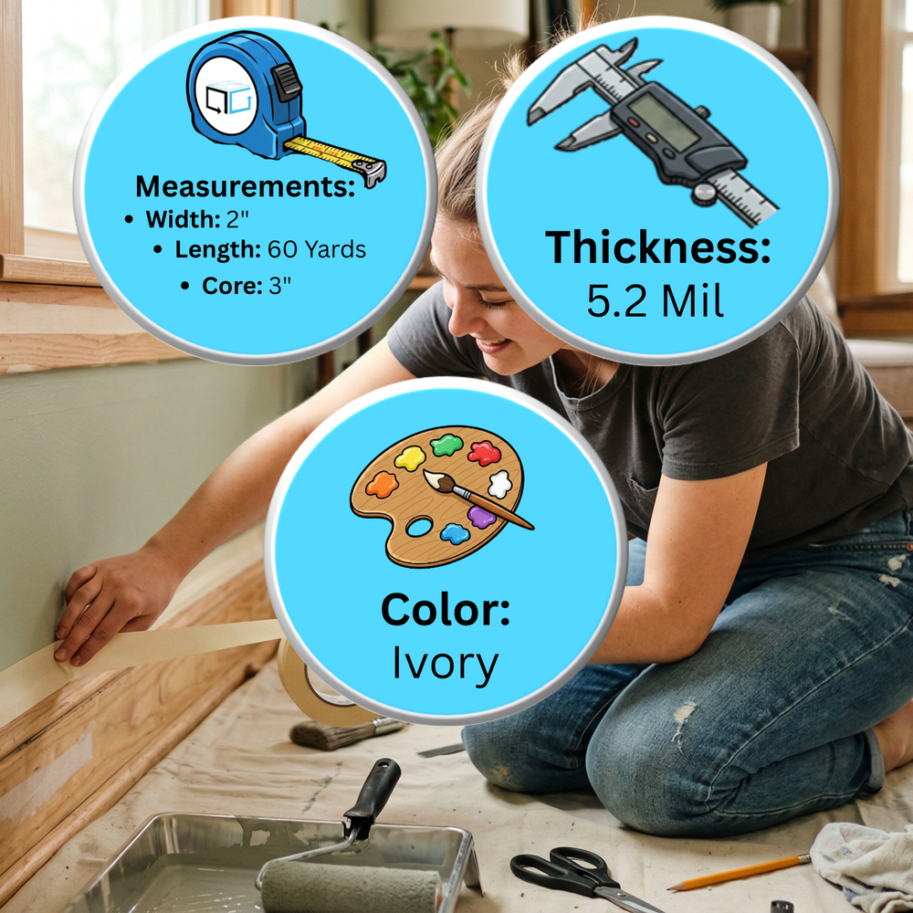 48 Rolls 2" x 60 Yards Ivory Masking Tape 5.2 Mil Adhesive Removable Cleanly