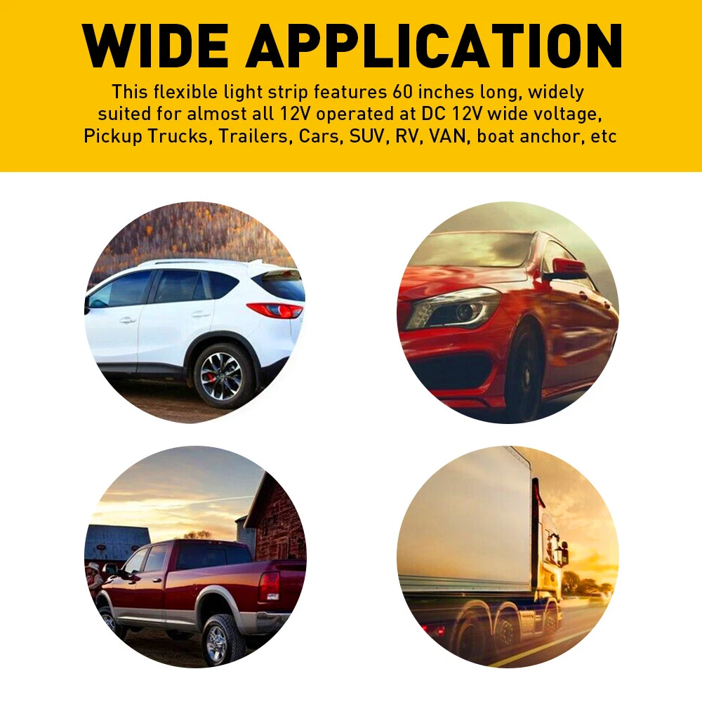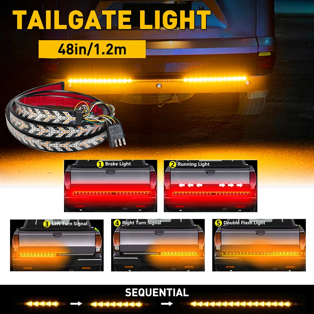 Specifications: LED number: 432pcs(red 216pcs+ amber216pcs) LED type: 2835SMD Beads color: Red+Amber Product length: 48inch(1.2m) Waterproof grade: IP68 Voltage:12v Service life: more than 5000h+ Fit for: This flexible light strip features 48 inches long, widely suited for almost all 12V operated at DC 12V wide voltage, Pickup Trucks, Trailers, Cars, SUV, RV, VAN, boat anchor, etc Features: *More advanced with multiple functions: More advanced than other tailgate lights, our lights have multiple models for you to improve driving safety. (functions include:braking light, sequential turn signal light, double flashlight,brake light etc) 48" Truck Tailgate LED Light Bar Sequential Turn Signal Brake Stop Tail Strip Specifications: LED number: 432pcs(red 216pcs+ amber216pcs) LED type: 2835SMD Beads color: Red+Amber Product length: 48inch(1.2m) Waterproof grade: IP68 Voltage:12v Service life: more than 5000h+ Fit for: This flexible light strip features 48 inches long, widely suited for almost all 12V operated at DC 12V wide voltage, Pickup Trucks, Trailers, Cars, SUV, RV, VAN, boat anchor, etc Features: *More advanced with multiple functions: More advanced than other tailgate lights, our lights have multiple models for you to improve driving safety. (functions include:braking light, sequential turn signal light, double flashlight,brake light etc) *High Brightness: It is equipped with 432PCS LED beads (2835SMD) to enhance clear visibility for the rear drivers and better-ensuring safe traffic on roads. *Simple Installation: Our product with high-quality automotive adhesive makes it not fall off easily. *High Waterproof: IP68 waterproof rate makes it durable and works perfectly in rainy or snowy environments. *Durable This tail light with a fuse inside for short circuit prevention and service life-extending. *Wire connection and corresponding mode: 1. Blue connects to negative 2. White connects to driving light (Sequential red color(SCAN)) 3. Yellow and Green connect to turn signal light(Sequential amber color) 4. Braking light(red light) Packaging inclued: tailgate light*1 Item Specifics Brand AUXITO Placement on Vehicle rear Application fit for Chevy/GMC/Ford/Dodge/Ram Pickup, Truck, Car, SUV, RV,VAN Lighting Technology LED Features Waterproof, Rust-proof, Super Bright, 5 functions, Universal Fit Fitment Type Direct Replacement Housing Color black LED Quantity Total 432 LEDs ( 216 Red LEDs & 216 Amber LEDs ) LED Type Super Bright 2835 LEDs Length 120CM / 48inch Lifetime 50,000++ hours Light Color Red/Amber Material Full Sealed Silicone Model LED Truck Tailgate Strip Bar MPN Does Not Apply Suitable for Accessory Light, Brake Light, Turn Signal Light To Fit Driving Lights, Brake Lights, Turn Signal Light Type Tail Light Voltage DC 12V Manufacturer Warranty One Year Warranty Waterproof Rate IP67 Wire Black-Negative,Red-Brake,White-DRL,Green-Left Turn,Yellow-Right T Payment Variety of payment methods are accepted, such as credit, debit, gift cards, Apply pay, Google Pay, Paypal and Paypal Credit. Shipping 1. All items will be shipped in 24 hours after receiving your payment . 2. We ship this item to US only via USPS first class mail. It usually takes 3-5 working days to deliver. Returns 1. We offer 60 days return policy. 2. Please contact us if you have any questions with the products . 3. Refund will be sent after we got your returned package. 4. All returned items should be in the original packaging with tracking number. Contact Us We work from Monday - Saturday 9:00AM - 6:00PM, but we will reply once we get your message. There will be delay on response if you send message or E-Mail on Sunday. DESCRIPTION PAYMENT SHIPPING RETURN POLICY CONTACT US Shop Category Store Home LED Headlight ◈ 9005 HB3 ◈ 9006 HB4 ◈ H7 LED Plate Light LED Reverse Light LED Brake Light Rear Bumper Light Tail Light assemblies Car Parts & Accessories ◈ LED Third Brake Light ◈ Other Parts & Accessories Other New List Item 6M 20Ft RGB LED Car Interior Fiber Optic Neon Strip Atmosphere Light Kit APP USA USD 26.99 AUXITO H8 H9 H11 LED Headlight Kit High Low Beam Bulbs Super Bright 6500K White USD 21.99 Universal 9.84"x59" Windshield Banner Matte Black Vinyl Decal Sun Strip I USD 10.99 Round Motorcycle LED Brake Tail Light Red For Harley Chopper Bobber Cafe Racer I USD 15.99 AUXITO H11 9005 LED Headlight Bulbs Combo High Low Beam Super Bright Wireless USD 47.99 Hot Item Rubber Seal Trim Prevent Water Leakage Windshield Sunroof Roof Top Window 10FT USD 10.99 FOR 94-04 MUSTANG PASSENGER or DRIVER SIDE MASTER POWER WINDOW CONTROL SWITCH USD 9.99 AUXITO Combo 4 9005 + H11 LED Headlight Kit Bulbs High Low Beam White 80000LM USD 35.99 Rubber Seal Trim Prevent Water Leakage Windshield Sunroof Roof Top Window 10FT USD 12.99 Auxito 9005 + H11 Combo LED Headlight 120W 80000LM High/Low Beam 6500K Bulbs Kit USD 46.99 Similar Item Excellent Delivery 48" Truck Tailgate LED Light Bar Sequential Turn Signal Brake Stop Tail Strip Specifications: LED number: 432pcs(red 216pcs+ amber216pcs) LED type: 2835SMD Beads color: Red+Amber Product length: 48inch(1.2m) Waterproof grade: IP68 Voltage:12v Service life: more than 5000h+ Fit for: This flexible light strip features 48 inches long, widely suited for almost all 12V operated at DC 12V wide voltage, Pickup Trucks, Trailers, Cars, SUV, RV, VAN, boat anchor, etc Features: *More advanced with multiple functions: More advanced than other tailgate lights, our lights have multiple models for you to improve driving safety. (functions include:braking light, sequential turn signal light, double flashlight,brake light etc) *High Brightness: It is equipped with 432PCS LED beads (2835SMD) to enhance clear visibility for the rear drivers and better-ensuring safe traffic on roads. *Simple Installation: Our product with high-quality automotive adhesive makes it not fall off easily. *High Waterproof: IP68 waterproof rate makes it durable and works perfectly in rainy or snowy environments. *Durable This tai