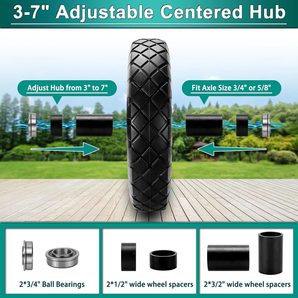 Store New Arrivals Add to Favorite View Feedback Contact 4.80/4.00-8" Tire Wheels 16" Heavy Duty Solid Flat-Free Tire with 5/8" or 3/4" Axle Borehole,3-7" Adjustable Centered Hub for Wheelbarrow Garden Trailer and Trolley by Description Item model number 4.80/4.00-8" Wheel Size 16 Inches Material Rubber Rim Size 16 Inches Color white Item Diameter 16 Inches Rim Width 3.6 Inches Vehicle Service Type Trailer Item Weight 15.32 pounds Manufacturer Part Number E2022000084 Model 4.80/4.00-8 Flat Free Tire Size 4.80/4.00-8" SPECIFIC SIZE: [2-pack] 4.80/4.00-8 tire and wheel 16" Heavy Duty Solid Flat-Free Wheels with Diameter: 16" Tire Width 3"; Axle Bore Diameter: 5/8"; hub offset: 3". Additional extension spacers and 3/4" bearings make our 4.80/4.00-8 tire suitable for almost all flat free wheelbarrow tires with hub lengths between 3" and 7".Please check the size before you buy it To make sure the tires match HEAVY DUTY WHEELS: Each Wheel Maximum load :400 lb (181 kg). Saw tooth tread Heavy Duty Solid tires save you the trouble of pumping air and prevent punctures or air leaks. It is more suitable for dynamic load-bearing, but not static load-bearing. Warm reminder: avoid downloading heavy loads in a static state for a long time. Because of the material characteristics, it is easy to shrink when it is stationary for a long time CUSTOMER SATISFACTION : 12 months warranty! RISK-FREE SHOPPING. Ask us if you have any questions about 4.80/4.00-8 tire and wheel, and we will solve it for you right away. We will strictly carry out the quality-control project,which will enable our customers to buy with confidence and use with satisfaction SUPEREIOR QUALITY :Tires are made of 100% natural rubber and rim are made from highly durable iron. Rubber is 4 times thicker than other brands and these wheels offer maximum shock absorption for a smooth and comfortable ride. Provide a longer service life. Serrated tread and double sealed ball bearing design ensure good tire traction and and equipped with off-highway service (NHS) tires and thick inner tubes even in the most challenging terrain(Not for highway use) WIDE USAGE : The 4.80 4.00-8 wheelbarrow wheels are usable with wheelbarrows, contractor grade unicycles, garden trailers, spreaders, roofing equipment, etc. When a 16 pneumatic tires blowout occurs, there is no need to buy a new Cart. Only need to replace the4.80/4.00-8" tire and Wheel , you can use it normally Product Description ABOUT US We offer the best prices around on high quality products. Our E-store includes media such as books, movies, music and games while offering electronics, toys, sporting apparel, clothing, tools, general home, garden items and more. SHIPPING We are always working hard to ensure your package arrives as soon as possible. Please understand that some factors like weather, high postal traffic, and the performance of shipping companies are outside of our control. We offer free shipping to the lower 48 states and ship within 2 business days of payment, usually sooner. We do not accept P.O. Boxes. Please provide a physical address. For shipping outside of the continental USA, we only use eBay's Global Shipping Program.The item is shipped to KY and then sent to the rest of the world. International customers are responsible for all duties and taxes. Continue to check out in order to calculate costs for shipping the item to your country. Messages regarding eBay's Global Shipping Program MUST be directed at eBay EXCLUSIVELY. RETURNS We offer a 30-Day Return Policy on items which you are not completely satisfied with. You have the option for a full-refund or an exchange of the item. No returns are available on items shipped outside of the USA. PAYMENT We accept PayPal. CONTACT US This page content is yet to come Please ad us to your favorite seller and visit again later Thank You CUSTOMER SATISFACTION We try our very best to make sure every customer is completely satisfied. If there's a problem, message us! We're happy to help. WE ACCEPT Copyright © 2021 AutoDS. | All Rights Reserved