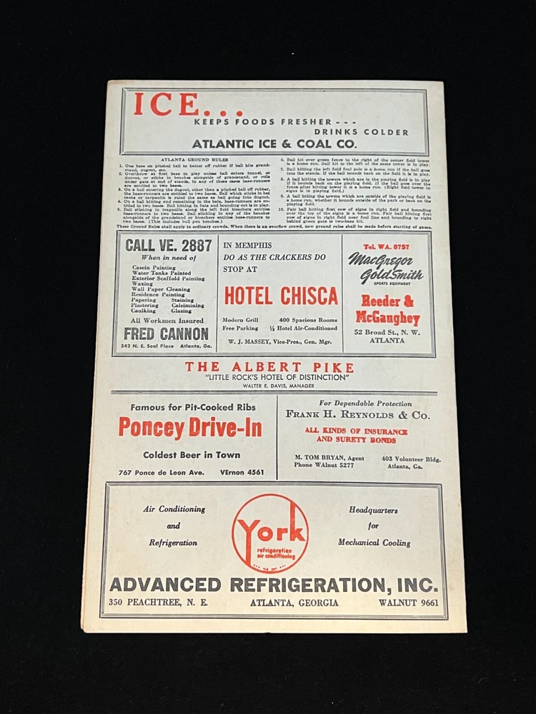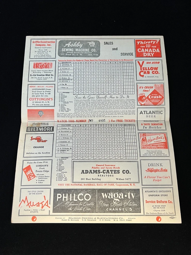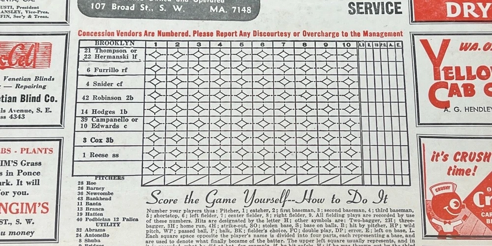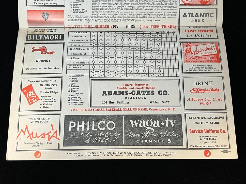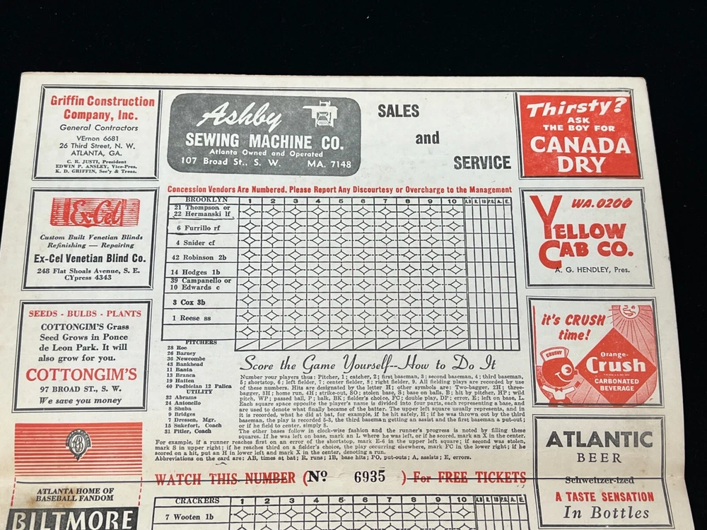 4.8.1951 Atlanta Crackers vs Brooklyn Dodgers Score Card Unused W/Coca Cola 6935