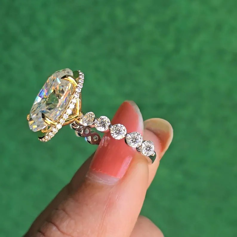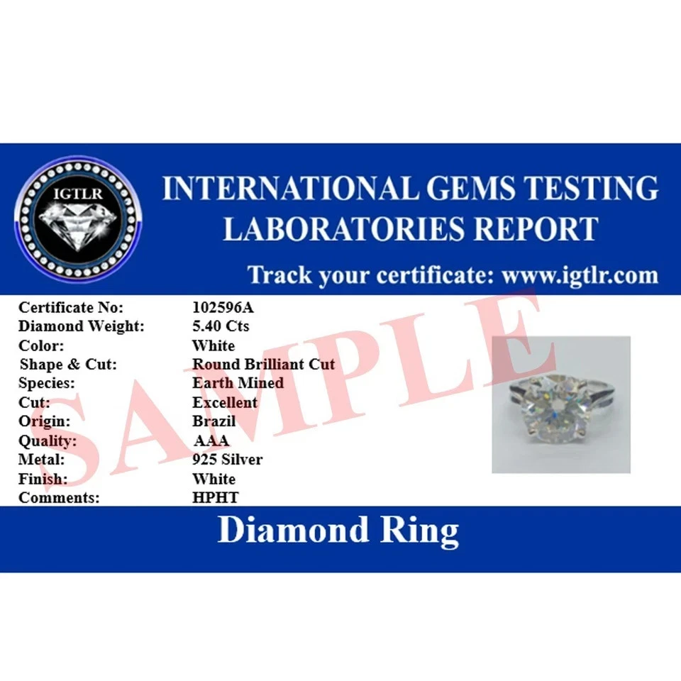 Welcome to Sunlight jewels Buy With Confidence from A Trusted Seller Every Diamond we sell is double tested and 100% guaranteed to be a Real Earth Mined Diamond! ********************************************************************************************************************************* ALL ITEMS WILL BE DELIVERED WITHOUT PAYING ANY TARIFFS, CUSTOM DUTIES ETC. BY YOU. ELEGANT LOOK! GREAT SHINE! Diamond Color - White Shape of Diamond - Oval Cut Approx. Weight of Diamond - 4.82 Carat Approx. Size of Diamond - 14 mm Origin of Diamond - Brazil Species - Earth Mined Treated - HPHT Clarity - VVS1 Cut - Excellent Size of Ring – US 7 is default size - (Can be resized for additional $ 20.00 or default will be shipped) https://www.ebay.com/itm/404196768619 You can pay for resizing from the following link: Please copy and paste the above link in your browser Metal - Stamped Solid 925 Sterling Silver Finish - Yellow & White Gold This diamond ring is handcrafted with utmost care. Would make an ideal gift for someone special. The diamond has excellent cut and luster. Comes in attractive packaging. CERTIFICATE OF AUTHENTICITY PROVIDED Shipping : Shipping is by UPS/SPEEDPOST/FEDEX or similar shipping agencies to reach you in 9-12 business days after processing the order. Tracking is provided. Please note: Jewelry items can take up to 10-12 business days to process to take care of ring sizing if any, polishing, finishing, packing and handling, certification, documentation etc. Shipping Charges include eBay fees on Shipping, packaging, certification costs, manpower costs, overheads, taxes etc. in addition to actual courier/postal expenses which have increased substantially as a result of pandemic & global economic conditions. We do not artificially increase the price of the products to include shipping charges but only charge what shipping actually costs us. Combined Shipping: Combined shipping discount is available up to 5 (Five)items in an order to be purchased within 5 days. You can continue to buy- Any additional items above 5 in quantity will be considered a new order. This is to avoid pilferage en-route as well as to ensure that you are happy with the merchandise. Once you have received their items you may buy additional items again. This limit may be revised for repeat and regular customers. Payment: Buyers are requested to pay within 3 (Three) days of purchases. eBay will automatically open unpaid item cases in case payment is not received within this period. The item will also be available for purchase to other buyers till such time that the payment is received. Customs and Taxes: Any customs duties, charges and local taxes are subject to local laws and vary from country to country and hence the payment of any eventual custom duties, charges, levies and taxes etc will be at the buyer's expense. We do not have any control on the same. Returns & Refunds: You can return the item within 14 days of receiving the parcel. - Please return in original packing. Buyers are required to check and ensure that the item/s are in good condition and as per item listing on eBay as no claims for returns and refunds will be entertained thereafter. The returned item should be unused and in original and undamaged condition. Buyer will be required to ensure that the item is sent by trackable shipper. Shipping charges are non-refundable. Refunds are made by PayPal and may take up to 5-7days after receiving back the product/s. Disputes: We aim to settle all disputes amicably. Please do not open any dispute on eBay for dis-satisfaction or for non-receipt or to return an item. We are available through ebay messages system and most messages are replied in a few hours. Personalized satisfaction is of utmost importance to us. Feedback : We always provide excellent feedback to our buyers and expect the same in return with 5-star ratings. In case of any dissatisfaction or any other reason please do contact us before leaving any neutral or negative feedback - we will strive our best to resolve all issues to your satisfaction. Metal : Silver is 925 Sterling Silver with Nickel Free Rhodium Plating. Please refrain from buying if you have allergic reaction to metals. We will not be responsible for any health problems in this regard. Legal Disclaimer : Refund or any claim liability for the buyer is only limited to the value of the item purchased. No additional claims will be entertained for any other reason whatsoever. Please note that since various labs may have different testing methods and the interpretation of all our Diamonds and Stones may differ from one lab to another as well as from one Gemologist, appraiser and Jeweler to another, we will be unable to accept another Lab Certificate or the judgement of any other third party including any Gemologist, appraiser, Lab, Jeweler etc. By consenting to buy our items it is understood that you have read, understood and agree to the terms and conditions as well as the FAQ for the Diamonds and Jewelry being sold buys. FAQ What are Color Diamonds? These are genuine Colored Diamonds found naturally mines mainly from Brazil. They are more porous than White Diamonds and are found in the upper layers of the ground relative to the White Diamonds that are mined deep. Some scientists are of the opinion that their origin maybe a Meteor that impacted earth Billions of years ago. What is their nature? Colored Diamonds are not found in the state as they are sold. They are made from earth mined rough rock found in mines of Brazil. The Rock color varies from Light Blue, Dark Blue, Champagne, Pink, Green etc. What is the treatment process? To bring out its true color it needs to be treated. The process is a natural one employing gentle heating a high-pressure environment (HPHT) which gradually brings out the true color of the Diamond. Are any artificial colors or chemicals added? There are no artificial colors or chemicals included in the process. They are not irradiated. Does it alter the compos