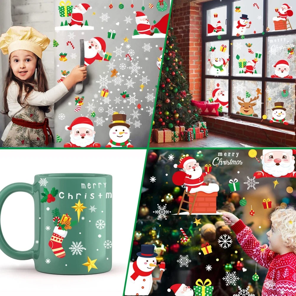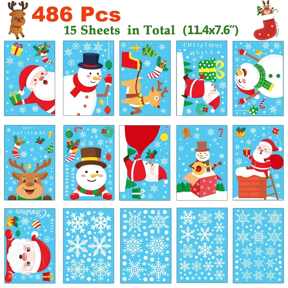 ❅❄☃ 486 PCS 15 Sheets Christmas Window Clings Decals Christmas Window Decorations Snowflake Deer Santa Claus Christmas Stickers for Office School Home Decorations. 1. No adhesive Christmas window decals stickers. 2. Double sides seeing Christmas window clings. 3. Removable Christmas snowflake clings & reusable. ❅❄☃ Features of Christmas window clings: 1. Material: Premium PVC, 100% safe & non-toxic. 2. Size of Christmas Elements: Santa Claus 7.5 " x 7.3 ", snowman 7.1 " x 8.3 ", Deer 6.9 " x 7.1 " for reference. 3. Package include: 486 PCS 15 Sheets, per Sheet is 11.4 x 7.6 inches ❅❄☃ USEFUL TIPS: 1. Make sure the surface is smooth and without any texture. 2. Clean the surface: no dust and grease on the surface. 3. Stick well: Spray a little water on the surface. 4. Put the clings on and remove the remaining water. 5. Christmas clings stickers will stick well. ❅❄☃ These Christmas window decorations are perfect for Christmas party decorations, winter wonderland party and Christmas indoor decorations that you can buy it or send this beautiful Christmas gifts to your friends and families. Great Value Christmas Window Clings: 15 sheets Christmas window decals, 486pcs in total great assortment, super value. These Christmas window clings come with adorable Christmas elements, snowflake, Santa Claus, snowman, deer, Christmas tree, gift box, stockings, bell and so on, create winter wonderland atmosphere. Attractive Christmas Decorations: Colorful cute designed Xmas stickers are double sides seeing, look really stunning. These Christmas window stickers are specially a great addition to any theme Christmas party decorations, Christmas window decorations, winter party supplies, Christmas window snowflake décor, Xmas party supplies, home decor & holiday indoor decorations. Perfect Christmas Gift Ideas: Xmas window cling decals are made of static PVC, eco-friendly and reusable. Suitable for Thanksgiving Day gifts, Christmas gifts for your friends & families at home, office, store and coffee shop. Add so much fun to festive Christmas. Wide Applications: High Quality Printed Christmas window clings decorations can be used to decorate windows, fridge doors, mugs, mirrors and glass doors or any other smooth surface. Buy our window snowflake cling decals now, You will get lots of compliments. Super Easy to Stick & Remove: No adhesive for Christmas window clings, stick all by themselves. Just clean the surface and stick the window stickers. Easily peel it off without leaving a trace & damaging the glass or the snowflake clings.