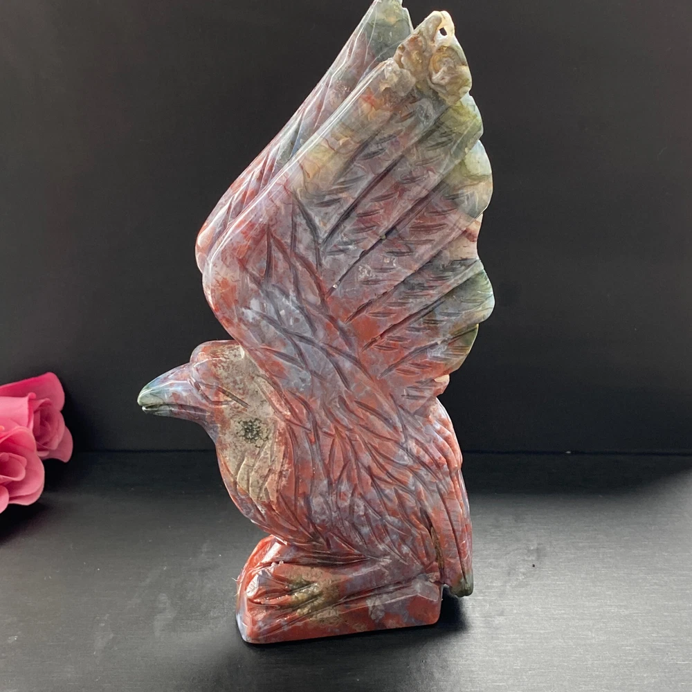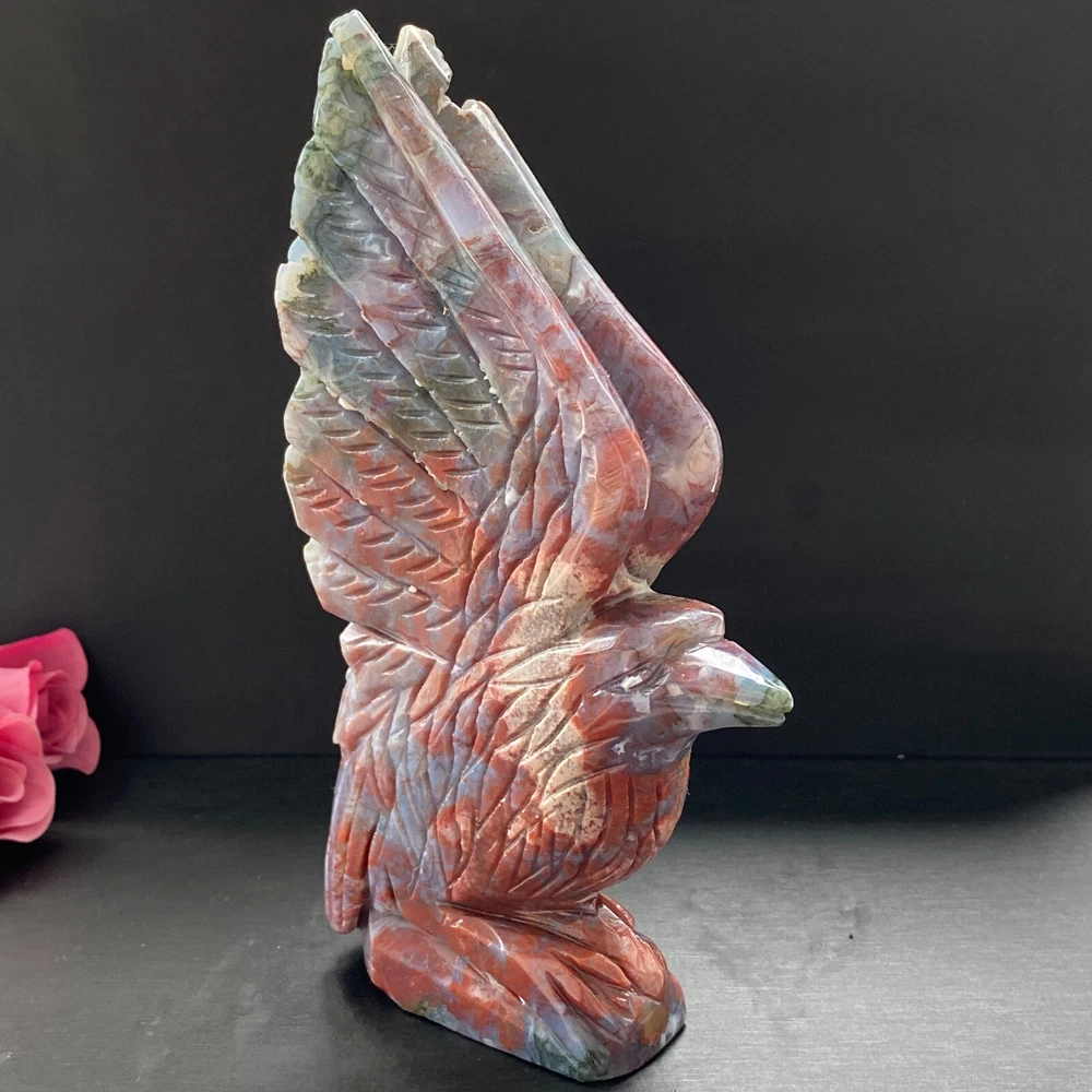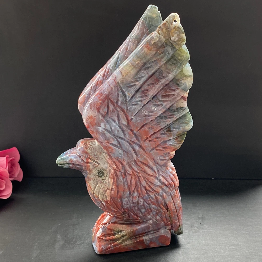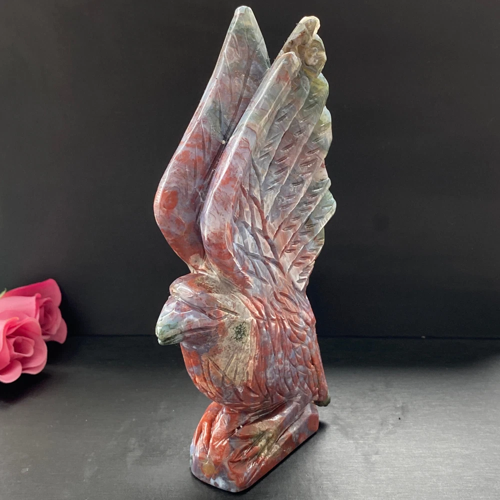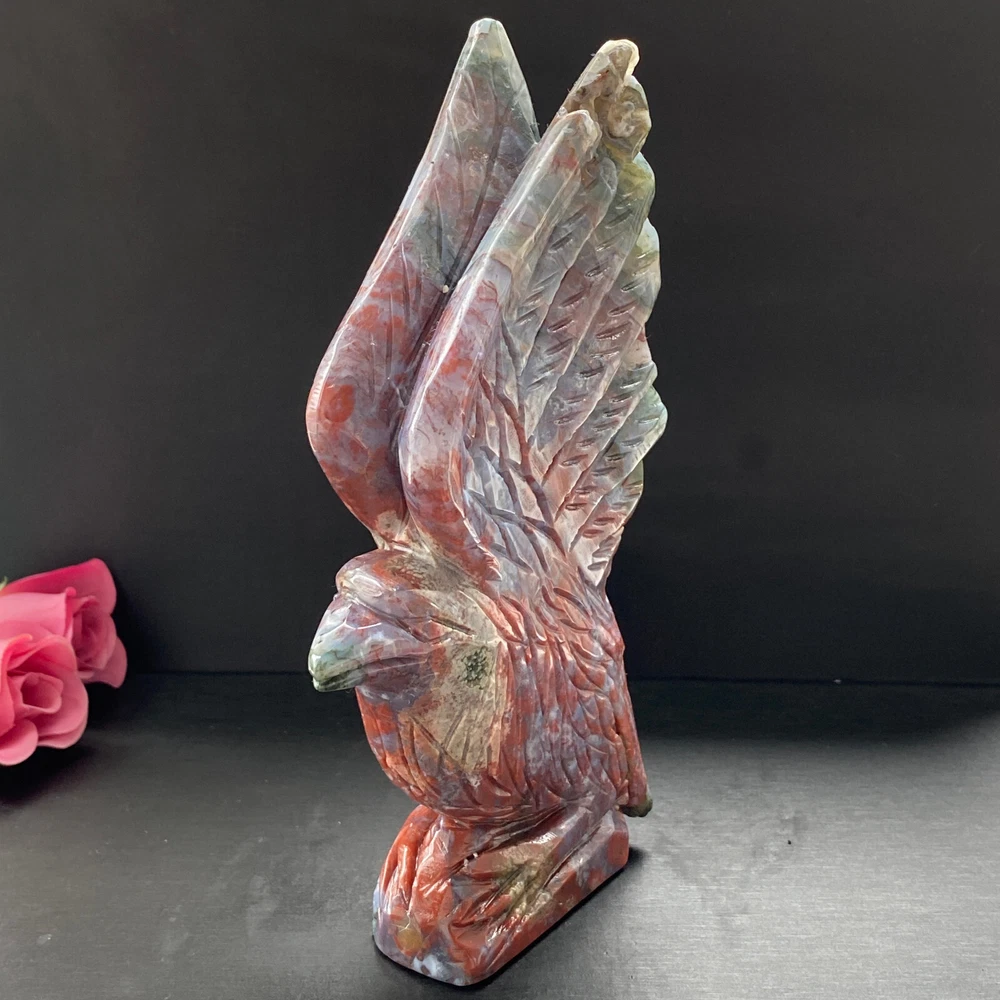 488g Natural ocean jasper hand carved eagle quartz crystal decoration healing