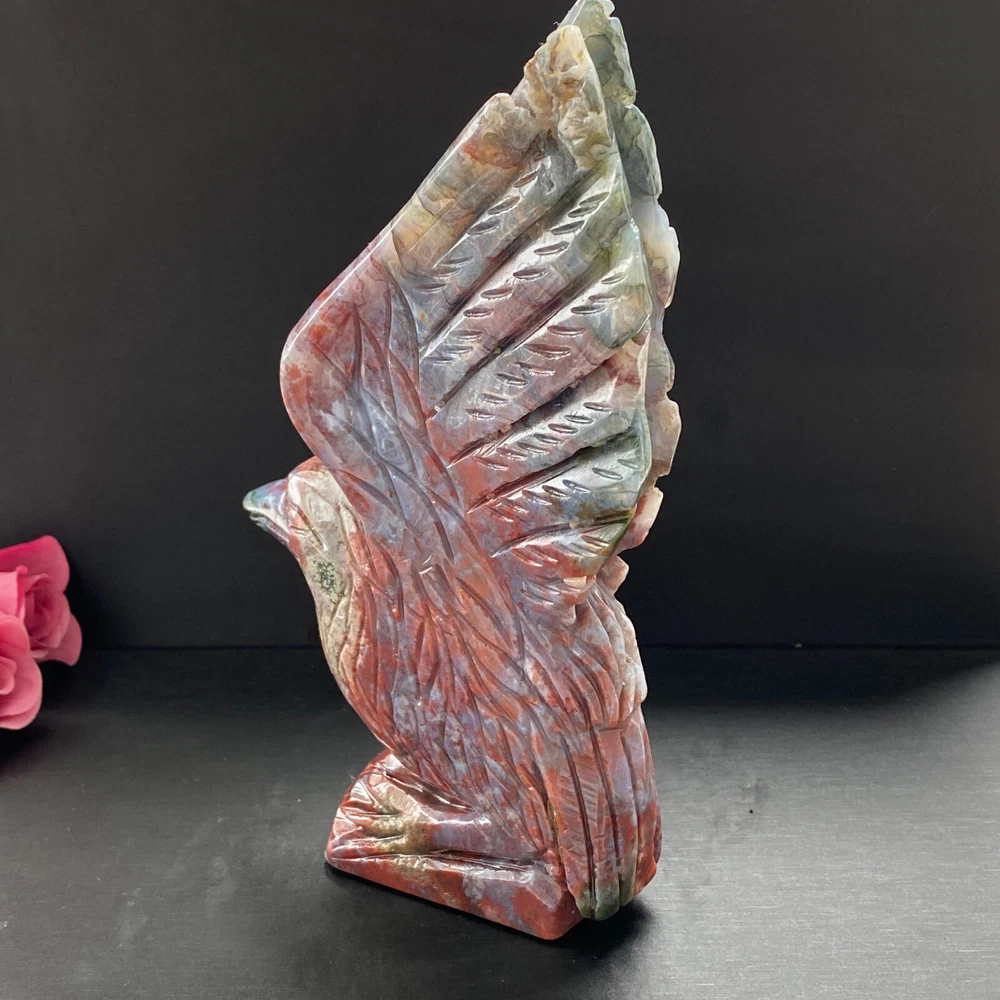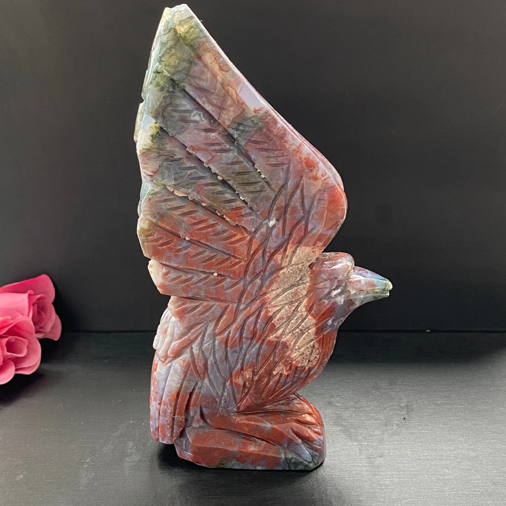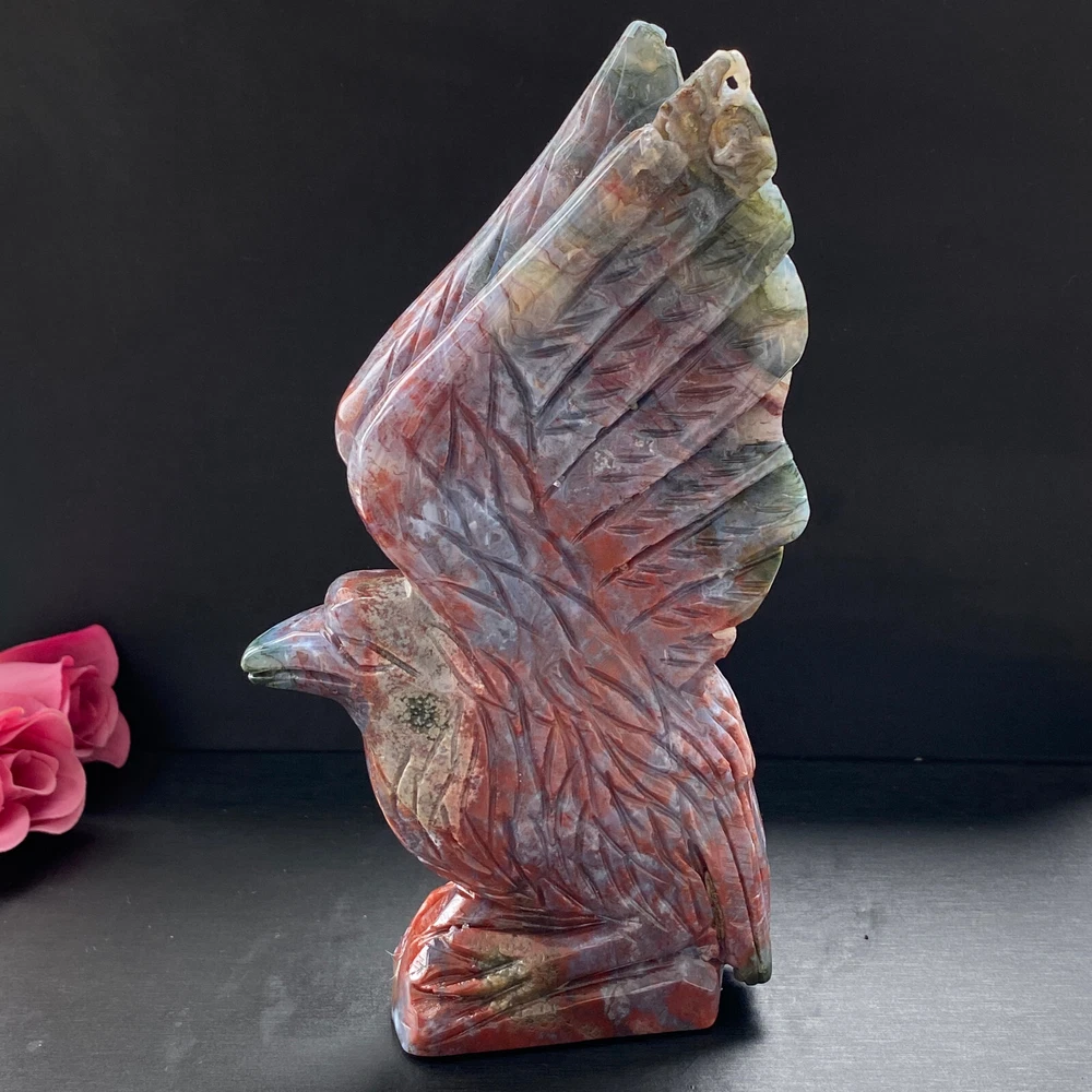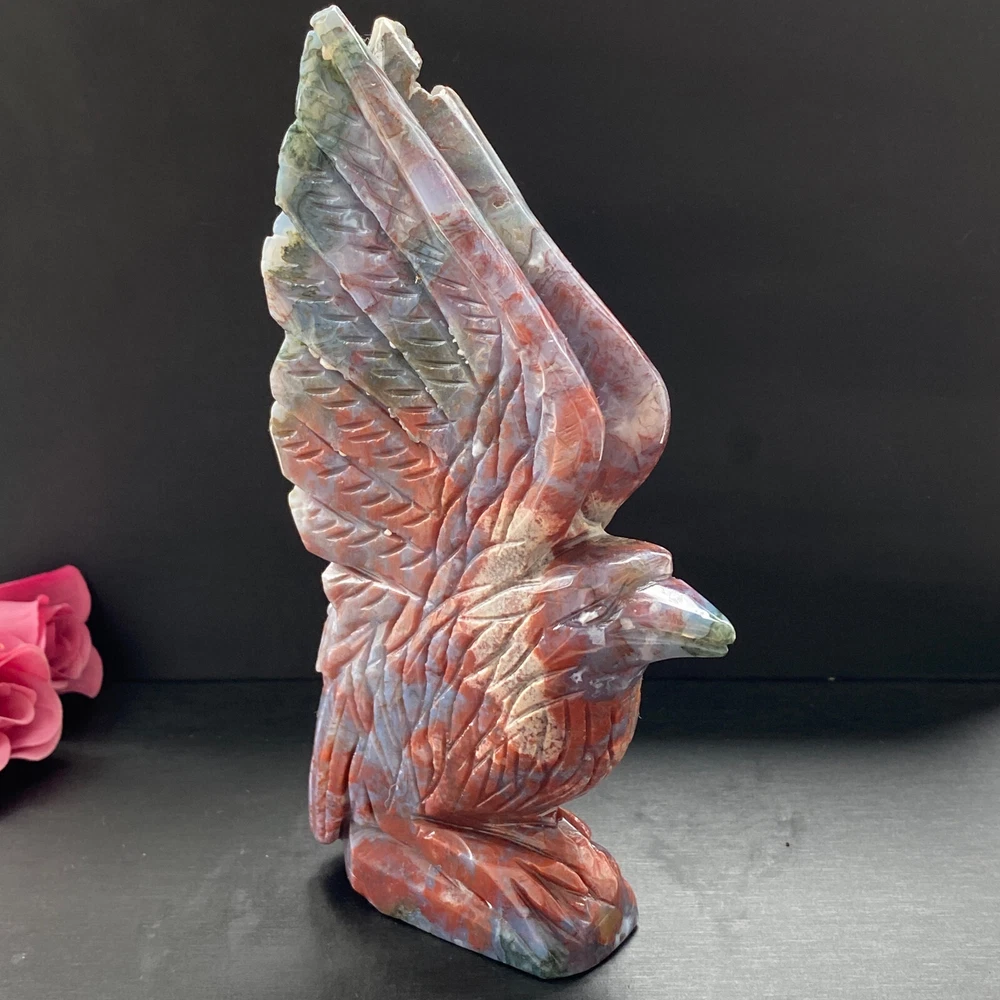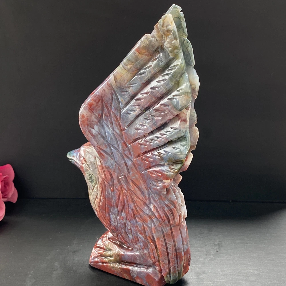 488g Natural ocean jasper hand carved eagle quartz crystal decoration healing