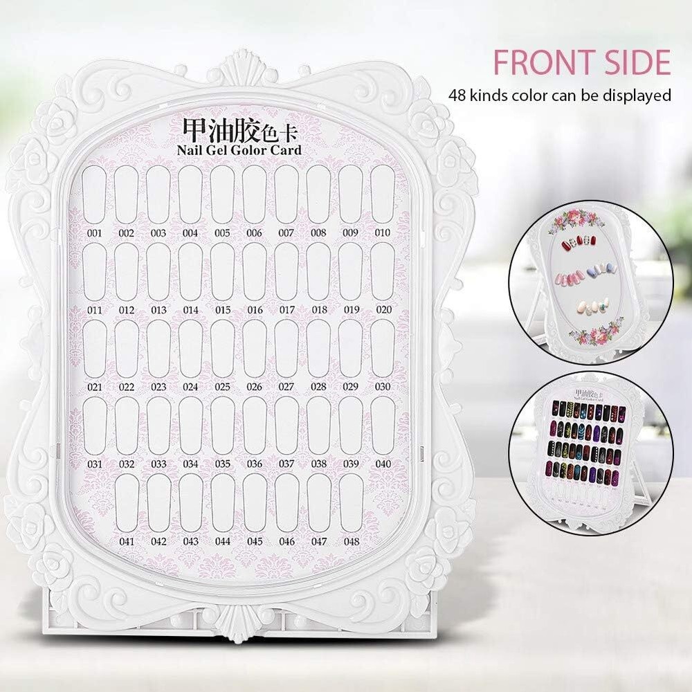 Nail Art Display Stand Flower Design 48 Colors Nail Polish Gel Card Nail Practice Manicure Tool, Nail Art Tips Chart Display Rack Polish Palette Stand Showing DIY