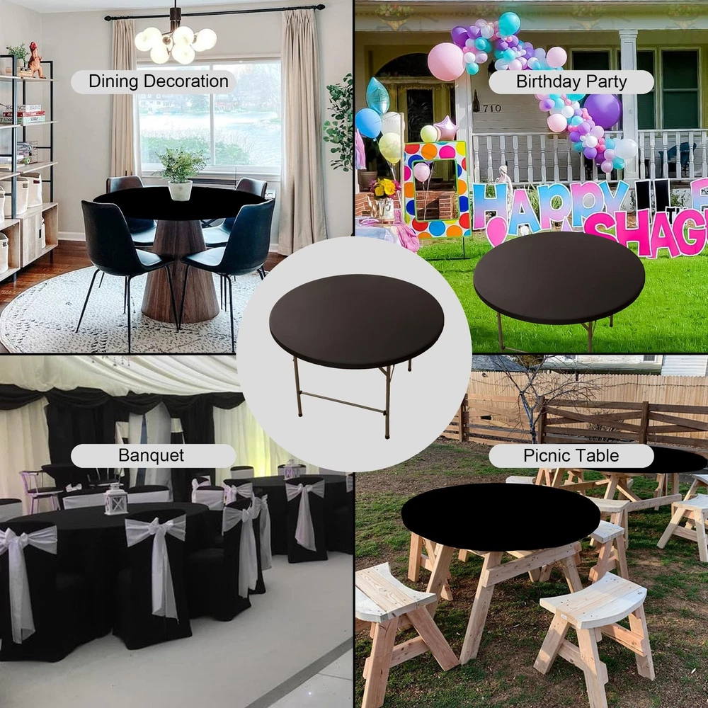 About Thank you for visiting our store! We are a professional provider of indoor or outdoor decoration solutions. We are committed to providing customers with a wide range of high-end and exquisite fabric products. Your support is our greatest motivation for excellence! About This Production Three reasons for you to choose our products I. Our tablecloth features an elastic fit design, ensuring a snug and secure fit on your table without the need for fiddly clips. The elasticized edges allow for easy and hassle-free installation, saving you time and effort. With this innovative design, you can achieve a seamless and polished look for your table setup in no time. Say goodbye to the frustration of dealing with clips and enjoy the convenience of our elastic fit tablecloth. II. Our fitted tablecloth is designed to stay flat and secure, even in strong gusts of wind. The snug fit and elasticized edges ensure that the cover stays in place, providing a smooth and seamless appearance. With this innovative design, you can enjoy a worry-free outdoor event without the need to constantly adjust your tablecloth. Whether you're hosting a backyard barbecue or an outdoor wedding, our fitted cover will provide a reliable and polished solution for your table decor needs. III. Spandex fabric is not only high-quality but also machine washable. This makes it incredibly convenient and easy to clean. Simply toss it in the washing machine, and it will come out looking fresh and ready to use again. With our spandex tablecloth, you can enjoy the benefits of both durability and easy maintenance, ensuring a long-lasting and hassle-free solution for your table decor. Attention! Do not choose a tablecloth that is much smaller or larger in size than the table! Do not blech! SUITABLE SIZE: These 4 ft table cloths are designed to perfectly fit tables with diameters ranging from 38 to 50 inches. With these measurements, you can ensure a nice look for your table setup. Whether you're hosting a small gathering or a formal event, our tablecloths provide an ideal fit, adding a touch of elegance to any occasion ABUNDANT COLORS: Our table covers come in a wide range of vibrant solid colors, allowing you to find the perfect match for your decor. Whether you prefer classic neutrals like white or black, or want to add a pop of color with shades like red, blue, or green, we have the options to suit your style. With our diverse selection, you can effortlessly elevate the visual appeal of your table settings and create a captivating atmosphere for any occasion PREMIUM MATERIALS: Our tablecloth is crafted from premium spandex fabric, which offers exceptional elasticity to fit a variety of table sizes. The high-quality material is designed to stretch and conform to your table's shape, ensuring a sleek and seamless appearance. Additionally, the fabric is thick enough to conceal any imperfections on your table's surface, providing a flawless backdrop for your decor EASY TO USE & CLEAN: The high-quality spandex fabric is resistant to stains and wrinkles, making it effortless to clean and maintain. Additionally, the fabric is designed to be easy to put on a tabletop, saving you time and effort during setup. With our tablecloth, you can enjoy a hassle-free and convenient solution for your table decor needs ATTENTION: Please confirm the color and size of your purchase before payment. Please understand that there may be some deviations in color. Please refer to the reference chart provided for dimensions. Thank you for supporting