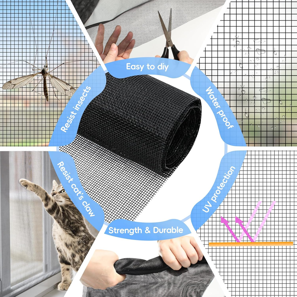 Window Screen:Experience years of reliable performance with our fiberglass window screen. Designed to withstand washing and sun exposure, its Radial strength is above 320N/Inch, weight above 110g/m2. Wide use: It's perfect for various kinds of screen doors, screen windows, sliding door screen and courtyards. Easily removes the old screen and broken mesh that scratched by pats. Advantage:Clear view from the inside of house, smoothly fresh air circulation. The screen mesh provides 75% UV protection. Long service time:This kind of screen mesh can be washed and exposed to the sun—the service life of this fiberglass screen at least five years. Good Choice after comparison: Choose our window screen mesh for superior quality compared to standard options found in supermarkets. While the mesh may arrive folded in the package, any creases will naturally disappear over time after complete installation. 48"x102" Windows Screen Mesh,Fiberglass Window Screen Mesh, Screen Door Mesh, Windows Screens and Screen Door Replacement, Patio Screen Mesh