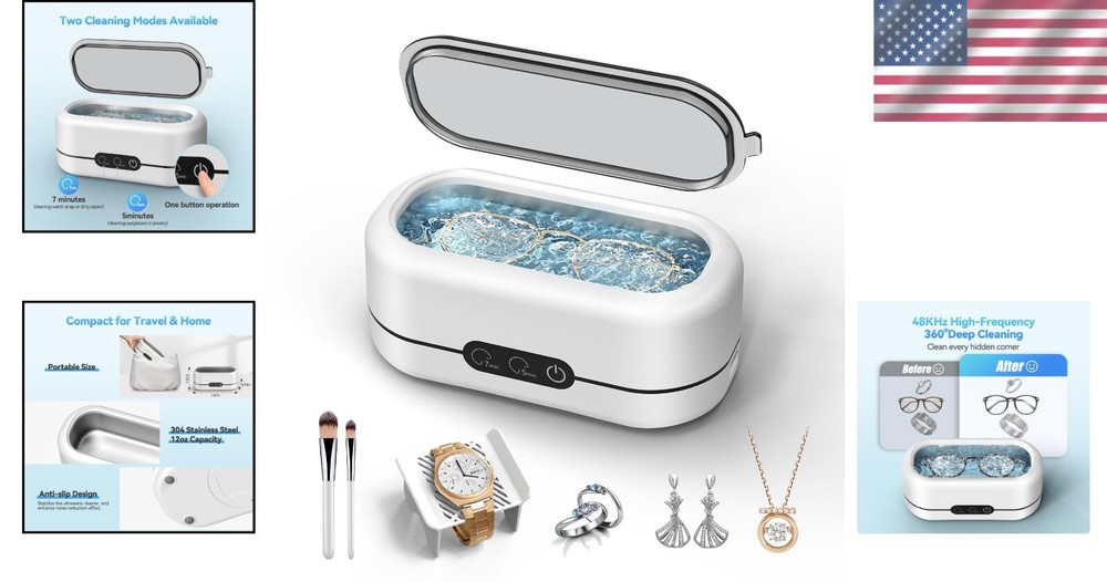 Elevate Shine: 48KHz Ultrasonic Jewelry Cleaner for Rings, Eyeglasses & More ‹ › ‹ › ‹ › ‹ › ‹ › ‹ › ‹ › Elevate Shine: 48KHz Ultrasonic Jewelry Cleaner Your new go-to solution for sparkling, pristine jewelry and eyewear. Professional Ultrasonic Jewelry Cleaner Effortlessly cleans your cherished items in minutes, requiring only tap water for regular maintenance. For optimal results, consider adding an ultrasonic cleaning agent, particularly for tarnished items. Multifunctional Cleaning Utilizes cutting-edge 48,000Hz high-frequency sound waves to restore brilliance to rings, eyeglasses, watches, dentures, coins, and more. Gentle yet effective, it won't damage delicate components, ensuring your prized possessions remain in perfect condition. Convenient Operation Equipped with two cleaning modes: a 5-minute cycle for light cleaning and a 7-minute cycle for tougher grime. Designed with four non-slip rubber pads to stabilize the unit and minimize noise, promoting a calming cleaning experience. Capacity & Portability Featuring a spacious 12oz SUS 304 stainless steel tank, it's both corrosion-resistant and perfectly sized for most eyeglasses and jewelry types. Compact and lightweight design allows for easy transport and storage, making it ideal for home or travel use. What’s Included 1 ultrasonic jewelry cleaning machine 1 watch stand for added convenience 1 user manual for easy guidance Peace of Mind Enjoy a 12- and a 100% satisfaction guarantee with your purchase. Our dedicated customer service is here to assist with any questions or concerns regarding performance and usage. Why Choose Elevate Shine? Transform the way you care for your precious treasures with the Elevate Shine Ultrasonic Jewelry Cleaner. Experience unparalleled cleaning speed, multifunctionality, and ease of use, all designed to preserve the luster and beauty of your favorite items. Secure your sparkling treasures today with Elevate Shine! Shipping Free & Fast Shipping - We offer free shipping to most of the USA with a normal delivery time of 3-7 days. However, due to the current situation, additional delivery time (up to 3 weeks) may be required for some items. Alternative Carriers - We may use alternative carriers (e.g. USPS, FedEx, UPS, etc.) to ensure your package arrives safely and on time. Due to the use of multiple carriers, we are unable to provide a tracking number automatically. Handling Time - Orders are processed and shipped within 1-2 business days of receiving cleared payment. Shipping Restrictions - Shipping to Alaska, Hawaii, Puerto Rico, Guam, and other US territories may incur shipping charges or delivery restrictions. Please contact us before ordering, or your order can be refunded/cancelled. State Restrictions - There may be restrictions based on your state of purchase. For example, certain items may not be shipped to California due to state regulations. Contact for Tracking Updates - If you require tracking updates or have any concerns about the delivery of your order, please feel free to contact us, and we will be happy to assist you. Return 30-Day Hassle-Free Returns - We want you to be completely satisfied with your purchase. If you are not, you can return the item within 30 days of receiving it for a full refund or exchange. Easy Return Process - To start a return, simply contact us and we will provide you with a prepaid return shipping label and detailed instructions. Restocking Fee - There are no restocking fees for returns. However, the buyer is responsible for return shipping costs if the return is not due to a seller's error. Refund Processing Time - Refunds will be processed within 5 business days of receiving the returned item in its condition. Payment We accept all major credit cards, PayPal, and Apple Pay for your convenience. Your payment information is secure and encrypted to ensure a safe and seamless transaction. Please complete your payment within 3 days of purchase to avoid any delays in shipping. Feedback Your feedback is extremely important to us. We strive to provide the best products and customer service possible. If you are satisfied with your purchase, please take a moment to leave us a positive review. If you have any concerns or issues with your order, please contact us before leaving negative feedback. We are committed to resolving any problems and ensuring your satisfaction. Contact Us If you have any questions or concerns, please feel free to out to our customer support team. You can contact us through the eBay messaging system. We are available Monday to Friday, 9:00 am to 5:00 pm EST, and we will do our best to respond to your inquiry within 24 hours. Buy it now and enjoy a pleasant shopping experience! Unit Quantity: 1 Set Includes: Cleaner,Watch Stand,User Manual Suitable For: Jewelry,Eyeglasses,Rings,Watch Straps,Dentures,Coins Features: Dual Cleaning Modes,Uses tap water,Non-slip rubber pads,Corrosion resistant,Automatic shut-off,User-friendly operation Type: Ultrasonic Cleaner Form: Liquid Volume: 12 fl oz Unit Type: oz
