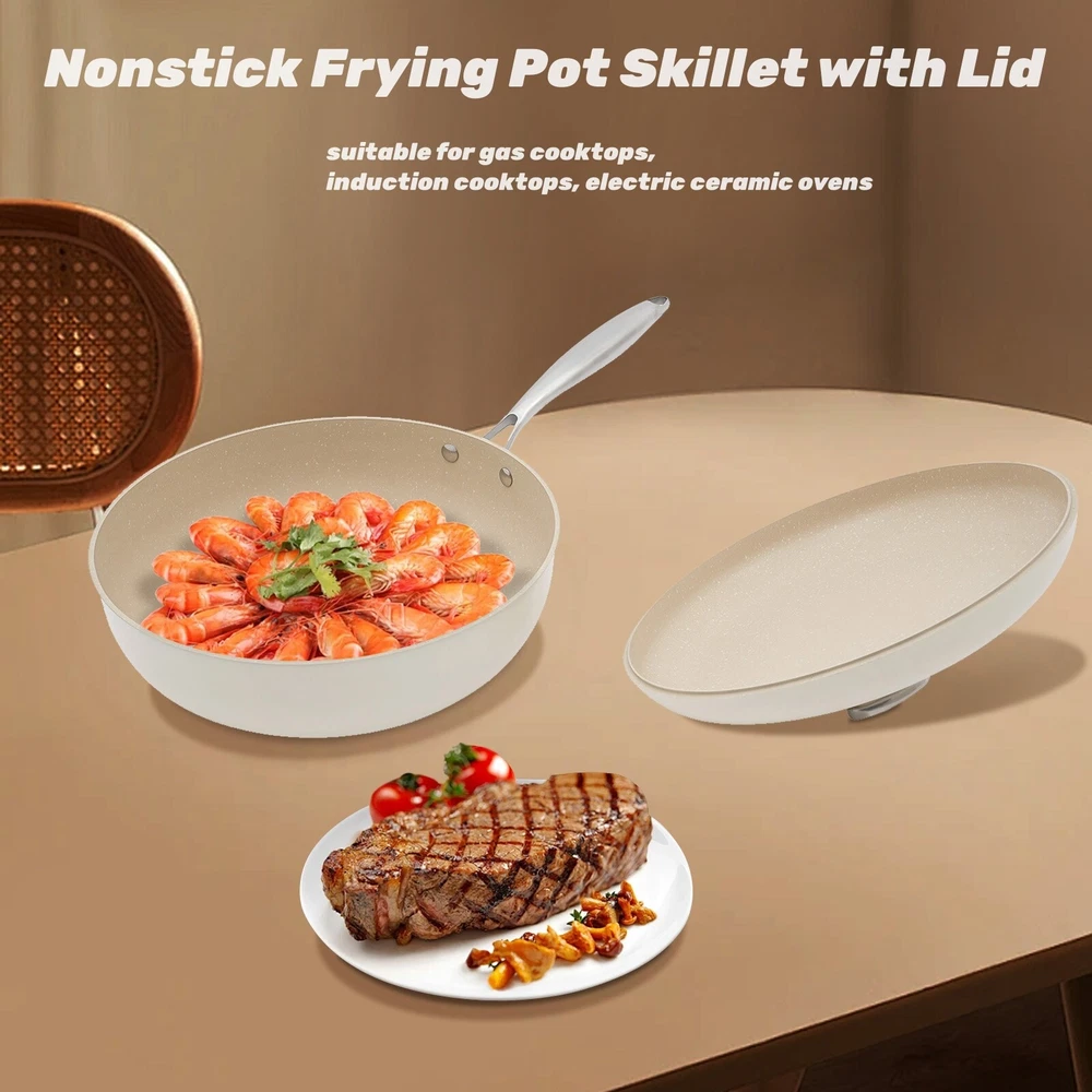 4.8L Nonstick Frying Pot Skillet With Lid Healthy Chef Pot Efficient Cooking