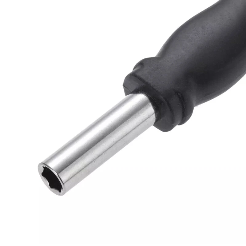 Product D escription 4/8 PCS 1/4" M agnetic S crewdriver H ead D rive H andle T ools F or H ex Torx S lotted D rill B its Product Characteristics High Q uality I ndustrial G rade M aterials: This set of screwdriver bit drive handle tool is made of high-quality S2 alloy steel, and the connecting rod has been subjected to special heat treatment process for high hardness and durability. Magnetic: The magnetic screwdriver bit drive handle tool can quickly and easily adsorb the screwdriver head, greatly improving your work efficiency. Repeated use does not diminish the magnetic force. A W ide R ange O f U se S cenarios: Can be widely used in electrical, automotive, pipeline, home maintenance and so on. Easy T o C arry: This screwdriver head drive handle is small and easy to carry. Product Specification Status: 100% Brand New Material: S2 A lloy S teel Color: Black + S ilver Connected D rill S hank T ype: H ex S hank Connected D rill D iameter: 6.35mm/ 1/4" Total L ength: 113mm Package Included 4/8pcs × Screwdriver H andle Attention P lease 1. Please allow manual measurement error of 1-5mm. Make sure you don't mind before you buy. 2. Due to lighting effects, brightness contrast Settings of the display, etc., there may be some slight differences in the hue of the picture and the actual item, please make sure you don't mind.