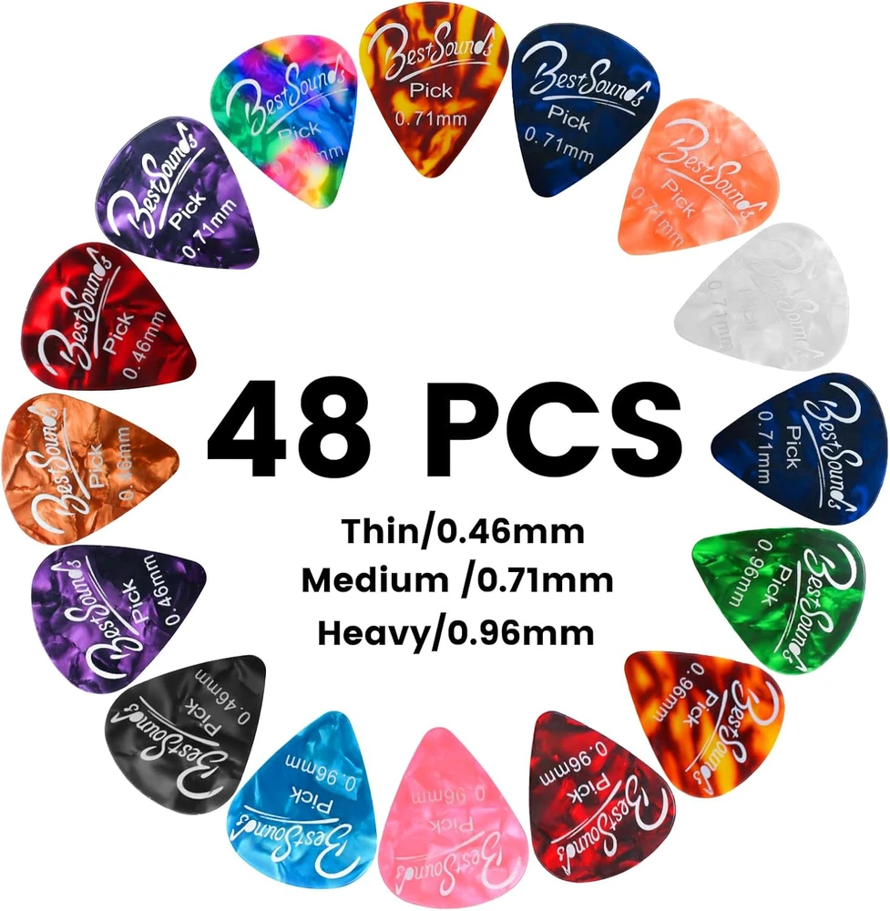 48PCS Guitar Picks, [Thin/Medium/Heavy] Variety Pack Celluloid Pearl Guitar Pick
