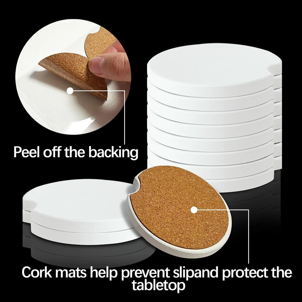 48PCS Sublimation Blanks Car Coasters, Blank Coasters for Sublimation Ceramic Cupholder Circular Opening for Heat Transfer DIY Crafts Car Accessories Interior Personalized Christmas Decor Product Details Number of Items: 48 Brand: VPJ MPN: cc UPC: Does not apply EAN: Does not apply Color: White Material: Ceramic Brand: VPJ Shape: Round Product Care Instructions: Hand Wash Only Color: White Material: Ceramic Brand: VPJ Shape: Round Product Care Instructions: Hand Wash Only Is Dishwasher Safe: No Product Dimensions: 2.6"L x 2.6"W Manufacturer: VPJ Number of Items: 48 Item Weight: 4.22 pounds Country of Origin: China Item model number: cc Date First Available: March 6, 2024 Christmas Car Decorations -- You will receive 48 pieces of car coasters sublimation blanks and matching cork pad. The ceramic car coasters measure approximately 6.6x6.6cm/2.6"x2.6" (L x W), 6mm/0.24" thick. Sublimation Blanks Bulk -- The coasters for car are made of high-quality ceramic raw embryos with uniform shapes. The sublimation coasters can withstand the temperature of the transfer machine from 356 f/ 180 C to 428 f/ 220C for about 25 seconds to 60 seconds. Personalized Birthday Gifts -- You can design sublimation decorations, which are perfect as unique custom gifts for friends and family. You can design many personalized patterns to give to your family and friends according to your hobbies. DIY Car Decorations -- The sublimation coasters blanks is suitable for many occasions,can be used in car,office,kitchen,bedroom,living room,cafes,hotels,etc,to hold coffee tea cups,glasses,bottles. Unique Gifts for Women -- The sublimation coasters blanks ceramic can custom ceramic coasters gifts or wedding gifts for your family, friends, neighbors, church members and grandparents. In addition, the sublimation ceramic blanks can print office slogans, greetings, brand logos and other content you want, and are widely used in shops, offices, hotels, restaurants, bars and other places.