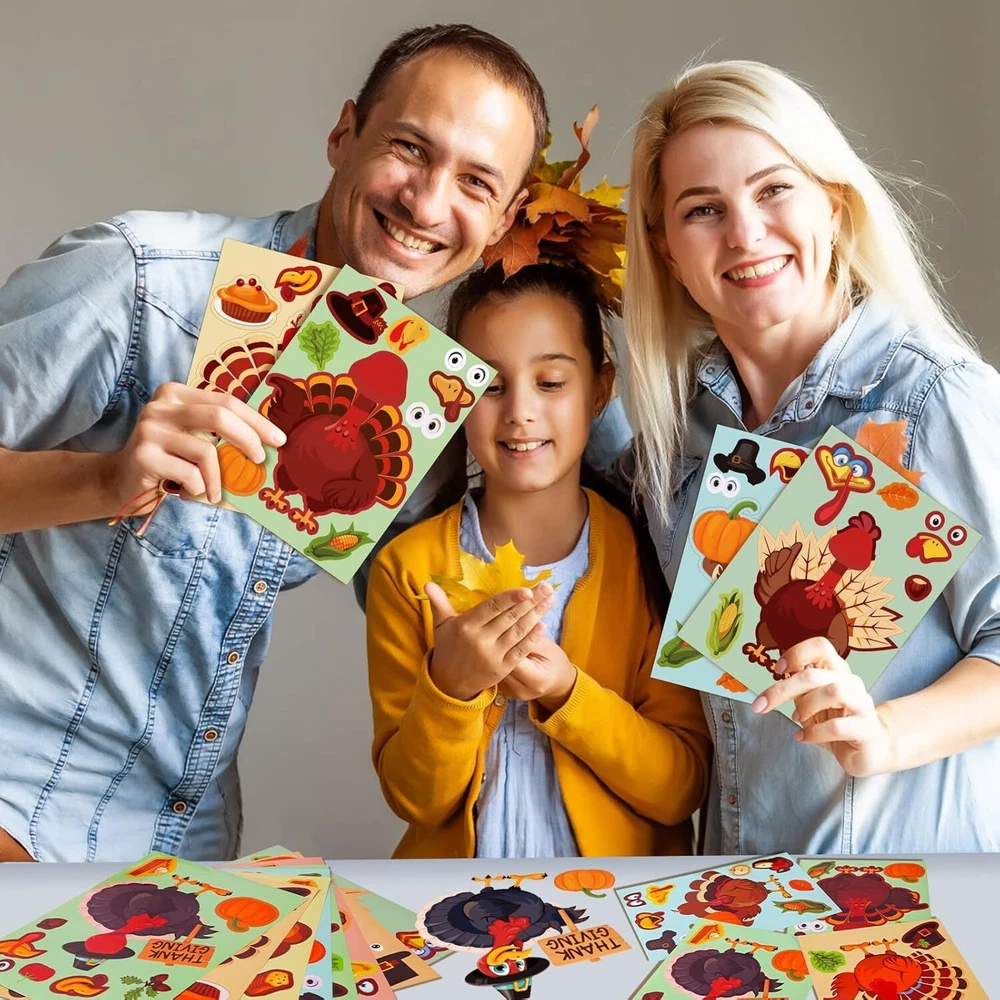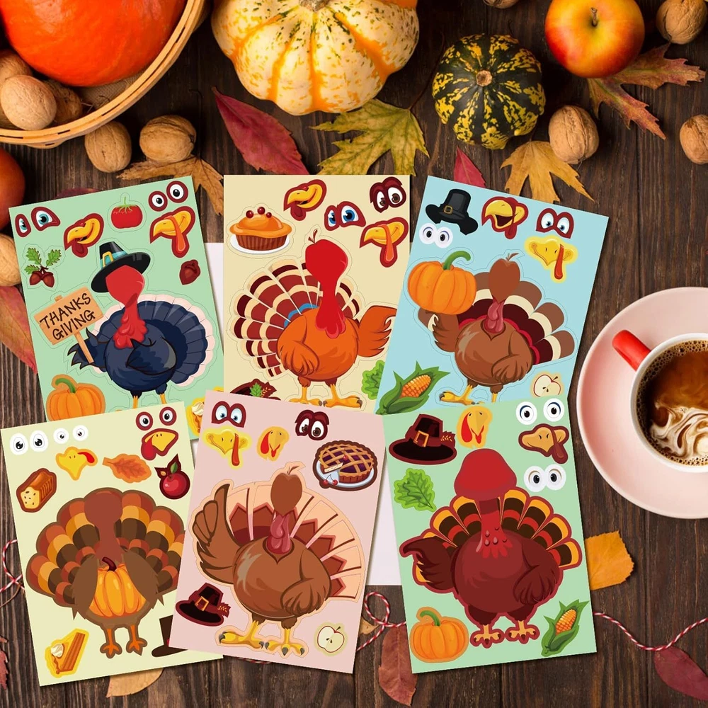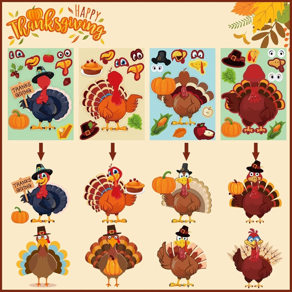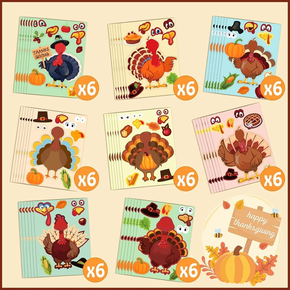 48Pcs Thanksgiving Stickers Make-A-Turkey Thanksgiving, Multicolor