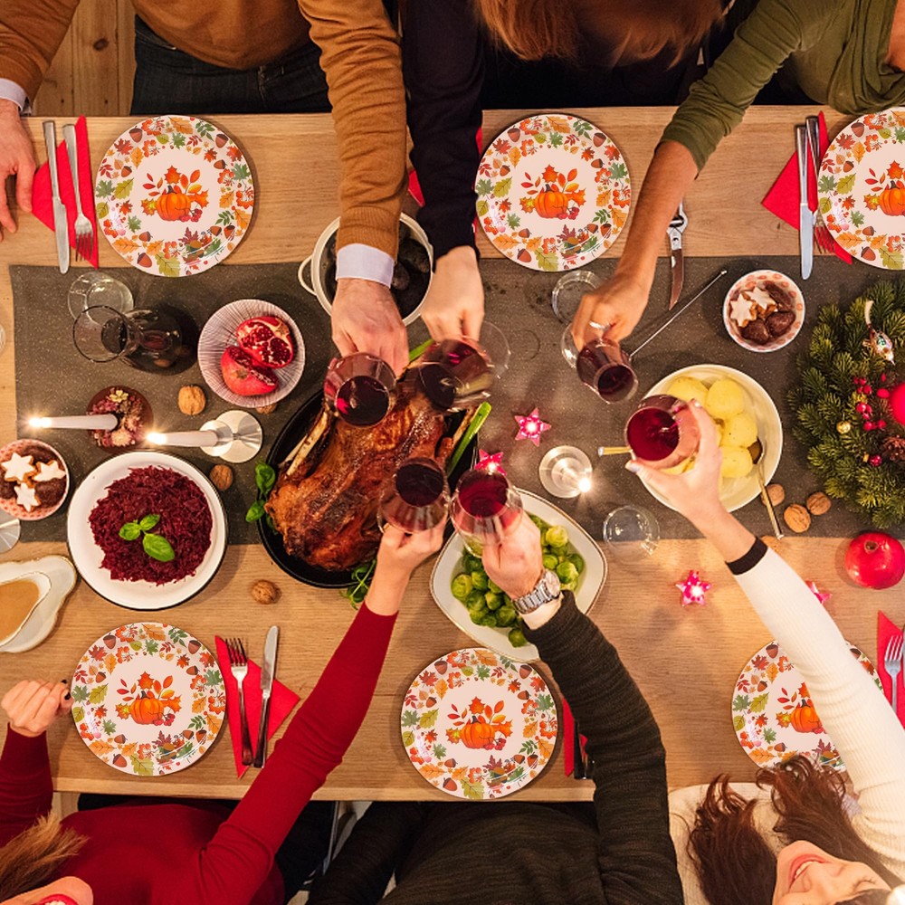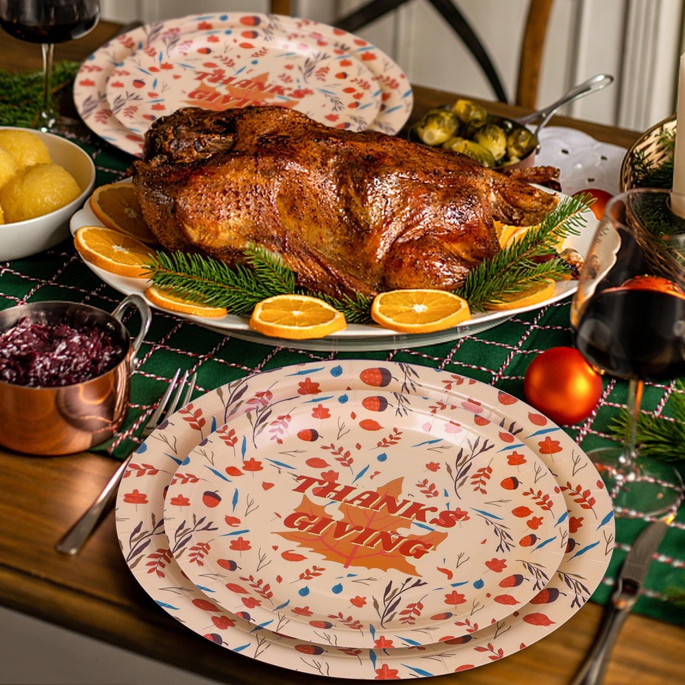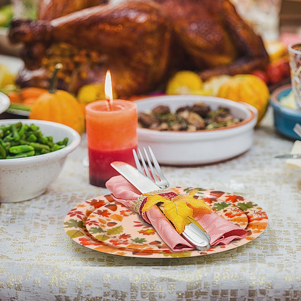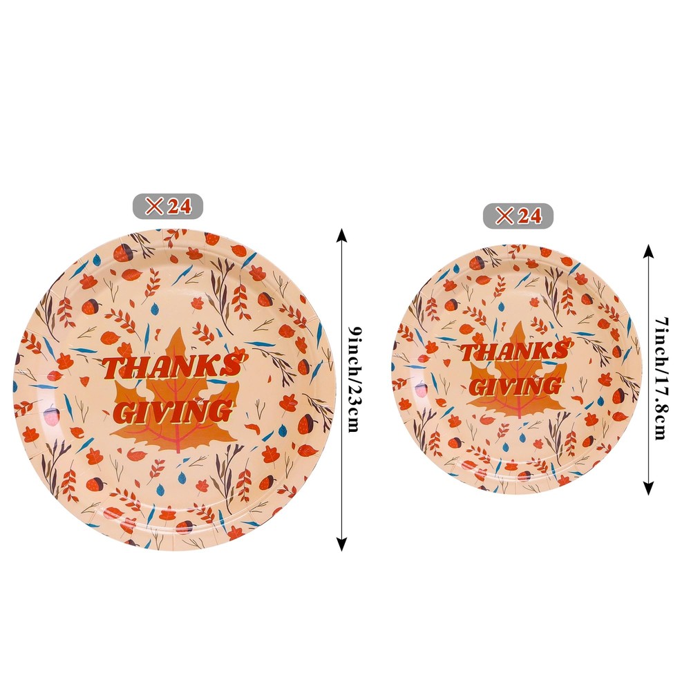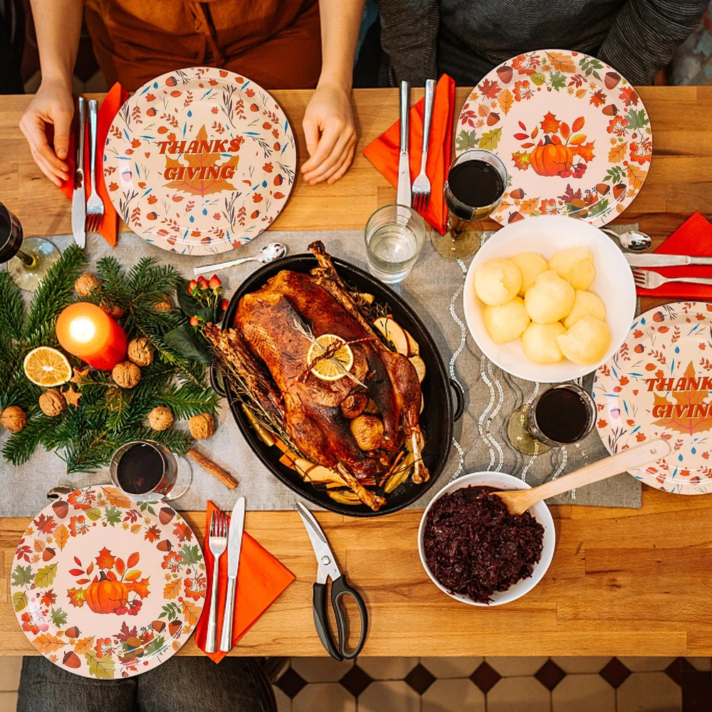 48-Piece Thanksgiving Paper Plates with Pumpkin & Fall Maple Leaves Design for Autumn Gatherings and Festive Celebrations