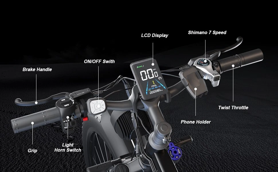 Number of Speeds: Shimano 7 Speed Model Year: 2024 MPN: F1 2000w Package Size: 58.3"*11.4"*30.3" (148*29*77CM) Throttle: Twist Throttle Frame Size: Large 4 Modes: Pure Electric, Pedal-assist (5 Levels), Cruise Mode, Normal Bike Package Weight: 93 lbs (42 kg) Bike Type: E-Mountain Bike Shifter Style: Thumb Shifter Manufacturer Warranty: 1 Year Gear Change Mechanism: Derailleur Gears Suspension Type: Front Department: Unisex Adults Features: Adjustable Seat, Display, Fenders, Front Light, Kickstand, Lithium Ion Battery, Pedal Assist, Rear Bike Rack, Rear Light Maximum Speed: 35 mph Maximum Range: 40-60 miles (65-95km) in PAS Mode Display: Multifunctional Big Screen LCD Display Motor Type: Dual Motors Voltage: 48 V Country/Region of Manufacture: China Tire Type: Fat Tires 26" * 4.0" Wheel Size: 26 in Battery: 48V 22.4AH Lithium-ion Battery Item Weight: 73 lbs (33 kg) Handlebar Type: Cruiser Bar Fork: Suspension Fork Frame: 6061 Aluminum Alloy Material: Aluminum Alloy Brake Type: Disc Brake - Hydraulic Model: F1 2000w Max Load: 330 lbs (150 kg) Brand: Bluvall Bike Size: 76.0"*28.7"*44.1" (193*73*112CM) Charging Time: 5-8 HOURS Motor Power: 2000W