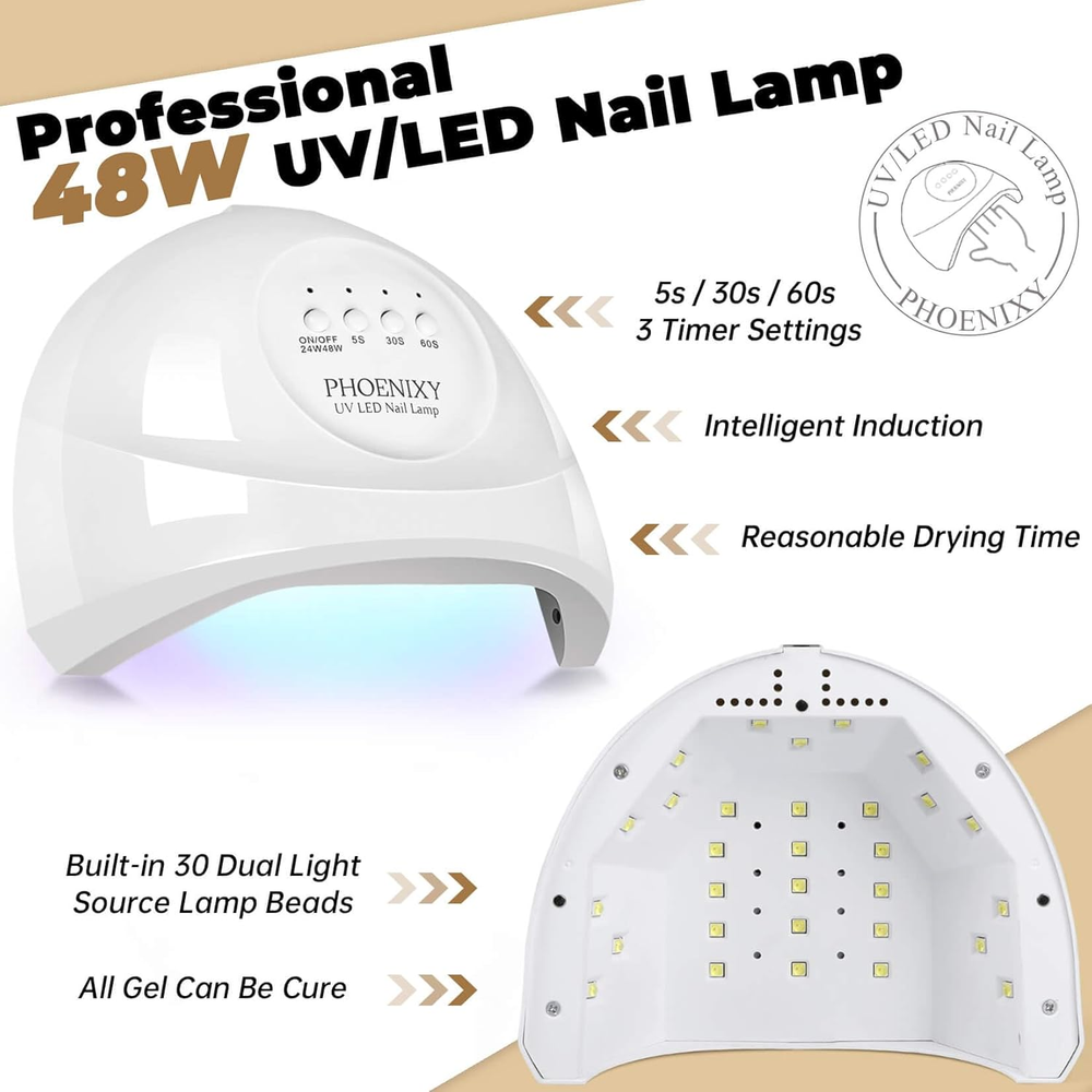 Store New Arrivals Add to Favorite View Feedback Contact Fast deliveries to the customer's home Quality customer service John Make the customers happy! Gel Nail Polish Kit with U V Light 48W, 56 Pcs 108 Effect Gel Nail Kit Base Glitter Top Coat Gel Nail Polish Set Manicure Tools Gifts for Women Description Gel Nail Kit with Everything: The gel polish set includes 48W U V nail lamp, 36*7ml colors gel nail polish, 1*7ml base coat, 1*7ml glossy top coat, 1*7ml matte top coat, 1*7ml glitter top coat and basic manicure tools, nail art decorations. This nail polish kit is easy to use, yet delivers amazing nail art results, making it perfect for both beginners and professionals alike 2 Faster U V Nail Light: The U V LED 48W nail lamp comes with 30 lamp beads, 3 curing modes: 5 s/ 30 s/ 60 s, which can quickly cure all kinds of gel and save most of the time for nail art. Intelligent U V nail lamp: hand in, light on; hand out light off Enjoy 3 Kinds of Effect: Matte finish with the matte top coat. Glossy finish with the glossy top coat. Glitter finish with the glitter top coat. Well-selected 7 ml 36 colors gel nail polish and you can get 108 effects Health Ingredients: PHOENIXY gel nail polish is made of natural resin, health substance and professional formula. Silky texture and easy to apply. It is very friendly to novices and professional manicurists. Please use them with confidence Idea Gifts For Women: The gel nail kit can be matched with many outfits for all occasions. Suitable for holidays or special festivals, a great gift for Valentine's Day, Mother's Day, Halloween, Thanksgiving, Christmas, Birthday, Anniversaries, or New Year Product Description Color SET-O5 Material Natural Resin Country of Origin China Finish Type Glossy Package Dimensions 8.31 x 7.24 x 5.98 inches; 2.01 Pounds Included Components Top Coat, Gel Nail, Nail Lamp ABOUT US We offer the best prices around on high quality products. Our E-store includes media such as books, movies, music and games while offering electronics, toys, sporting apparel, clothing, tools, general home, garden items and more. SHIPPING We are always working hard to ensure your package arrives as soon as possible. Please understand that some factors like weather, high postal traffic, and the performance of shipping companies are outside of our control. We offer free shipping to the lower 48 states and ship within 2 business days of payment, usually sooner. We do not accept P.O. Boxes. Please provide a physical address. For shipping outside of the continental USA, we only use eBay's Global Shipping Program. The item is shipped to KY and then sent to the rest of the world. International customers are responsible for all duties and taxes. Continue to 'check out' to calculate costs for shipping the item to your country. Messages regarding eBay's Global Shipping Program MUST be directed at eBay EXCLUSIVELY. RETURNS We offer a 30-Day Return Policy on items in which you are not completely satisfied with. You have the option of a full-refund or an exchange of the item. No returns are available on items shipped outside of the USA PAYMENT We accept PayPal. CONTACT US This page content is yet to come Please ad us to your favorite seller and visit again later Thank You CUSTOMER SATISFACTION We try our very best to make sure every customer is completely satisfied. If there's a problem, message us! We're happy to help. WE ACCEPT