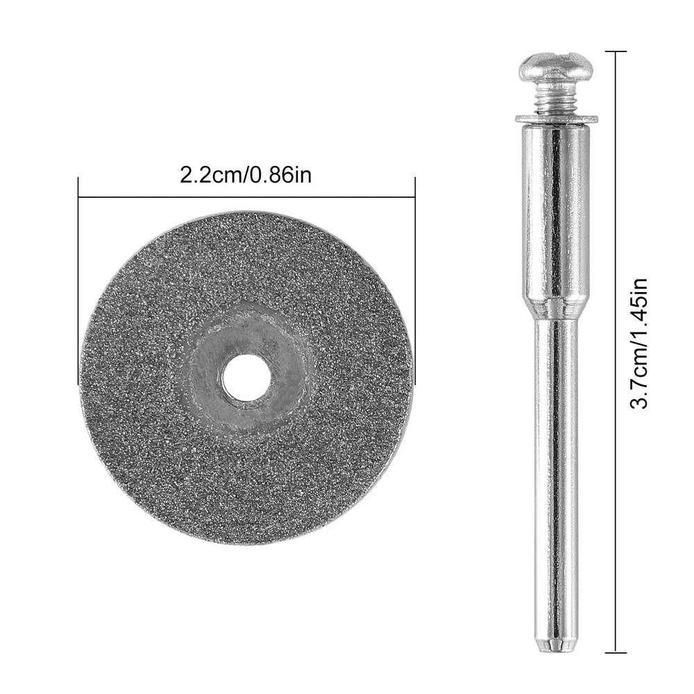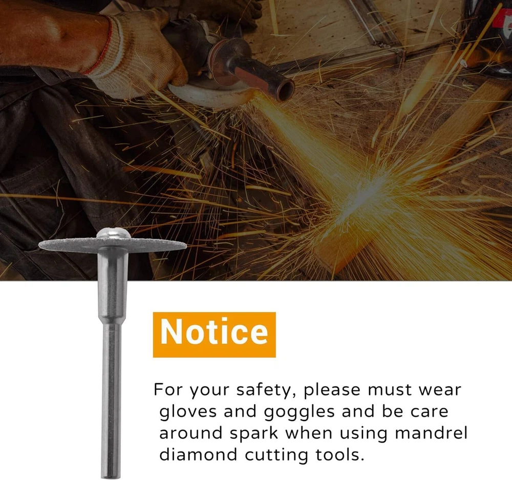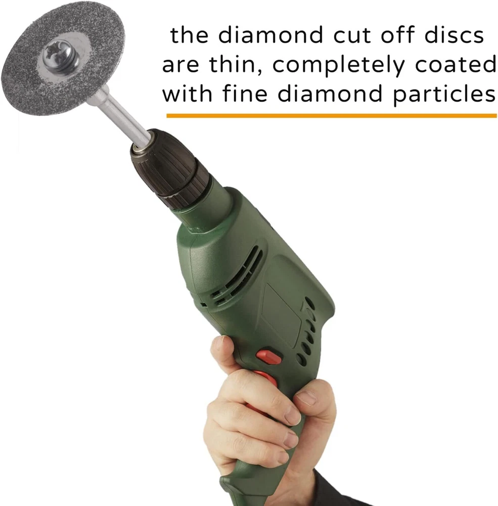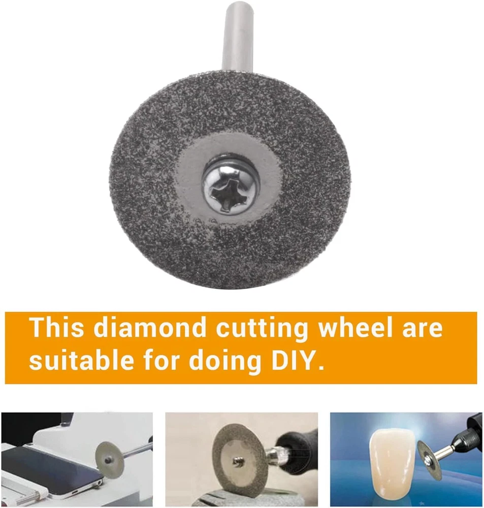 48x Diamond Cutting Wheels For Dremel Rotary Tool Die Grinder Metal Cut Off Disc Features: Durable: the diamond cut off discs are thin, completely coated with fine diamond particles, breathing holes for reducing heat and removing debris, great for making slots and slit Wide range of usage: This diamond cutting wheel are suitable for doing DIY, cutting, sawing, carving, sharpening and filing hard materials including all kinds of precious , jade, marble concrete, brick, porcelain, ceramics, epoxy and other hard woods, but not recommended for metal. Compatibility: the diamond cut off wheels are compatible with the majority of rotary and air tools, electric grinder Notice: For your safety, please must wear gloves and goggles and be care around spark when using mandrel diamond cutting tools. It may become very hot when cutting, so add some water to keep it cool. Specification: Type:Diamond cut off discs Geynutaly Disc diameter: 0.87 inch/ 22 mm Disc thickness: 0.02 inch/ 0.6mm Mandrel length: 1.50 inch/ 38 mm Mandrel diameter: 0.12 inch/ 3.0 mm colour:Silver Material:diamond Package Contents: 48 * Diamond cutting wheel 8 * Mandrel Only the above package content, other products are not included. Note: Light and different displays may cause the color of the item in the picture a little different from the real thing. The measurement allowed error is +/- 1-3cm. Payment Delivery details Terms of sales Feedback Contact us Payment Immediate payment is required. Shipping will be arranged within 1 business day once payment is cleared. To uphold a shipping speed, your order will be processed almost immediately. If you change your mind after your payment is confirmed, we will do our best to cancel the order, however, we CANNOT guarantee the cancellation. Delivery details FREE SAME BUSINESS DAY MONDAY- FRIDAY SHIPPING FROM USA. No shipping on Weekends or US Public Holidays. No responsibility for any custom duty. We will ship your order to your Ebay Verified address provided. Please verify your address and make sure that it is your current address before making your payment. Any address change requests after your payment CANNOT be guaranteed. Shipping information will be updated when available. All of our products can be shipped internationally. To confirm the shipping rates to your country please refer to eBay's Shipping Tab above. Any brokerage, customs, and duty fees associated with international shipments are the customer's responsibility and are not included in our shipping fee. A phone number is required for the customs documents. Failure to provide one will result in delays. We do not include an invoice or any advertising materials with our shipments. Terms of sales We stand behind our items and offer 60 days warranty. All items are in new and working condition unless specified otherwise elsewhere in the description. All Returns - defective or otherwise - MUST BE PREAUTHORIZED to guarantee refund or exchange. Please contact us to get an authorization and return address. Buyer agrees to pay for the cost of re-shipment for undeliverable or wrong addresses. Buyer is responsible for Return Postage if return/replacement is not a result of our mistake such as wrong item. Replacement or Refund will be made upon receipt of the returned item. Please include tracking number so we can process ASAP. If you do not wish to wait for a replacement, please repurchase the item. Feedback We strive to provide the best products and services. Your positive feedback 5 stars DSR help us do better. If anything about your transaction did not meet expectations, please CONTACT US and give us the opportunity to make things right. We are always here to help. Contact us Please do not hesitate to CONTACT US . You can message 24/7 on eBay for all questions and inquiries. We will get back to you within one business days at the latest from Monday- Friday.