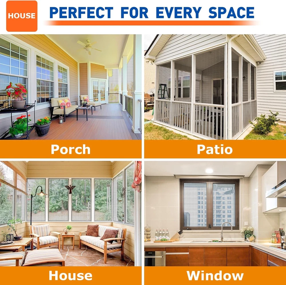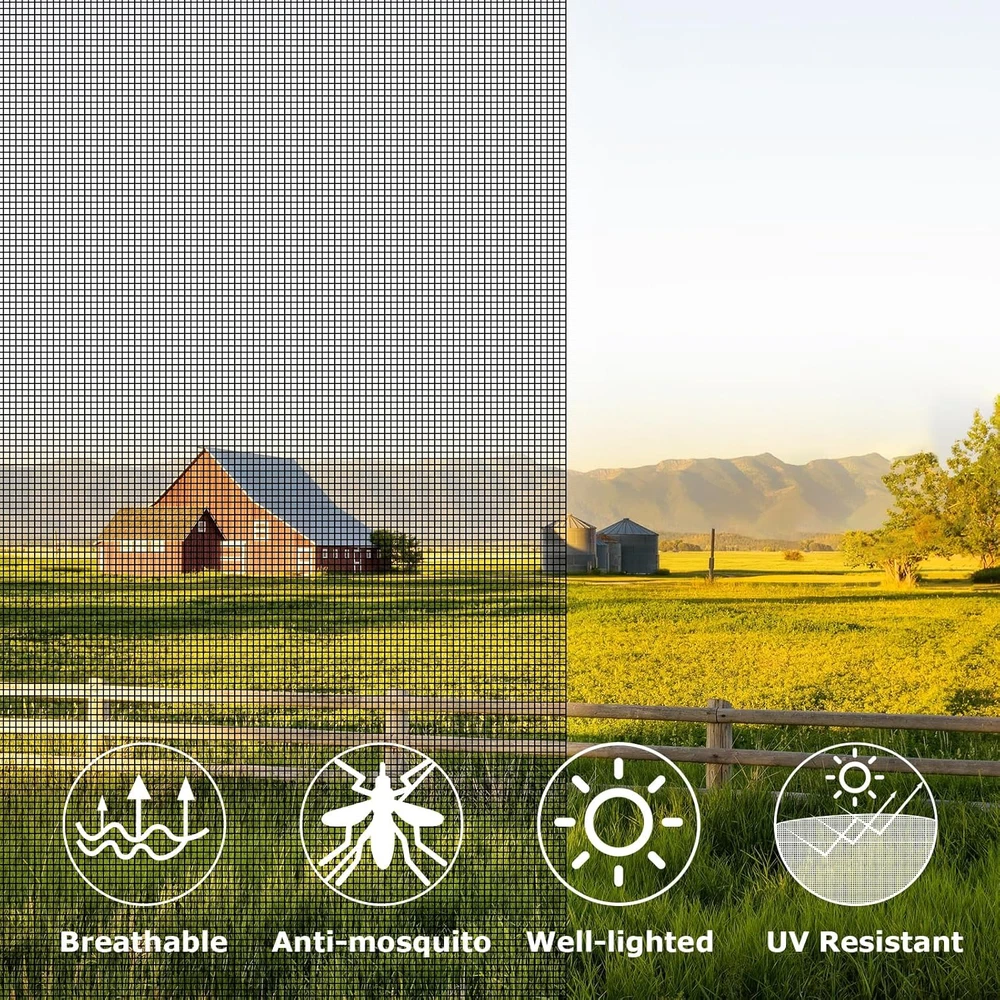 Upgraded Material: Crafted with heavy duty fiberglass mesh, The upgraded screen mesh is specially designed for house. Our screen fiberglass mesh stronger and more durable than regular polyester, can effectively resist scratches and tear resistance Product Benefit: Enjoy enhanced protection with our screen door mesh and window screen mesh, designed to keep bugs out while allowing fresh air in, ideal for house windows, patio screens, and sliding screen door replacements Long-lasting Durability: This screen door mesh replacement ensures years of use. The patio screen mesh and window screen replacement are UV-resistant, washable, and maintain functionality without sagging or tearing over time Effortless Installation and Replacement: Our window screen mesh great for all DIY projects for your house, patio, yard, porch screen,or door screens, window screens, pet screens. Measuring 48 x 100 inch, you can easily cut it to the desired shape and size. Replacing our window screens enhances health and wellness by improving airflow, ensuring a fresher and cleaner indoor environment Superior Choice: Opt for our replacement window screens, offering higher quality than typical supermarket alternatives. Though folded for packaging, any creases will naturally smooth out after installation. If you have any questions, please contact us, we promise to solve it for you until you are satisfied Product Description
