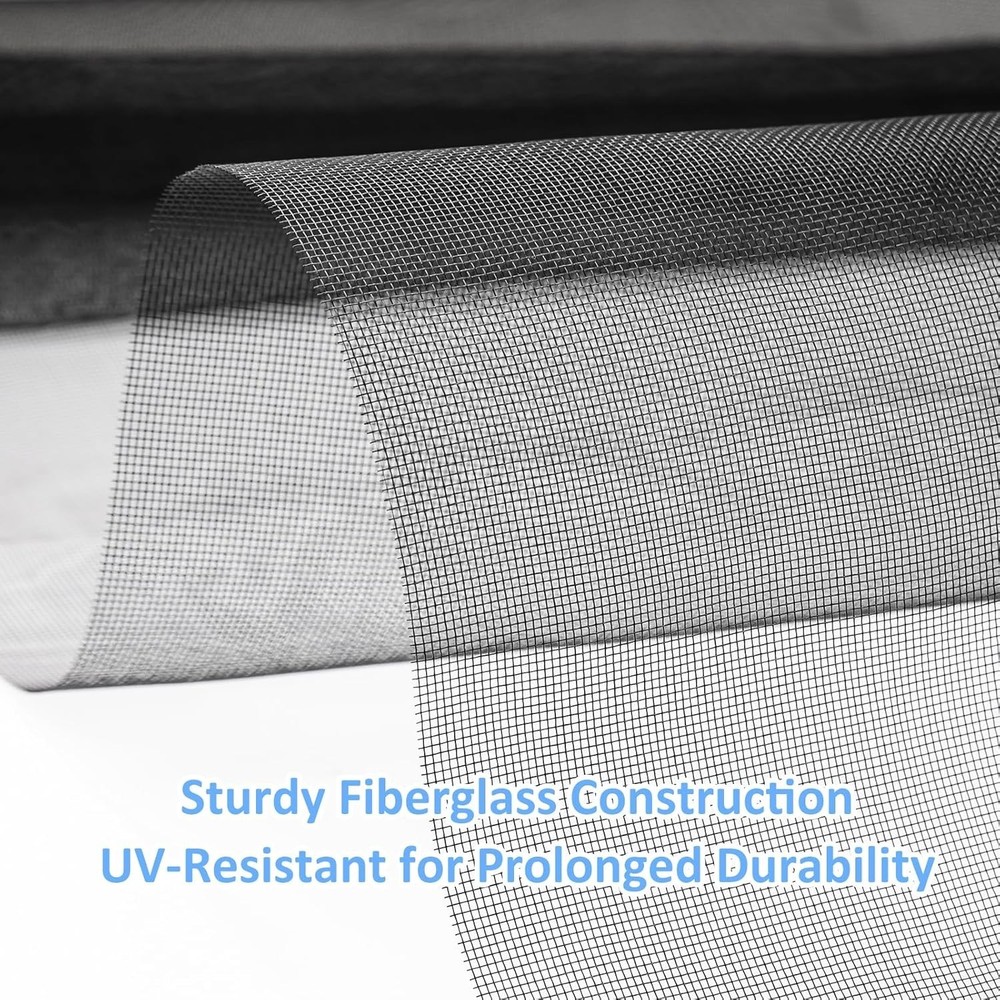 48"x102" Window Screen Mesh, Fiberglass Window Screen, Screen Door Mesh, Windows Screens and Screen Door Replacement, Patio Screen Mesh- Black Premium Quality Material: Our window screen is constructed from durable fiberglass mesh, boasting a radial strength of over 320N/Inch and weighing above 110g/m2. Enjoy clear views from inside your home while allowing smooth airflow and 75% UV protection. 🏡 Long-lasting Durability: Experience years of reliable performance with our fiberglass window screen. Designed to withstand washing and sun exposure, this screen mesh offers a service life of at least five years, ensuring lasting protection and ventilation for your home. 🔧 Easy Installation and Replacement: Upgrade your existing screens effortlessly with our window screen mesh. Perfect for various types of screen doors, windows, sliding doors, and courtyards, it's a versatile solution for enhancing airflow and preventing pests. Easily remove old screens and replace them with our high-quality mesh for optimal performance. 🔄 Superior Choice: Choose our window screen mesh for superior quality compared to standard options found in supermarkets. While the mesh may arrive folded in the package, any creases will naturally disappear over time after complete installation. 🌞 Enjoy Fresh Air: Enhance the comfort of your home with our durable window screen. Experience clear views, smooth airflow, and UV protection while keeping pests out. It's the perfect choice for maintaining a comfortable and inviting indoor environment.