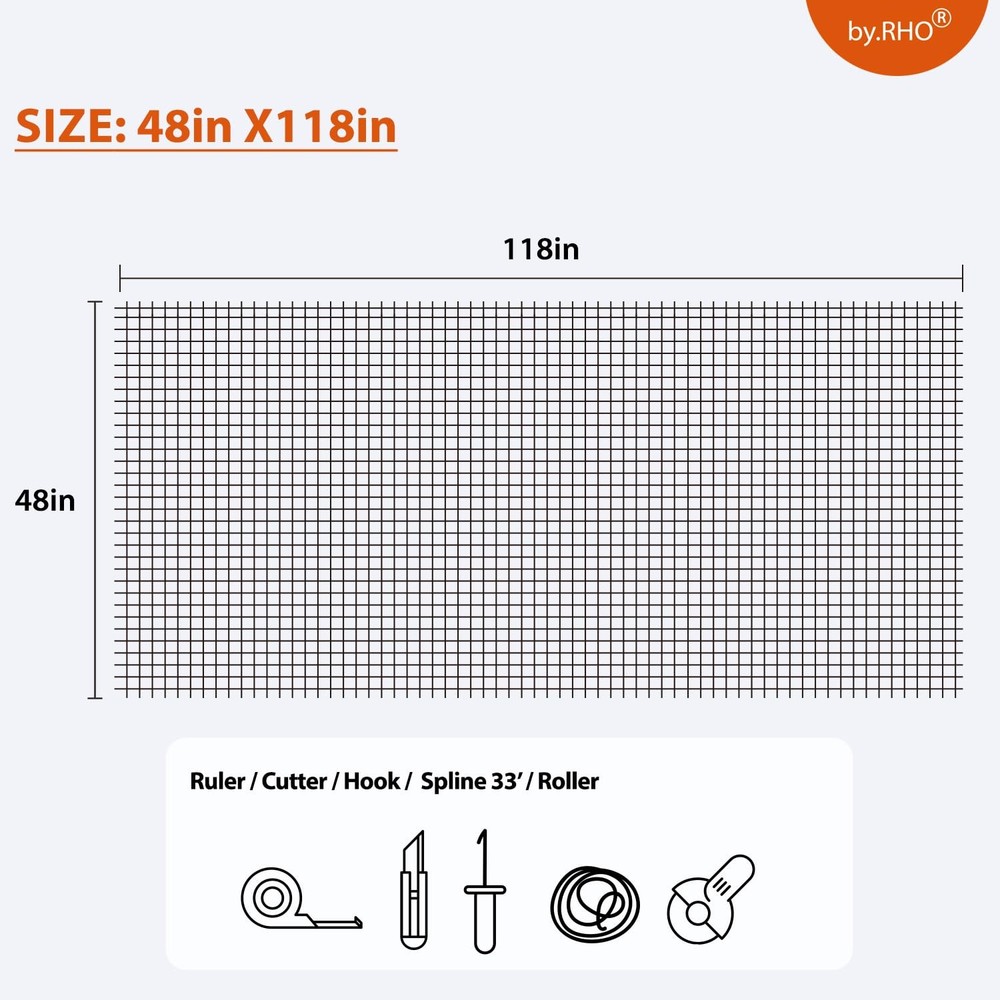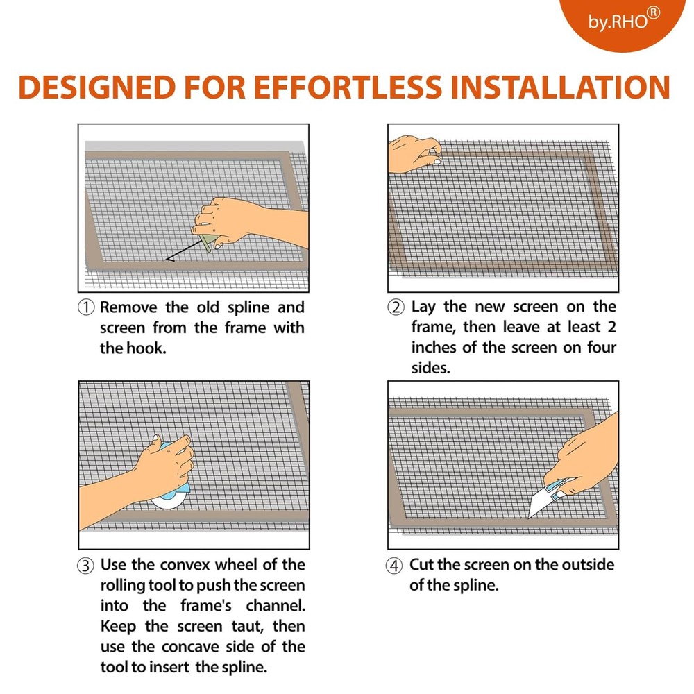 WINDOW SCREEN REPAIR KIT Are you tired of looking through damaged, worn-out screens? Our complete kit is the perfect solution for reviving your windows, screen doors, and sliding doors, giving your home a fresh, new look. [ALL-IN-ONE REPAIR SOLUTION] – Tired of dull, worn-out screens ruining the look of your home? Window Screen Repair Kit includes everything you need for a hassle-free screen makeover – a 48"x118" charcoal fiberglass mesh screen, rolling tool, screen retainer spline, knife, spline remover hook, and a tape measure. [UPGRADE ANY SPACE] – Our screen door repair kit is perfect for revamping screen doors, windows, sliding doors, and courtyards. Say goodbye to dull, outdated screens and enjoy a fresh, new look with our fiberglass screen replacement mesh that enhances the appearance of your windows and doors. [CRYSTAL CLEAR VIEW, FRESH AIR] – Experience the difference with our high-quality window screen mesh that provides a crystal-clear view and allows for smooth airflow, while keeping pesky insects out. Enjoy uninterrupted views of the outdoors and a comfortable living environment, all year round. [BUILT TO LAST] – Made of anti-wrinkle fiberglass mesh material, our screen mesh is super-durable, resistant to wrinkling, not easy to scratch, and flame retardant. Easily washable and effortless to maintain, the patio mesh screen is designed to last you for many years to come. [FOOLPROOF INSTALLATION] – With our easy-to-follow instructions and all-inclusive window screen and door repair DIY screen repair kit, you can replace your screen in just four simple steps – no need to hire expensive professionals or buy extra tools! Our 48"x118" screen mesh kit is a must have for every home owner.