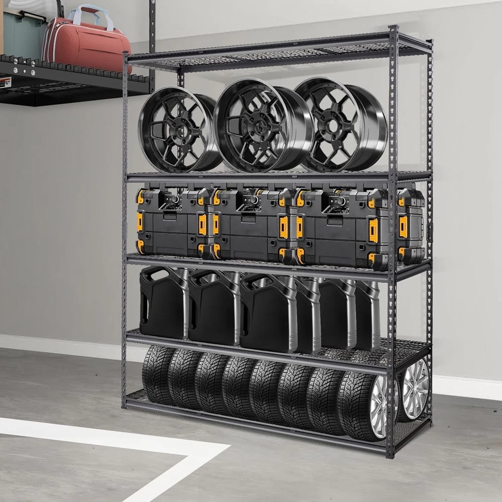 Description: 1. Material: Black Finished Durable Steel Construction, Say goodbye to rust and oxidation—this utility shelf features a premium powder coating that resists scratches and ensures long-lasting performance. Designed for both functionality and style, this shelving unit is perfect for any season, providing reliable storage for tools, supplies. 2. Design: You can adjust the height of the storage shelves according to the size of the item.The spacing of each layer of this wire shelf can be adjusted.shelves adjustable leveling feet allow the wire shelving unit to be placed on uneven ground--a simple twist is all it takes to stabilize.wire shelving unit wire shelf storage shelves . 3. Function: This storage shelves provide an enormous amount of space and strong shelves.The wire shelving unit doesn't occupy too much space,but it can create more additional space.Maximum weight capacity per shelf is 400lbs 4. Tip: The wire shelving unit is simple to assemble, You only need to spend 15min to install it’s storage shelves wire shelf wire shelving unit. 5. Occasion: These robust garage shelving racks offer ample space to neatly store tools, equipment, and supplies, promoting a clutter-free environment. These shelves are perfect for garages, workshops, kitchens, and more. With their sturdy construction and generous dimensions, these shelving units helping you stay organized and making access to your items easier than ever. Package Include: 1x Storage Shelves