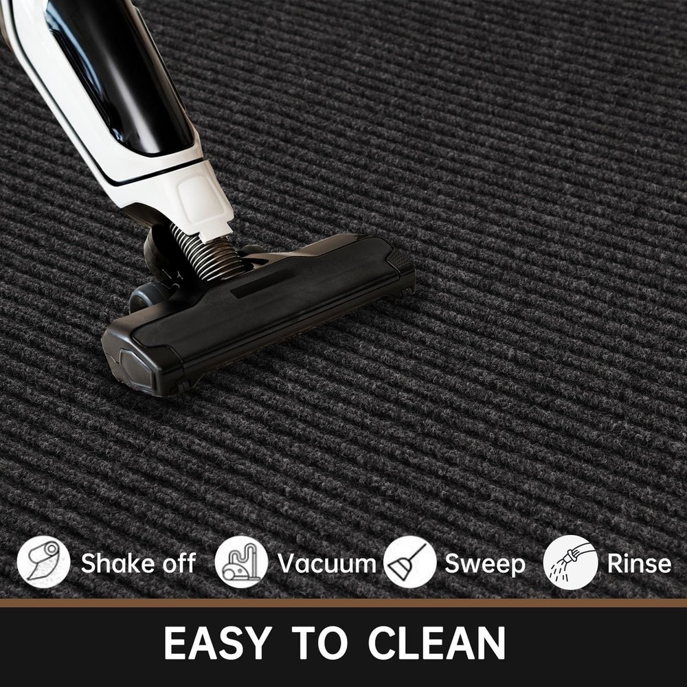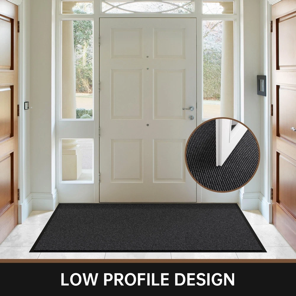 HEAVEY DUTY INDOOR AND OUTDOOR DOORMAT Entrance floor mats provides a larger protected area for a cleaner and more organized entrance. Why you need the outside door mats for front door ? Absorbs dust: Large door mat Effectively keeps the environment clean no matter what the weather. Non-slip rubber backing: the heavy duty outdoor mat has rubber backing, provides stability and holds the doormat securely in the doorway. Low pile door mat design: 0.26 inches exterior door mat height, suitable for most home or commercial door designs. Heavy duty outdoor mat - multiple uses: Suitable for high-traffic places, can be used as utility mat, industrial floor door mats, commercial door mats to use. Outdoor door mats for outside entry keep your entrance neat and tidy, entrance mats come in a variety of sizes, 48" x 24", 72" x 24", 48" x 36", 60" x 36", 72" x 36", 72" x 48", 96" x 48", you can choose according to your needs! UNIVERSAL DOOR MATS FOR INDOORS AND OUTDOORS: no matter what the weather, our door mat will keep indoor and outdoor areas clean and dry. Ideal for indoor and outdoor environments, providing a clean area of rug protection. NON-SLIP RUBBER BACKING: Heavy-duty rubber backing holds the outdoor mat firmly in place, wider edges reduce daily wear and tear on the doormat, and fade-resistant material makes the large front door mat more durable. EFFECTIVELY CAPTURE DIRT: The top of the outdoor doormat is made of premium polyester with a grooved design that provides cushioning and anti-slip effect while trapping dirt and debris, which effectively traps moisture. Keep your home's entrance clean. EASY TO CLEAN: Simply clean the outdoor floor mat with a broom or vacuum cleaner, or patting the rubber backing and shaking the outdoor doormat can also remove most of the dirt. After prolonged use, rinse the doormat with a garden hose and air dry well. LOW-PROFILE DESIGN: The overall thickness of the outdoor rubber mats is 0.26 inches, allowing doors to open easily over the welcome mat. The tight fibers at the top work well to keep dust and dirt out of your home.